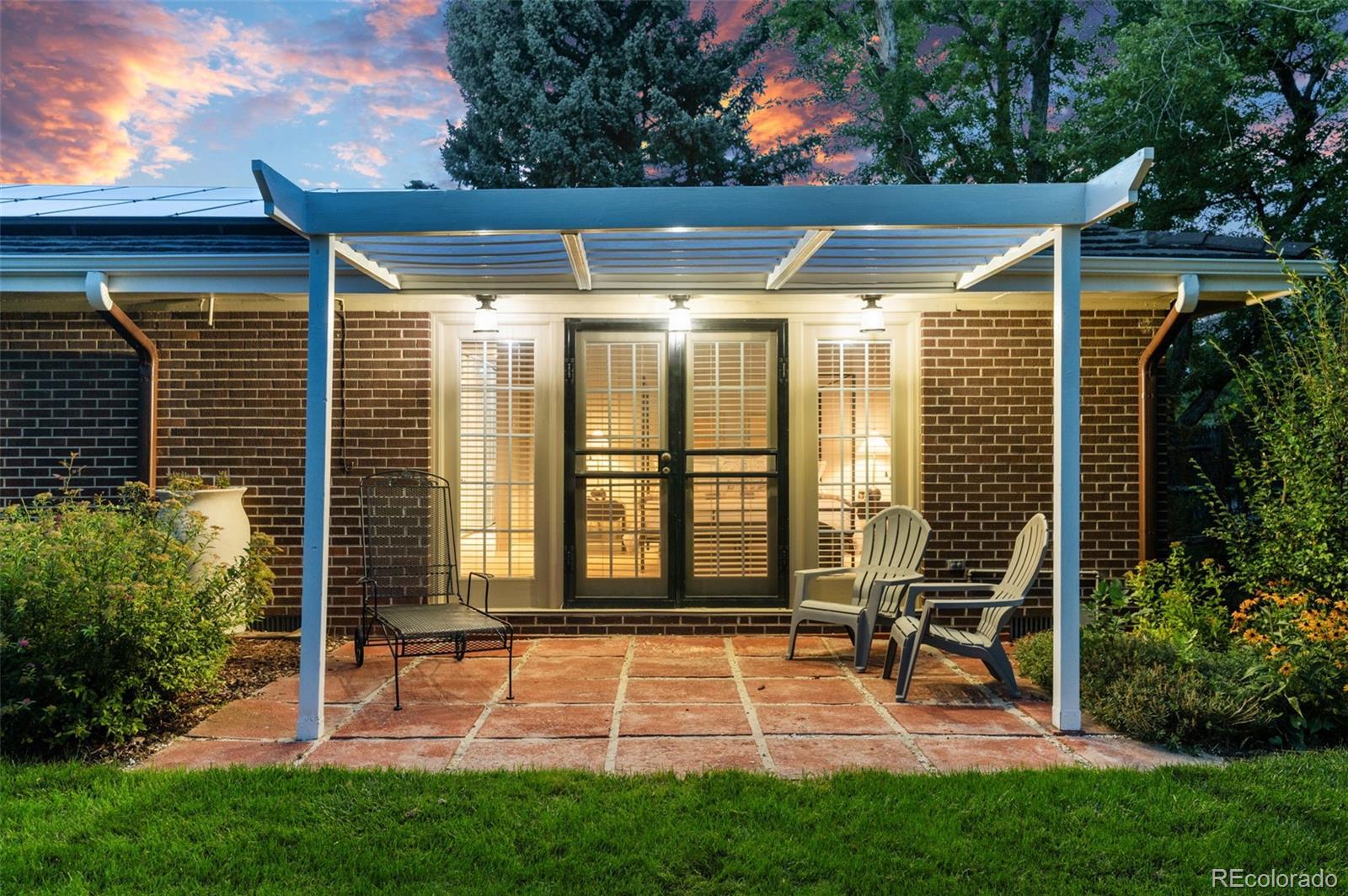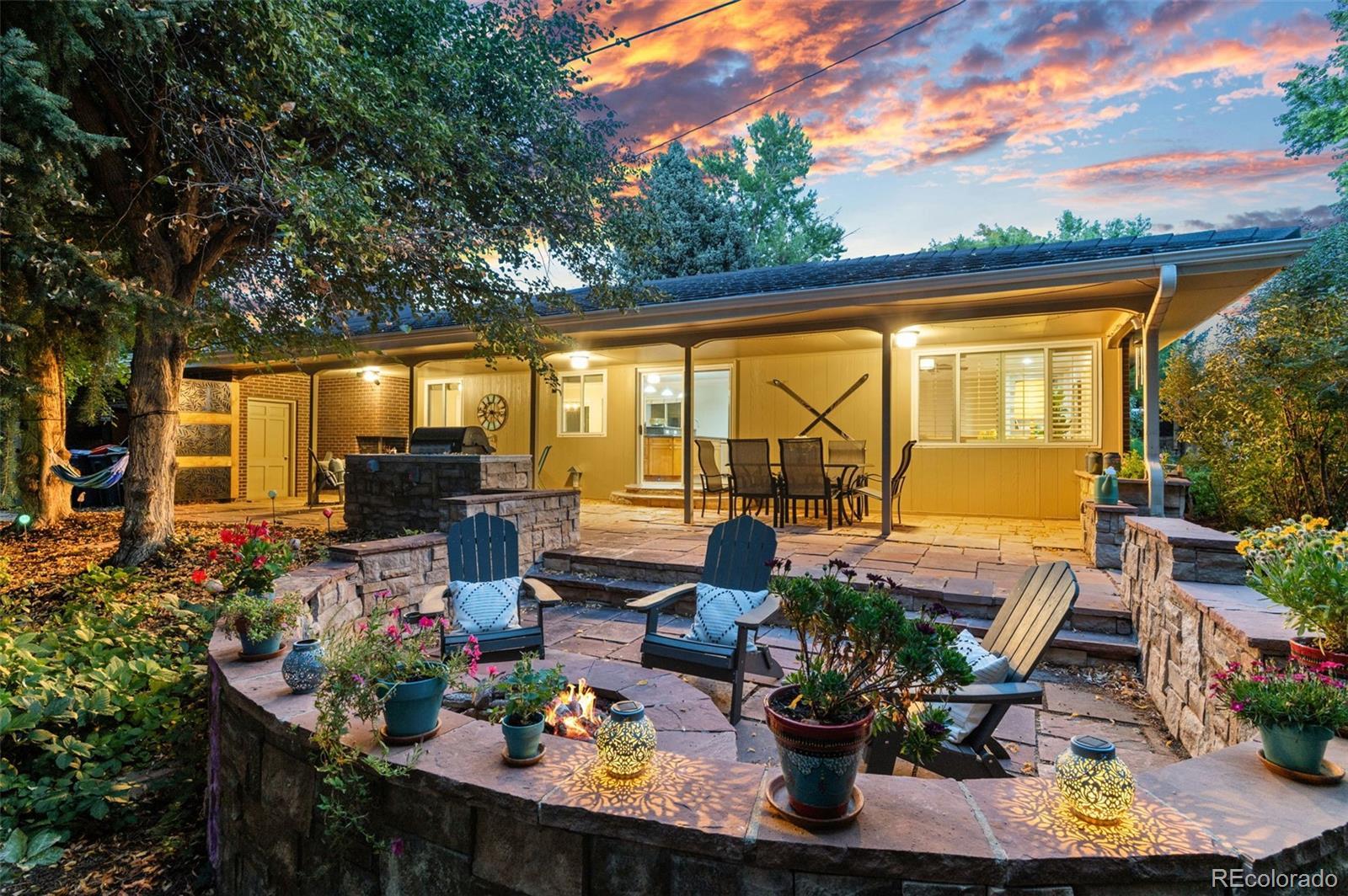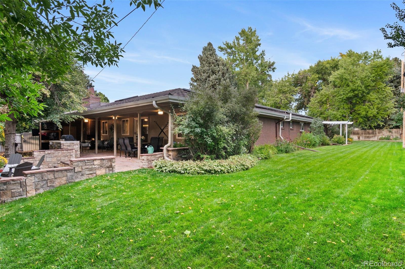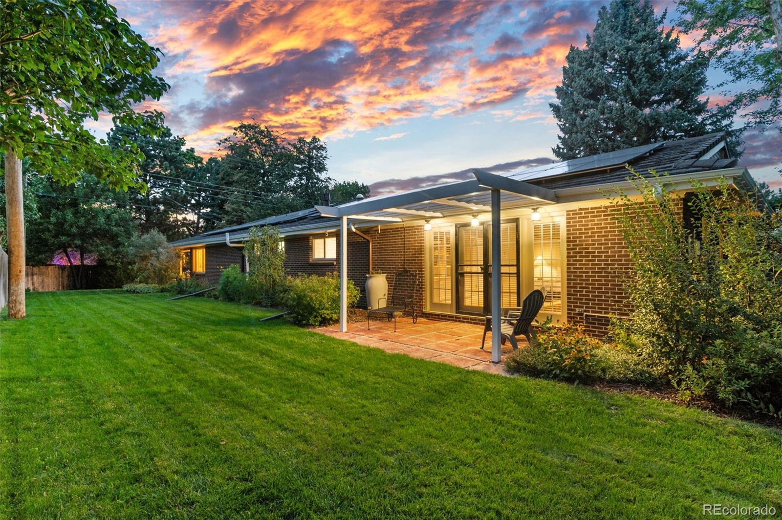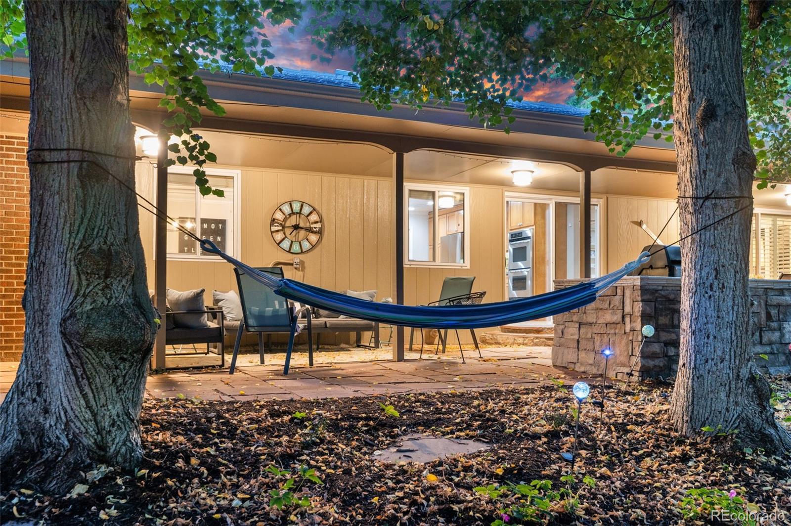 Welcome to this rare find in Cherry Creek Village North! This ranch-style home offers over 2,500 finished square feet above grade, with 4 bedrooms on the main level, gorgeous hardwood floors, and an amazing/ideal layout. The kitchen, family room, and covered patio connect seamlessly, creating the perfect gathering space for friends and family. The kitchen shines with maple cabinets, granite counters, stainless steel appliances, gas cooktop, warming drawer, a large island with bar seating, and a built-in pantry with pull-out shelving. The inviting family room features custom built-ins and flows to the backyard patio with a built-in gas fire pit and natural gas grill, ideal for summer nights with friends or family. The primary suite is a retreat of its own with a cozy fireplace, private patio access, custom cabinetry, and a bathroom and closet suite that feel like another wing of the home. The finished basement adds nearly 1,000 square feet of versatile space and a large 3/4 bathroom. Great for more living room/bonus area or a 5th bedroom. Major updates include a newer 100 year steel-coated stone roof and fully owned solar panels for maximum efficiency and monthly savings! The location is unmatched: walk to Belleview Elementary, Campus Middle, and Cherry Creek High School, as well as restaurants, King Soopers, and Village Greens Park with its playground, climbing wall, frisbee golf course, and mountain biking trails. Right next door is Cherry Creek State Park, where you can hike, boat, swim, or simply enjoy the beach. Commuting is easy with quick access to I-225, I-25, and the Denver Tech Center. Living in Greenwood Village means access to outstanding city services, a renowned Parks & Rec department, community events, and Greenwood Village Day each July, where you can watch fireworks from your own driveway. The neighborhood $125/year HOA keeps things fun and flexible with frequent social gatherings. Come see this home today!