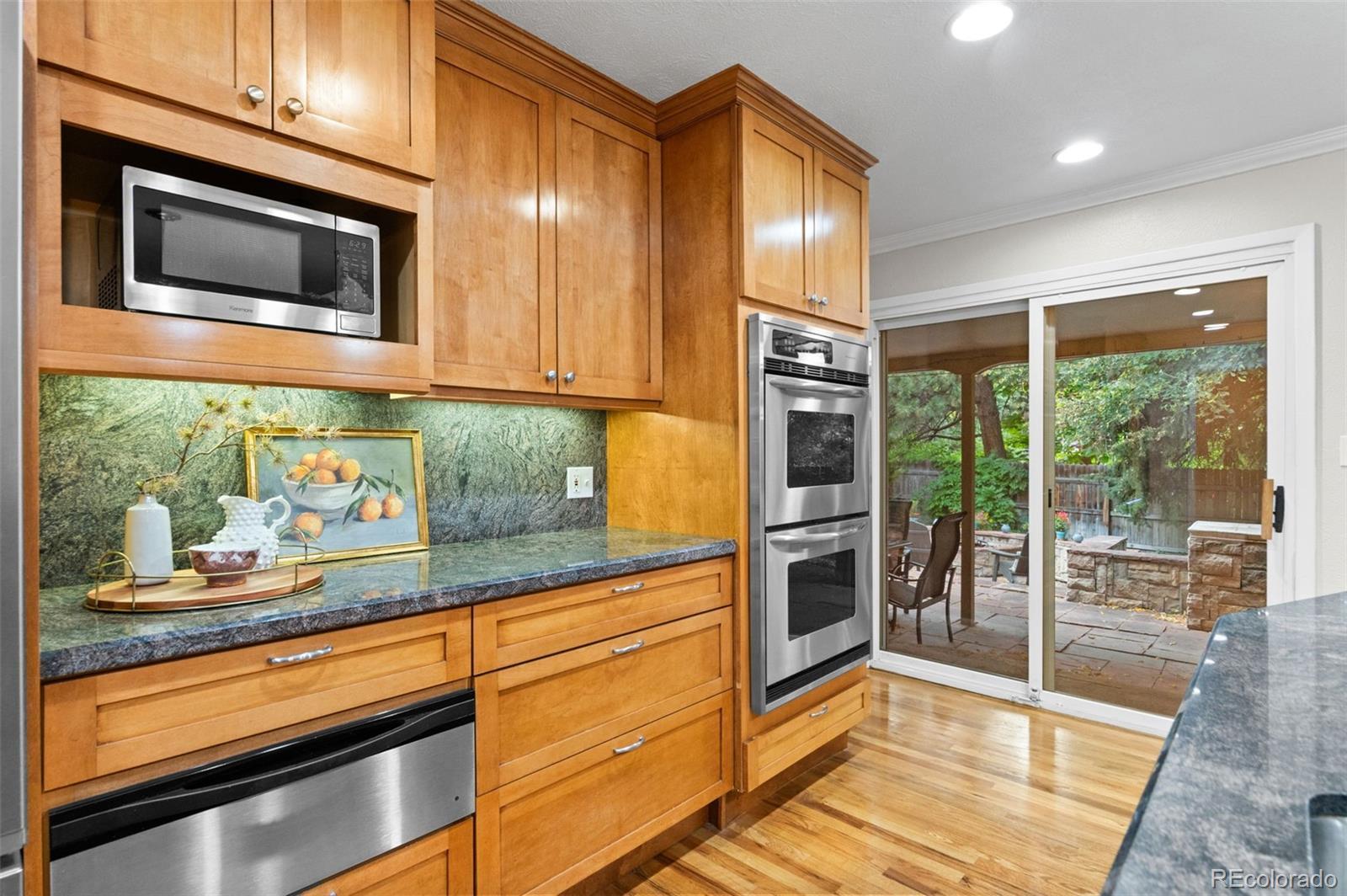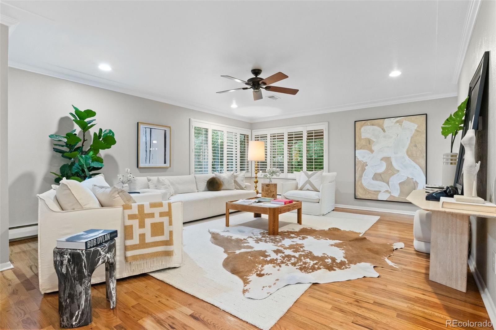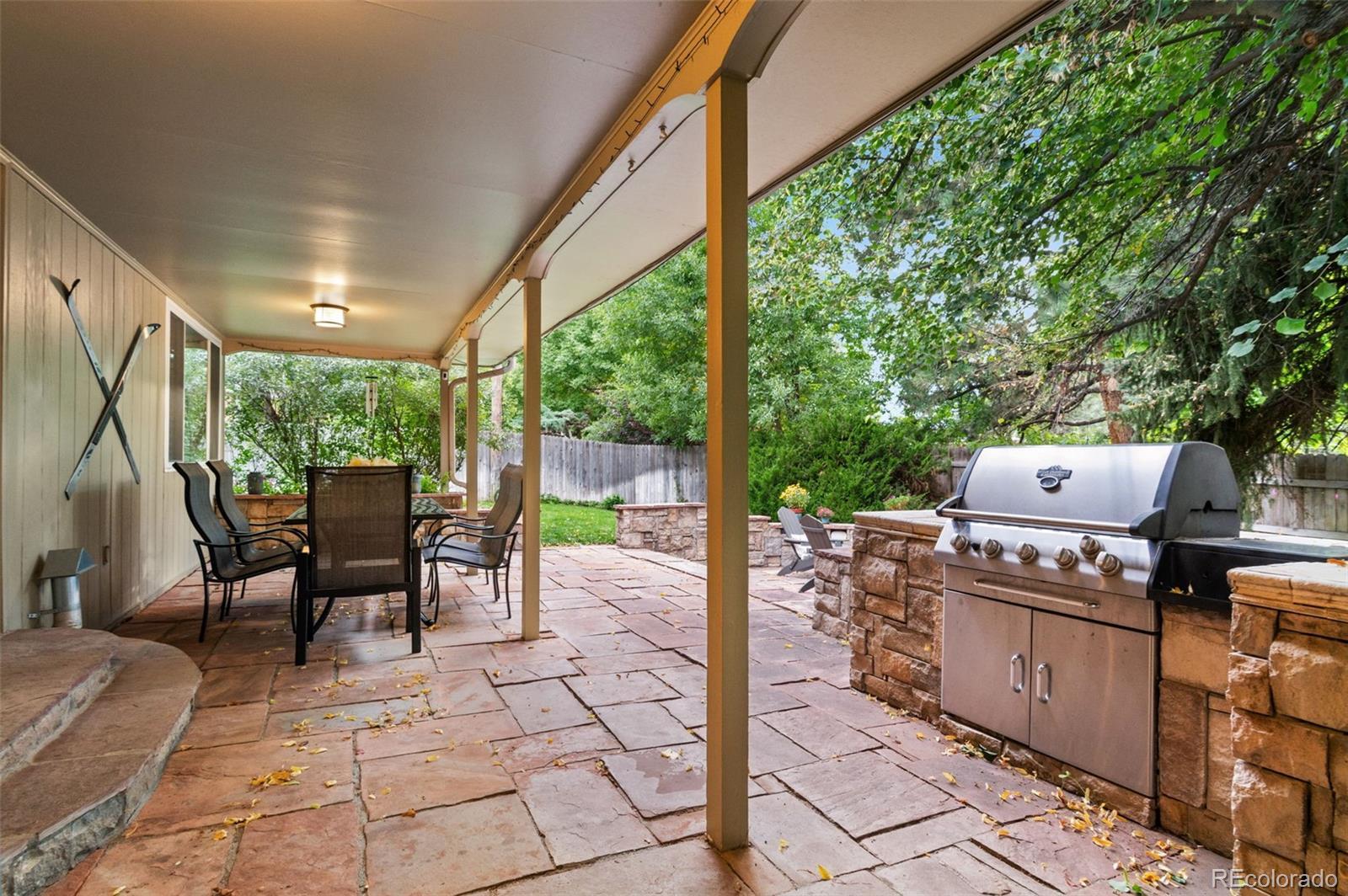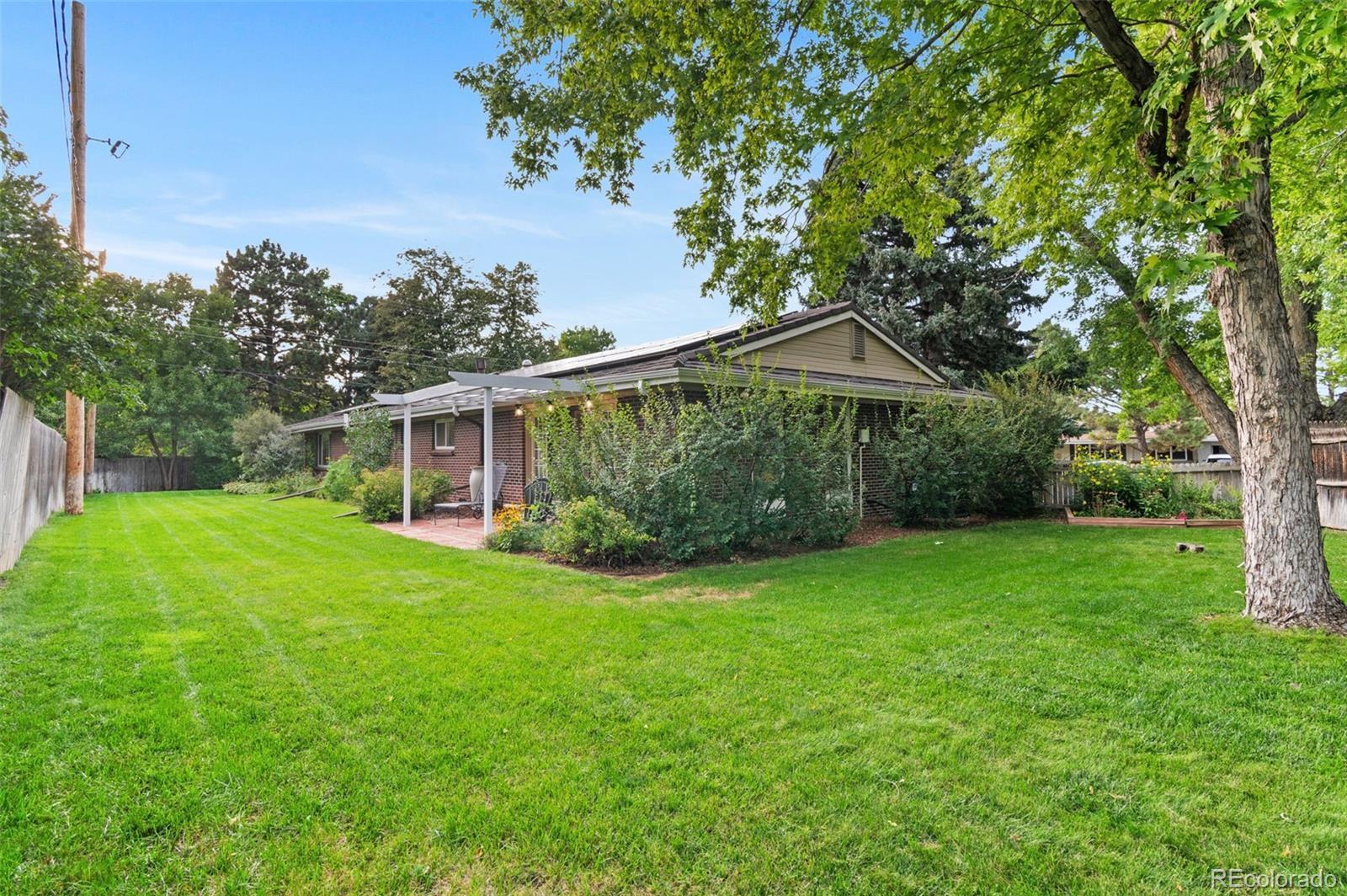Welcome to this rare find in Cherry Creek Village North! This ranch-style home offers over 2,500 finished square feet above grade, with 4 bedrooms on the main level, gorgeous hardwood floors, and an amazing/ideal layout. The kitchen, family room, and covered patio connect seamlessly, creating the perfect gathering space for friends and family. The kitchen shines with maple cabinets, granite counters, stainless steel appliances, gas cooktop, warming drawer, a large island with bar seating, and a built-in pantry with pull-out shelving. The inviting family room features custom built-ins and flows to the backyard patio with a built-in gas fire pit and natural gas grill, ideal for summer nights with friends or family. The primary suite is a retreat of its own with a cozy fireplace, private patio access, custom cabinetry, and a bathroom and closet suite that feel like another wing of the home. The finished basement adds nearly 1,000 square feet of versatile space and a large 3/4 bathroom. Great for more living room/bonus area or a 5th bedroom. Major updates include a newer 100 year steel-coated stone roof and fully owned solar panels for maximum efficiency and monthly savings! The location is unmatched: walk to Belleview Elementary, Campus Middle, and Cherry Creek High School, as well as restaurants, King Soopers, and Village Greens Park with its playground, climbing wall, frisbee golf course, and mountain biking trails. Right next door is Cherry Creek State Park, where you can hike, boat, swim, or simply enjoy the beach. Commuting is easy with quick access to I-225, I-25, and the Denver Tech Center. Living in Greenwood Village means access to outstanding city services, a renowned Parks & Rec department, community events, and Greenwood Village Day each July, where you can watch fireworks from your own driveway. The neighborhood $125/year HOA keeps things fun and flexible with frequent social gatherings. Come see this home today!