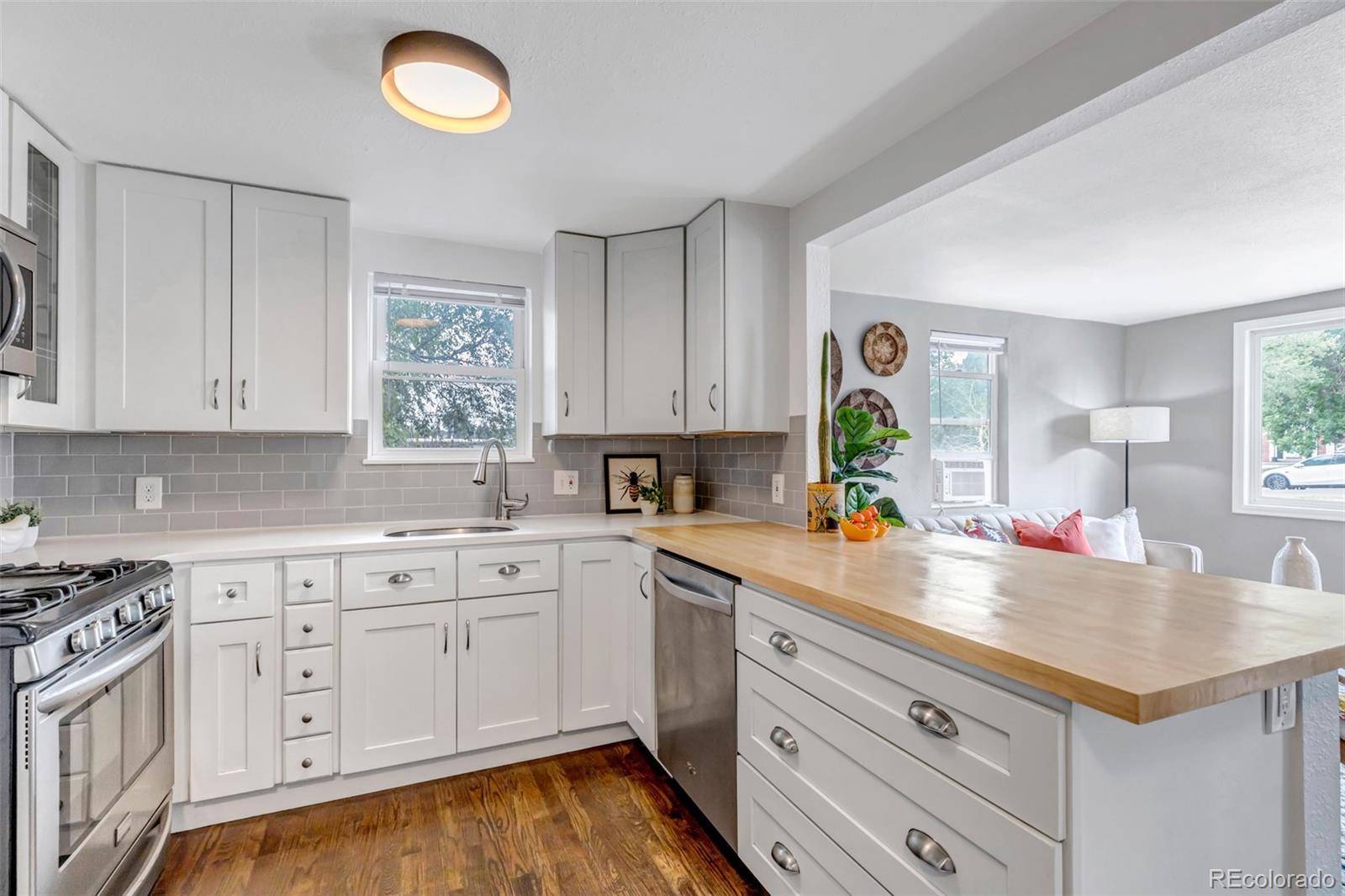 SELLER OFFERING 2K IN CONCESSIONS! This house is an absolute SMOKESHOW!!!! This stunning 2 bed and 1 1/2 bath has been meticulously maintained by a former home inspector! This property is completely move in ready! Enjoy making breakfast in your updated kitchen with newer appliances while your loved ones relax at the new butcher block bar top. The living room boasts of natural light and is perfect for entertaining! Speaking of entertaining, let's talk about the HUGE backyard with the firepit and outdoor couch included! There is ample space for parties, kiddos, bbqs, whatever you're into, this backyard is ready for you to enjoy! The detached garage holds up to two cars and or can be used for a shop, gym recreational space, or for more storage! This well cared for home is close to Belmar Shopping Center as well as public transportation. Don't sleep on this house! We'd rather you sleep in it, when you buy it! So schedule a showing today!!! Updates include, a new butcher block bar top June 2025, a brand new water heater April 2025, brand new light fixtures throughout the property June 2025, Primary bathroom remodel June 2025, backyard deck updated 2020 and recently stained, new roof 2018, new front door June 2025, concrete front porch in 2024, and recently updated vapor barrier in the crawlspace. Property features include: pull out pantry shelves, front sprinklers, front and back outdoor outlets. Don't miss out on this incredibly well maintained home!!!!