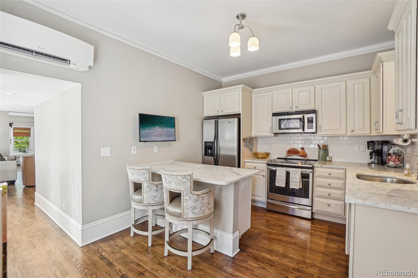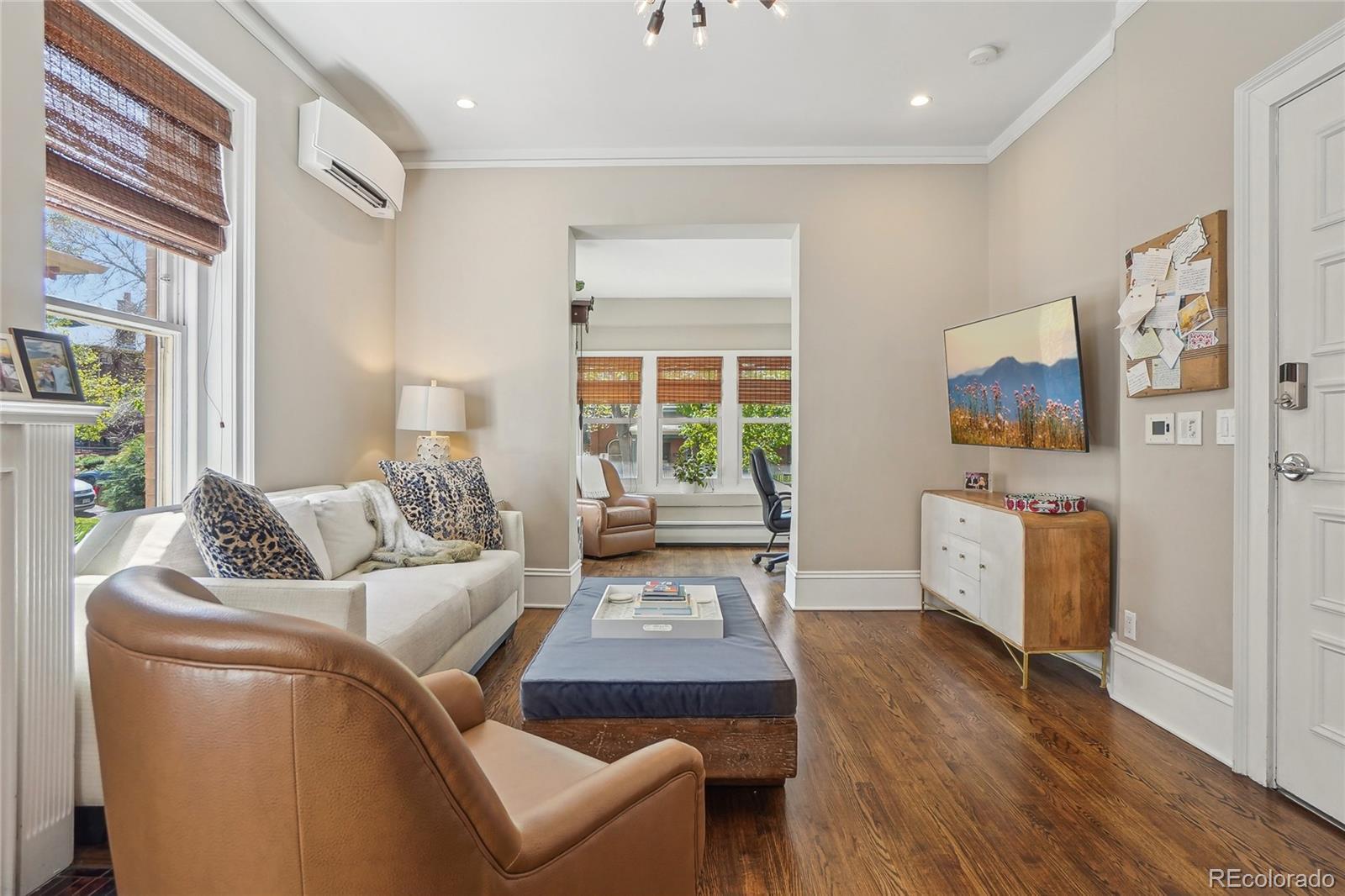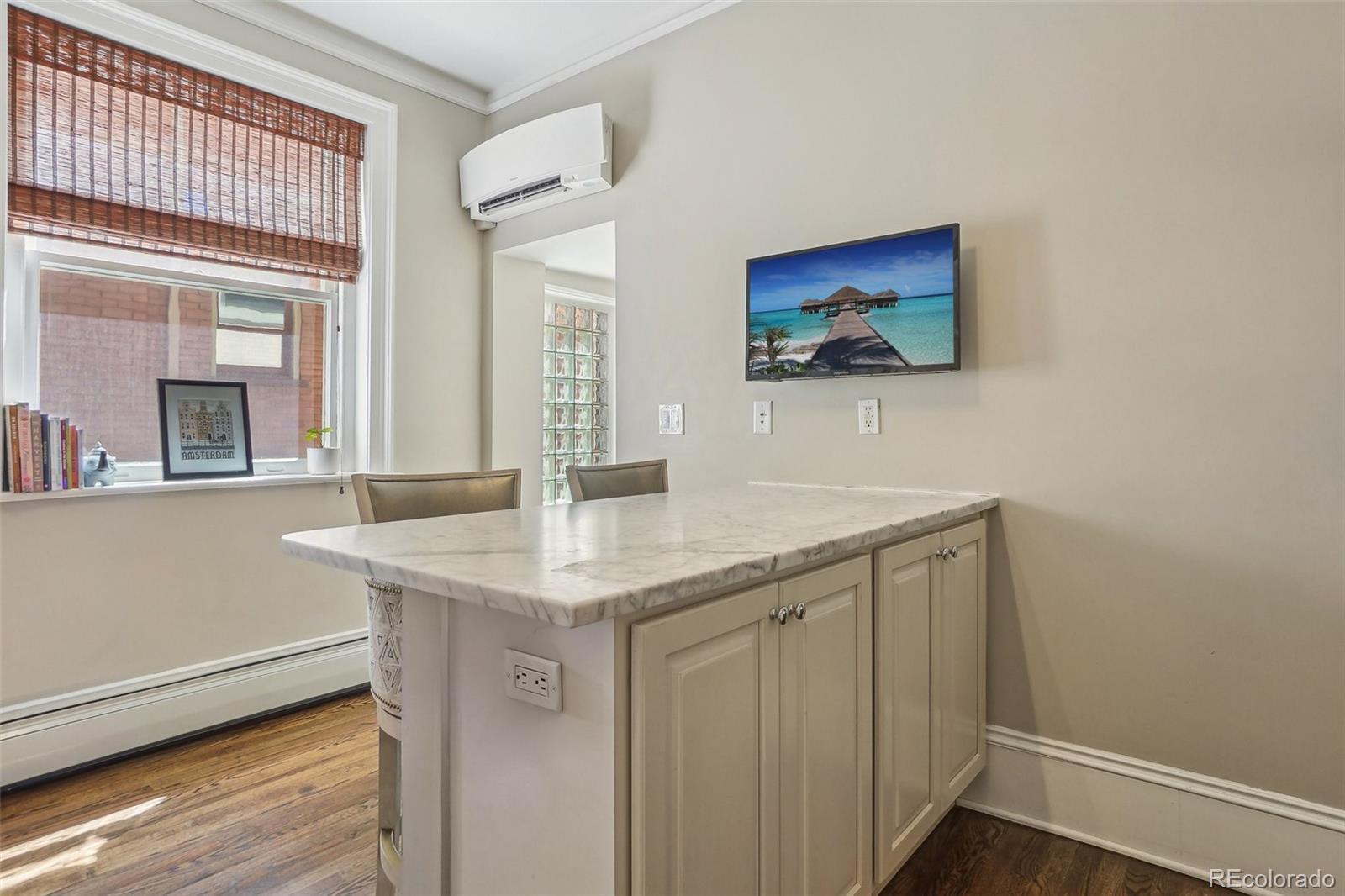 OPEN HOUSE SAT 9/27 FROM 10-1! Urban charm meets thoughtful design in this updated condo nestled just two blocks from Cheesman Park and a block from the Denver Botanic Gardens. Located on a picturesque, tree-lined street known for its community feel and lush gardens, this bright and airy unit blends historic character with modern comfort. Inside, you’ll find tall ceilings, hardwood floors, and an eye-catching tiled fireplace. A sun-drenched bonus room framed by vintage glass block offers a perfect flex space for a home office, plant haven, or cozy reading nook. The updated kitchen features marble countertops, stainless steel appliances, an undermount sink, and a custom tile ledge — all designed for both style and function. Year-round comfort is ensured by a 2022 dual-zone mini-split A/C and heating system, supplemented by baseboard heat. Additional highlights include in-unit laundry, smart lock entry, private secured storage, and built-in security features. This five-unit, pet-friendly building is a rare find — HOA dues under $300/month cover water, lawn care, snow removal, insurance, ongoing maintenance, and more. Shared outdoor amenities include a low-maintenance backyard with fire pit, BBQ grill, and raised-bed gardens — ideal for relaxing or entertaining. Ideally situated for both convenience and lifestyle, this location offers walkable access to neighborhood favorites like Blue Pan Pizza, Copper Door Coffee, Liks Ice Cream, Congress Park, City Park, and the Tattered Cover Bookstore. And when you're ready to venture further, both Downtown Denver and Cherry Creek — the city’s premier retail and business hubs — are just a quick five-minute drive away. Residential Botanic Gardens parking permit + guest pass included. If you're seeking walkability, character, and low-maintenance living in one of Denver’s most vibrant neighborhoods — this is it.
