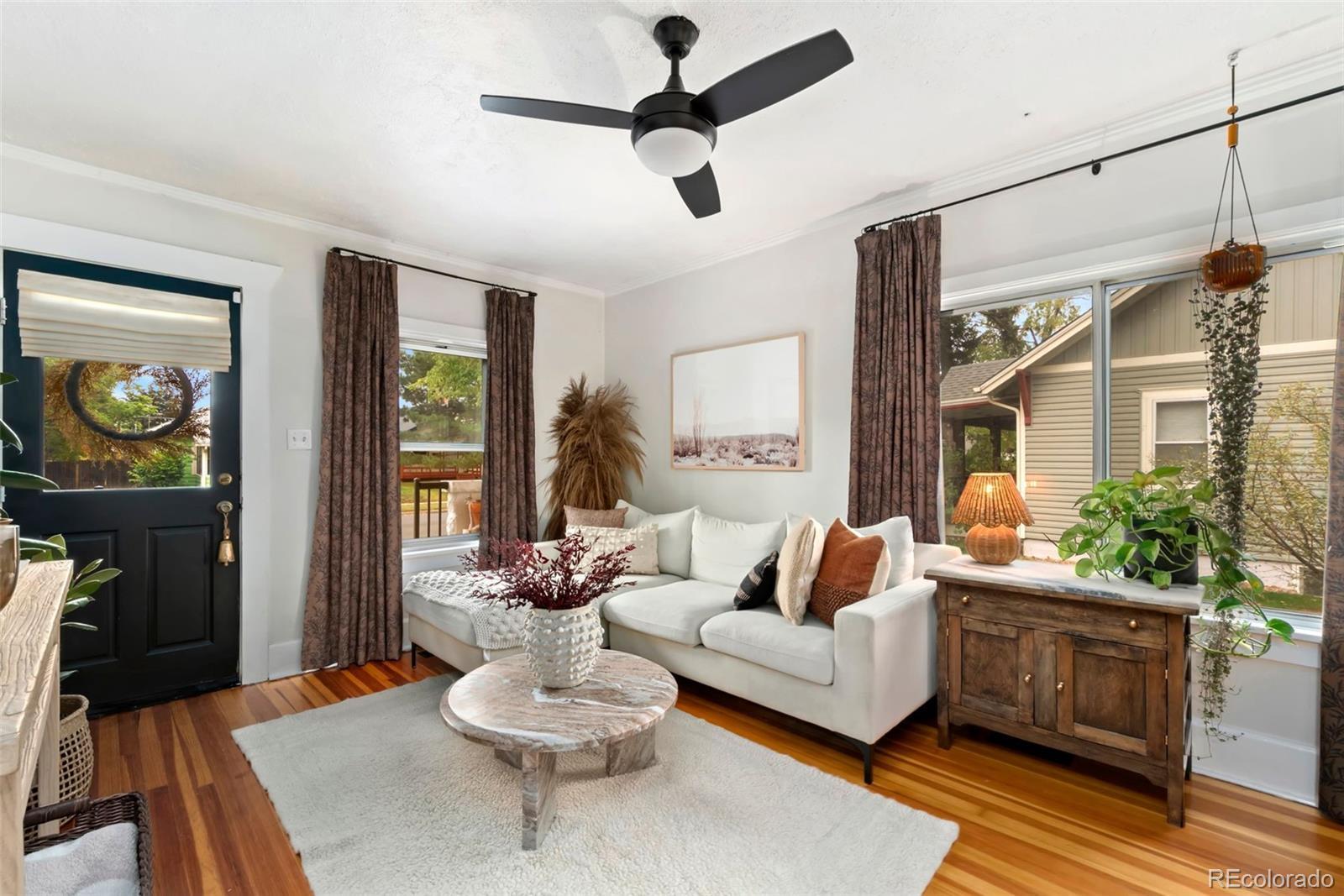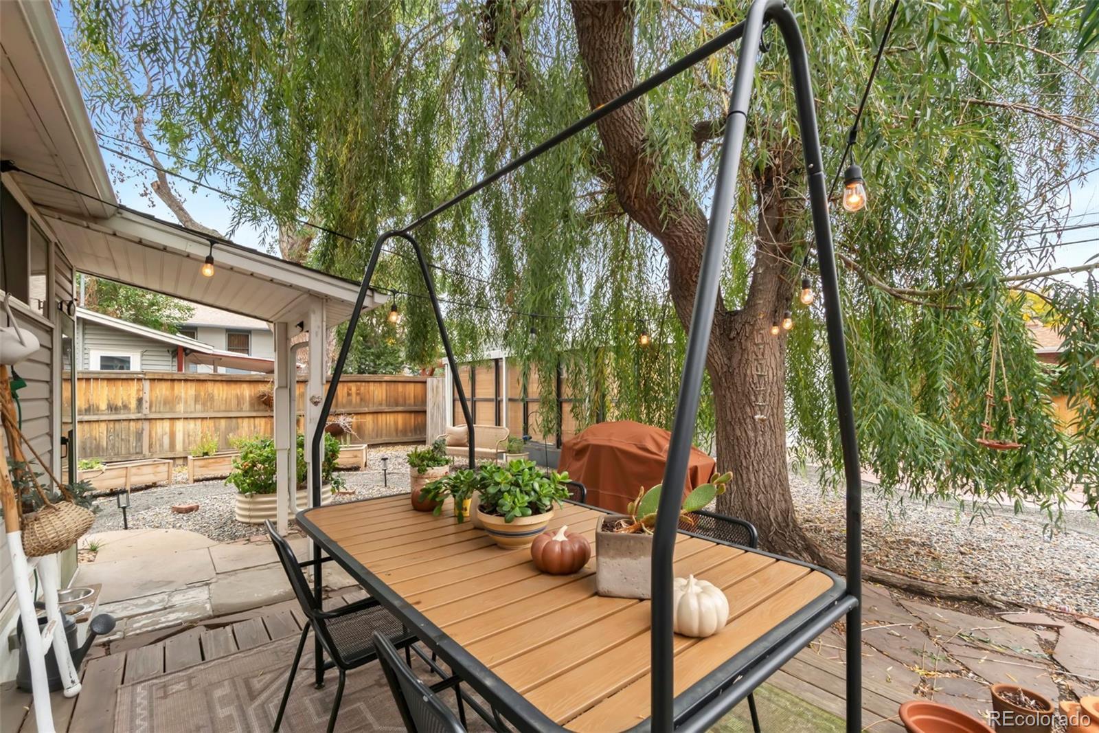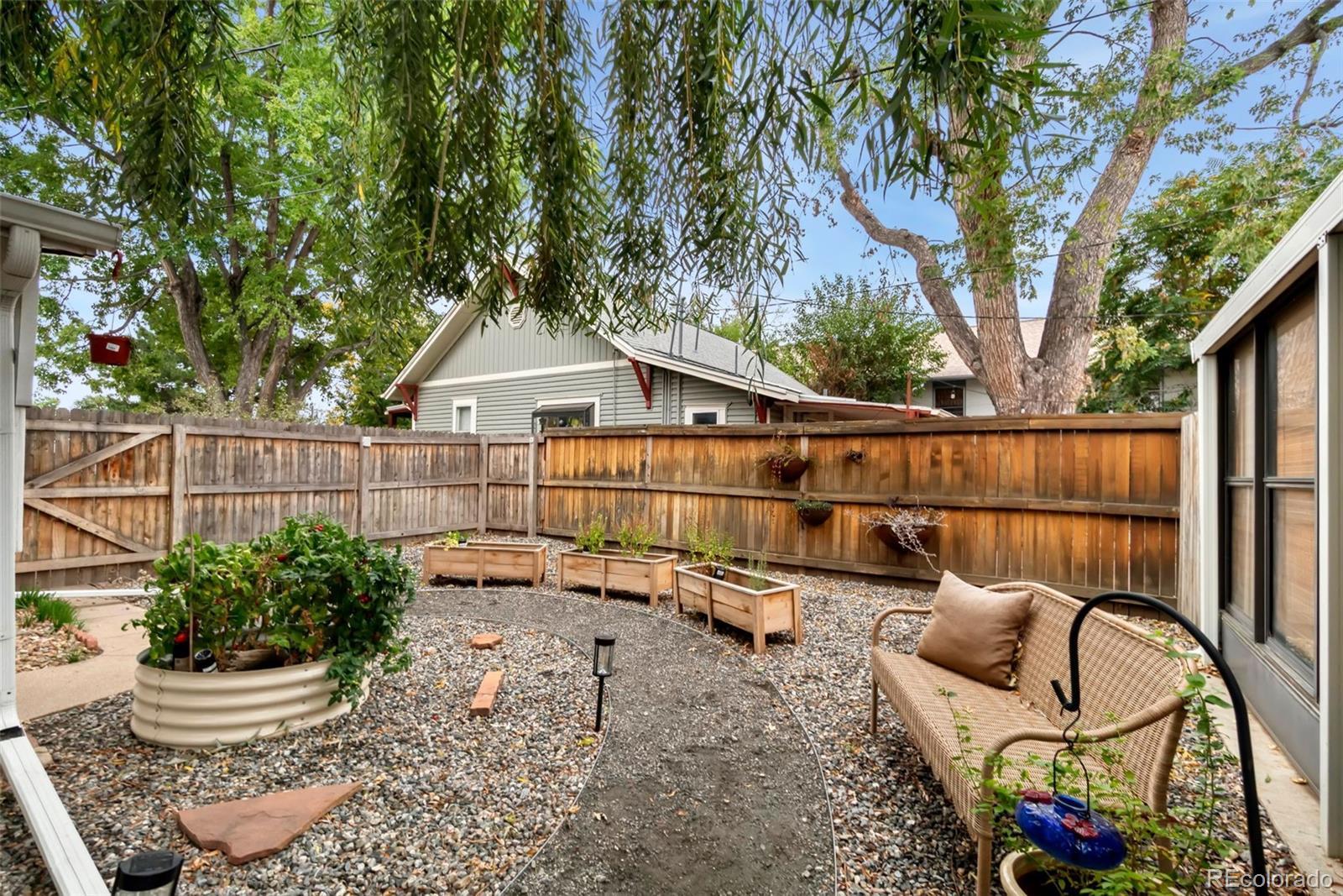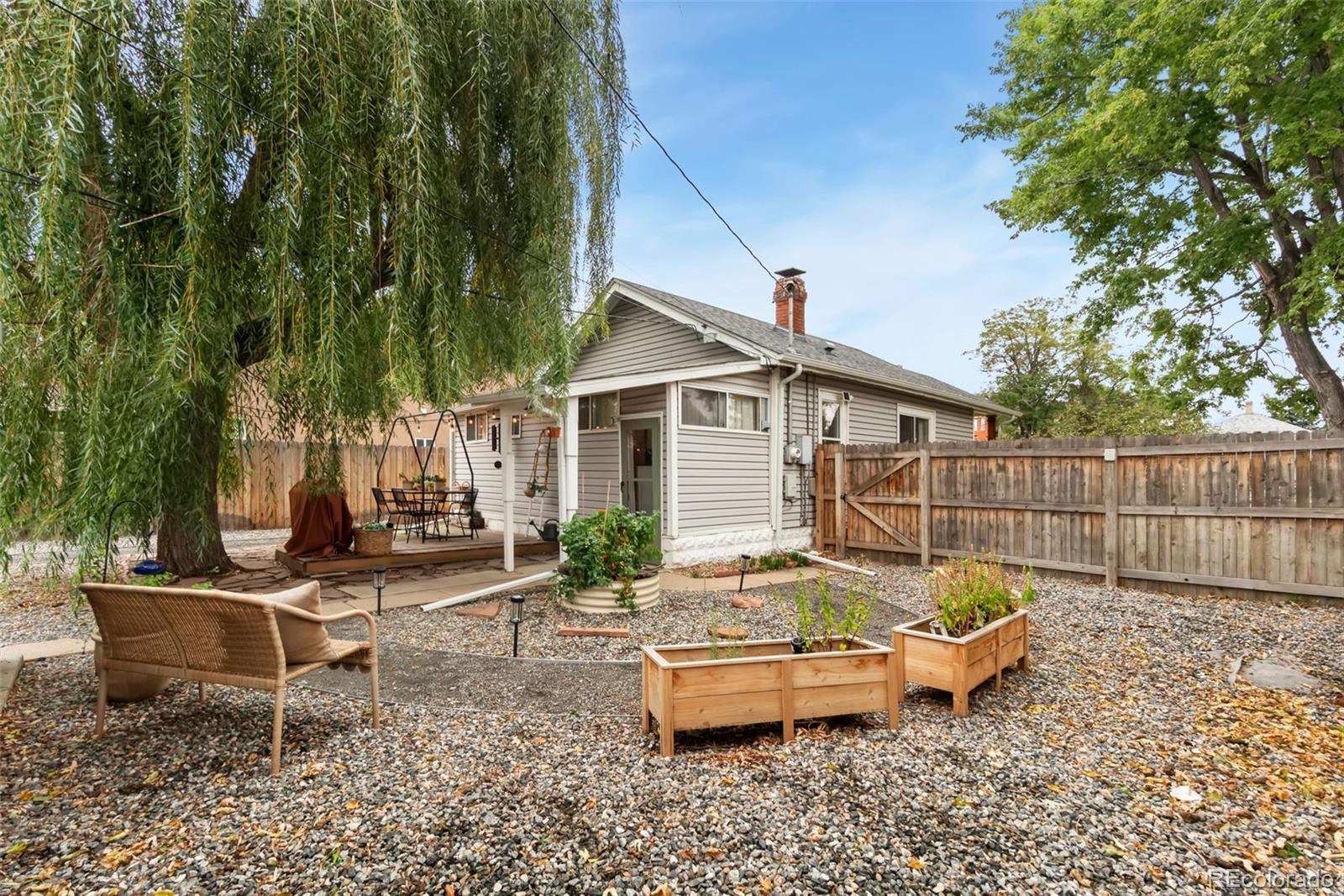 Welcome to this beautifully updated home in one of Denver’s most desirable neighborhoods! Located just blocks away from Regis University and all of the wonderful shopping and dining experiences that the highlands has to offer. Recent updates include a new furnace, air conditioner and hot water heater in 2022. New kitchen appliances and washer dryer in 2023. New roof, siding and gutters in 2017. Original hardwood floors welcome you as you step through the front door, leading to the open kitchen with exposed brick, stainless steel appliances and seating at the kitchen bar. You will love the expanded owners bedroom, with two large closets. The spacious remodeled bathroom features dual floating sinks and gorgeous tile work throughout. Laundry is conveniently located on the main level. The basement has room for loads of storage, or an extra office space if needed. Step outside to the large deck and beautiful flagstone patio underneath a shady willow tree that is absolutely lovely all summer long. The thoughtfully landscaped backyard is abundant with grapes, blackberries and strawberries, and ready for your spring planting to make a lush oasis for summer entertaining. An extra bonus is an amazing sunroom off of the back of the garage. Great extra space for watching some baseball or relaxing with your favorite book. This is the one you've been waiting for!