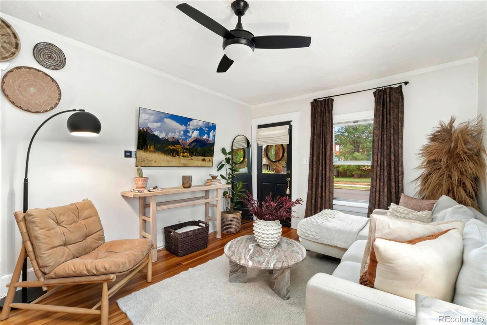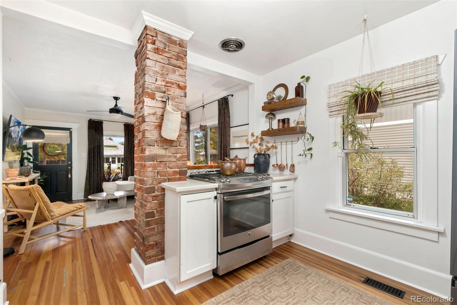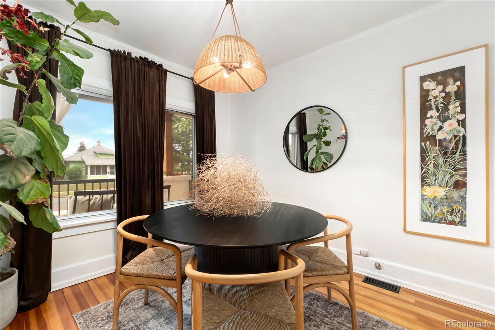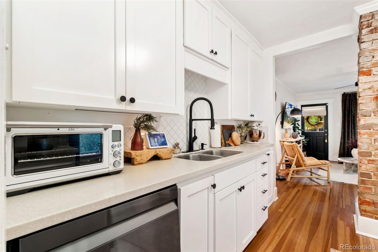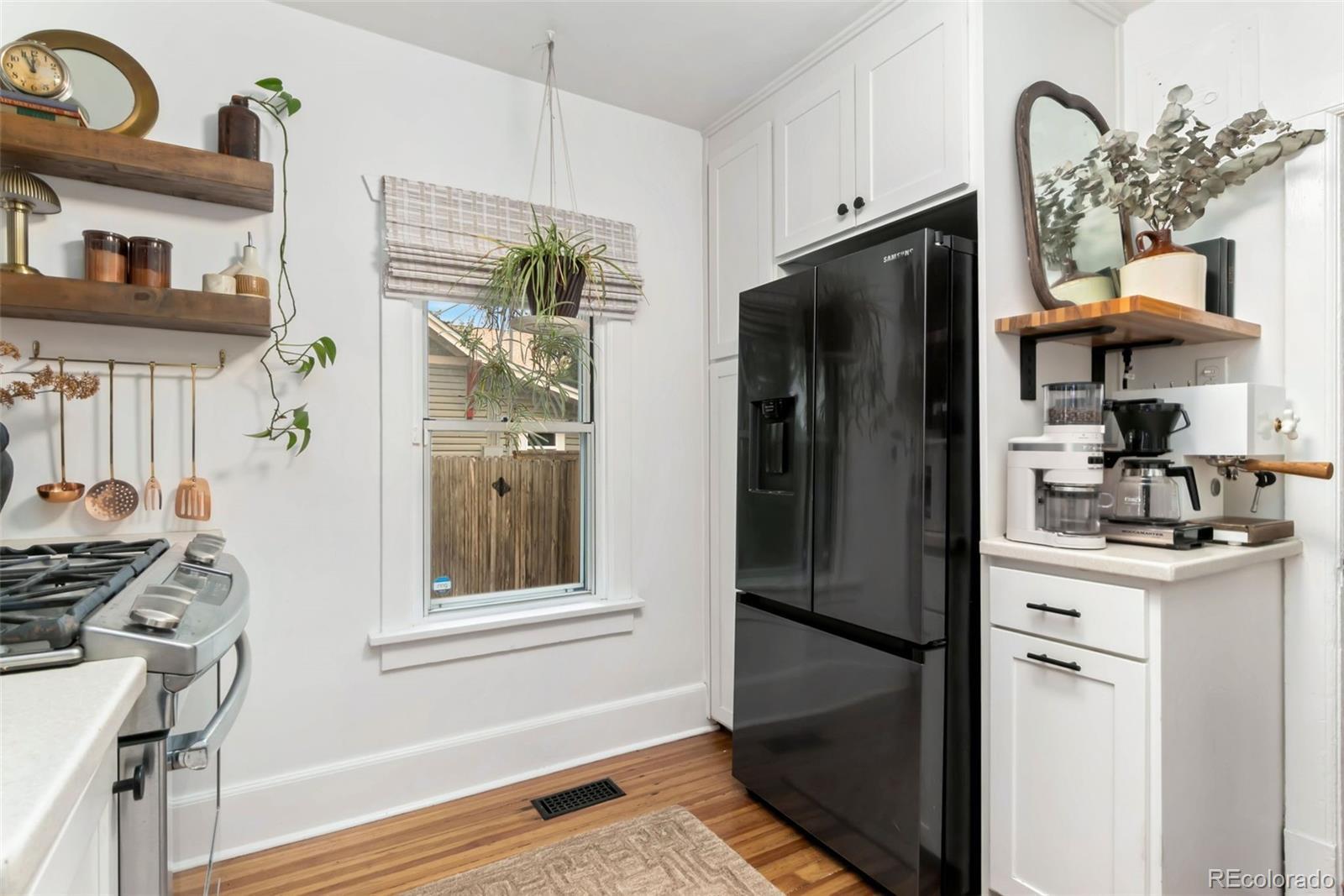 Welcome to this beautifully updated home in one of Denver’s most desirable neighborhoods! Located just blocks away from Regis University and all of the wonderful shopping and dining experiences that the highlands has to offer. Recent updates include a new furnace, air conditioner and hot water heater in 2022. New kitchen appliances and washer dryer in 2023. New roof, siding and gutters in 2017. Original hardwood floors welcome you as you step through the front door, leading to the open kitchen with exposed brick, stainless steel appliances and seating at the kitchen bar. You will love the expanded owners bedroom, with two large closets. The spacious remodeled bathroom features dual floating sinks and gorgeous tile work throughout. Laundry is conveniently located on the main level. The basement has room for loads of storage, or an extra office space if needed. Step outside to the large deck and beautiful flagstone patio underneath a shady willow tree that is absolutely lovely all summer long. The thoughtfully landscaped backyard is abundant with grapes, blackberries and strawberries, and ready for your spring planting to make a lush oasis for summer entertaining. An extra bonus is an amazing sunroom off of the back of the garage. Great extra space for watching some baseball or relaxing with your favorite book. This is the one you've been waiting for!