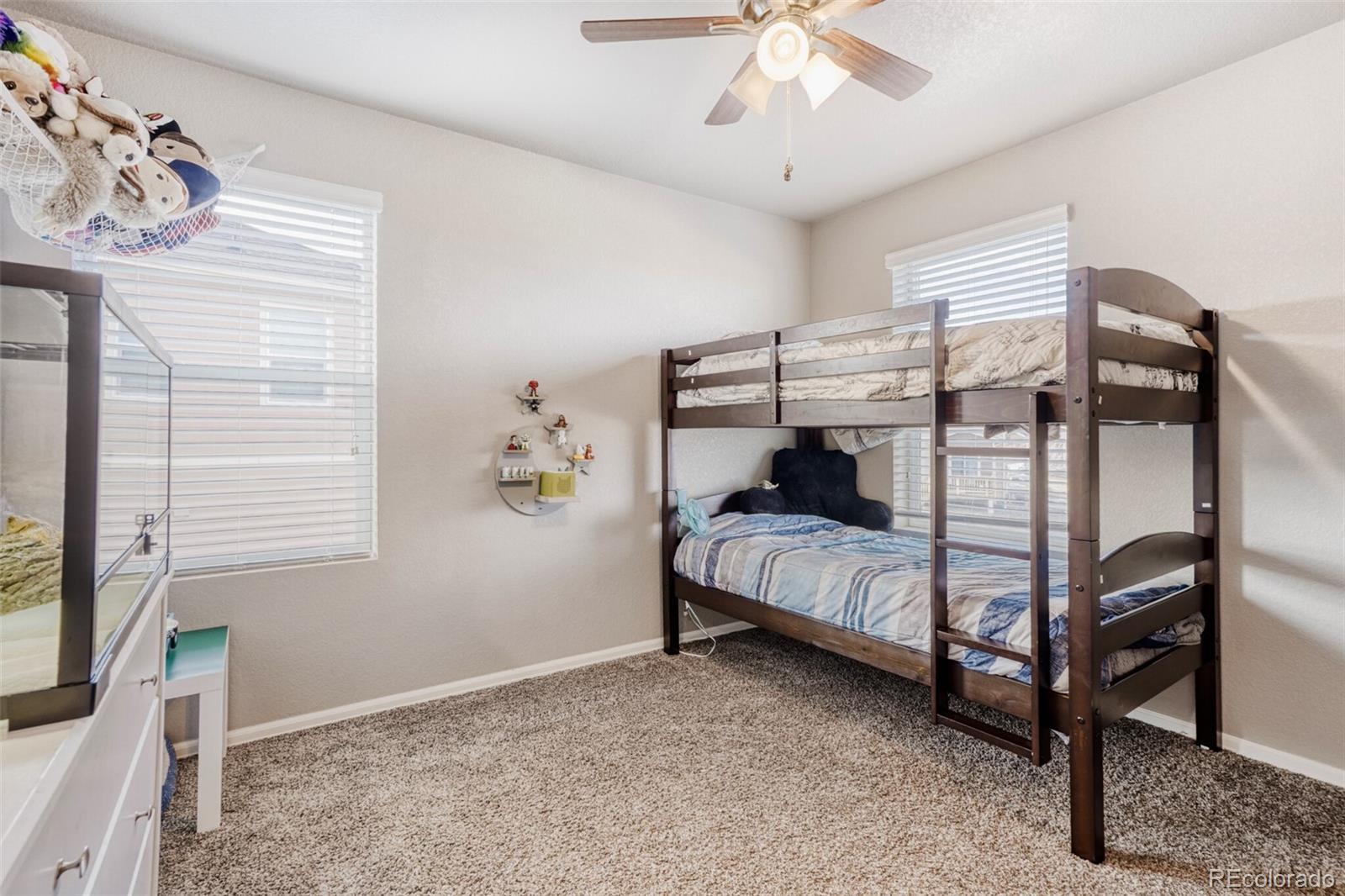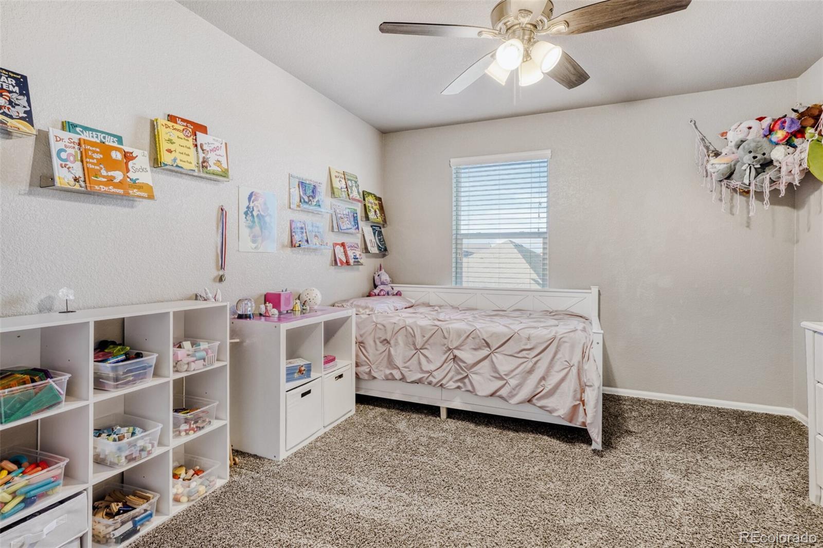 Welcome to this spacious and well-designed home in Castle Rock, offering over 3,200 square feet of living space and a functional floor plan ideal for everyday living and entertaining. The main level features an open great room with a gas fireplace, seamless flow to the kitchen and dining area, and abundant natural light. The home offers four bedrooms, including a generous primary suite with a five-piece bathroom. Additional features include ceiling fans throughout, an upstairs laundry room, and a large lot with a private yard. A neighborhood park and playground are located directly across the street, providing convenient outdoor space just steps from the front door. The unfinished basement includes rough-in plumbing, offering excellent potential for future expansion. Enjoy outdoor living with a front porch and patio, along with easy access to nearby schools, shopping, and trails. This home combines space, location, and flexibility in a desirable Castle Rock neighborhood.