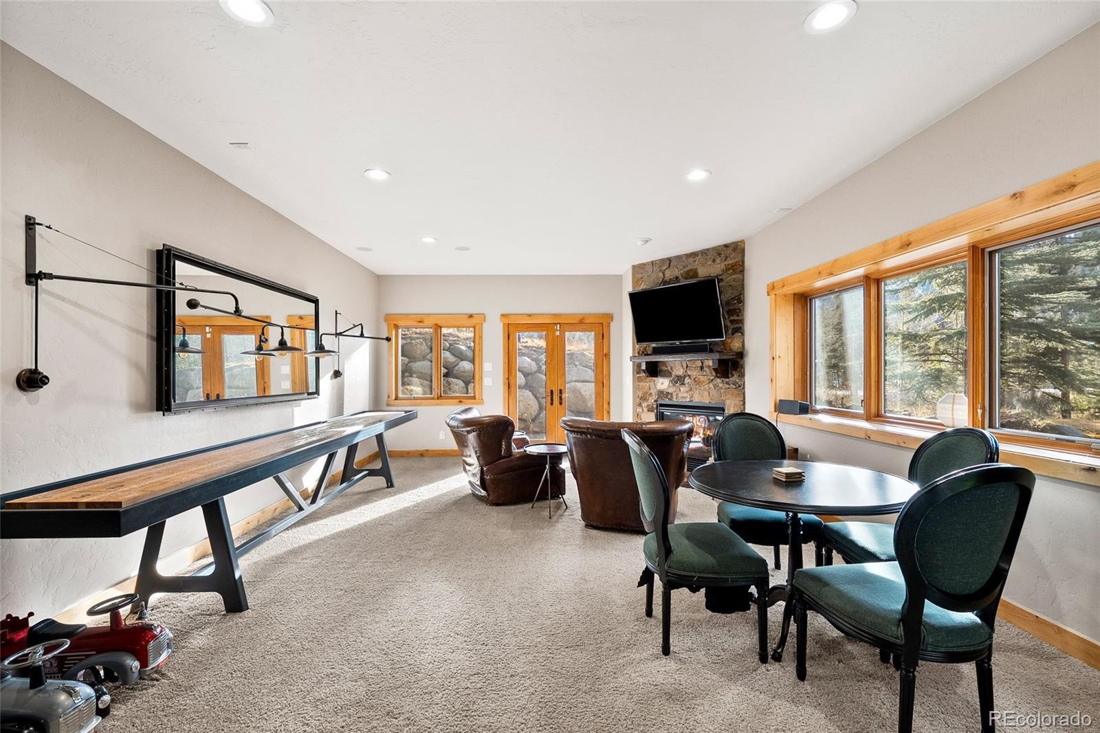 Situated in the heart of Frisco, 218 Windflower Lane captures the essence of mountain living with striking elegance. Set against the majestic peaks, this inviting retreat welcomes skiers, cyclists, and outdoor enthusiasts to experience tranquility in one of Frisco’s most sought-after neighborhoods, The Reserve. Spanning over 3,700 square feet, the home features 4 bedrooms, 4.5 baths and multiple levels of thoughtfully designed space. Every window frames the stunning mountain landscape, filling the interior with natural light and inspiring views. The property borders a lush acre of HOA-protected land, creating an exceptional sense of openness and privacy. Enjoy the front deck with breathtaking views of Mt. Royal, a beautifully landscaped backyard perfect for outdoor gatherings, and an elevated gas firepit set beneath the majestic trees. Inside, entertainment abounds with a wet bar, game room equipped with foosball, shuffleboard, and a basketball hoop, plus a unique bunk room and a hidden play space for the young at heart. Located just a block from the scenic bike trail and minutes from Lake Dillon and Frisco’s Main Street, this residence offers easy access to Whole Foods, Outer Range Brewery, and the area’s best dining and shopping. Summer brings paddleboarding and boating at the Frisco Marina, while winter promises world-class skiing at nearby Breckenridge, Vail, Keystone, Arapahoe Basin, and Copper Mountain. Elegantly furnished by a professional designer and used as an occasional secondary residence, 218 Windflower radiates a "lightly lived in" allure, ready to welcome new memories in a timeless mountain sanctuary. The Frisco market has experienced steady price appreciation while remaining a more affordable option than the big ski towns, and also providing easy access to multiple ski destinations!
