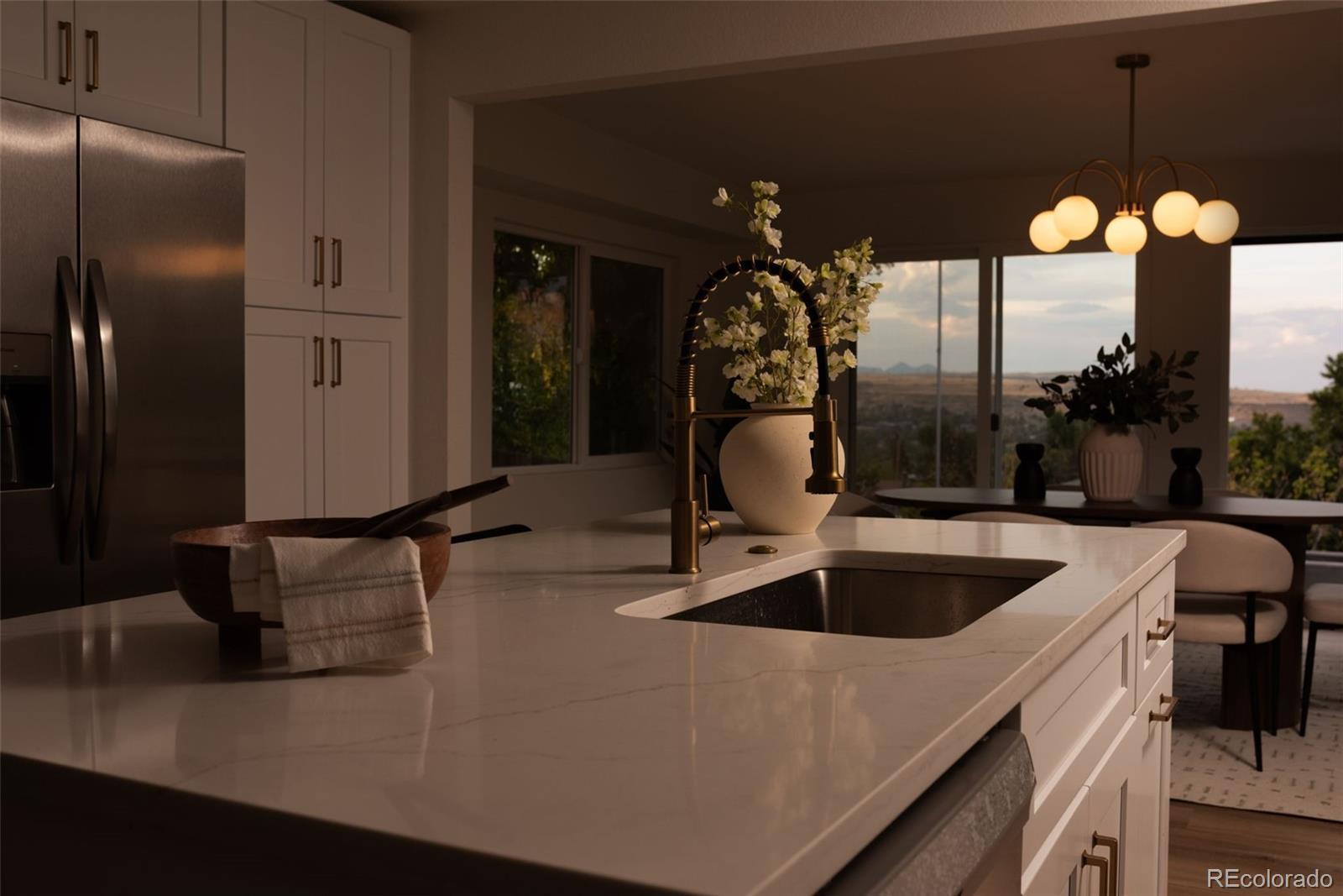 Discover the perfect balance of style, comfort, and peace of mind in this fully remodeled 4-bedroom, 3-bathroom home with an attached garage. Nestled in a quiet neighborhood just minutes from Red Rocks, Evergreen, and Downtown Denver, this move-in ready retreat combines modern upgrades with stunning mountain views. Step inside to a bright, open floor plan where natural light pours through expansive windows, highlighting the fresh, modern finishes. The spacious living and dining areas flow seamlessly—perfect for both entertaining and everyday living, with breathtaking views from your dining table. This home has been thoughtfully updated with brand-new roof, furnace, A/C, and electrical systems for worry-free living. The interiors feature a stylish, modern remodel throughout, while $40,000 in new concrete landscaping adds beauty, durability, and easy maintenance. A private yard and patio create the perfect setting for summer barbecues, outdoor entertaining, or quiet mornings with coffee and a mountain backdrop. With four bedrooms and three bathrooms, there’s plenty of space for family, guests, or a dedicated home office. Whether you’re hosting gatherings in your backyard oasis, heading out for a day of skiing or hiking in the Rockies, or enjoying the convenience of quick highway access and proximity to downtown, this home delivers both lifestyle and location. This isn’t just a house—it’s a turn-key Colorado retreat offering brand-new systems, mountain views, and spaces designed to be lived in and loved.