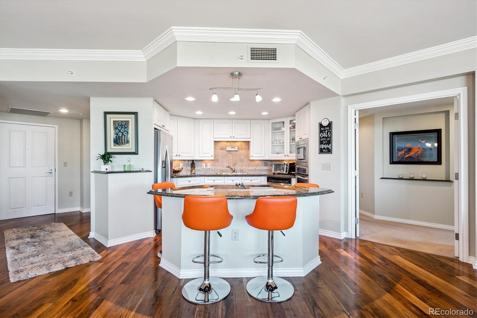 Make this your next home or enjoy the "lock and leave" lifestyle at this premier high-rise condominium in DTC. This fantastic 14th floor unit at Penterra Plaza offers a luxurious living experience starting with amazing views of both the front-range mountains and quiet city neighborhood from your private balcony. This open-concept unit has a split-bedroom floor plan with two bathrooms, living room, dining room, kitchen island and balcony. Also a built-in desk/alcove provides dedicated workspace. There is a deeded parking space suitable for two cars (tandem) with an EV charger. Penterra Plaza offers amenities including 24/7 concierge service, secured parking, additional EV charging stations in the secured garage, guest suites, fully equipped fitness center, business center, community room and entertainment terrace including grills and a fire pit. There are upcoming improvements and enhancements including new elevators and lobby remodeling. A new on-site state-of-the-art restaurant and culinary academy is forthcoming in the next couple of months. There is easy access to both I-25 and I-225. Building is located one block from Wallace Park, and walking distance to restaurants, shopping, and light rail. Penterra Plaza is an Energy Star Certified building. Make all of this yours today!