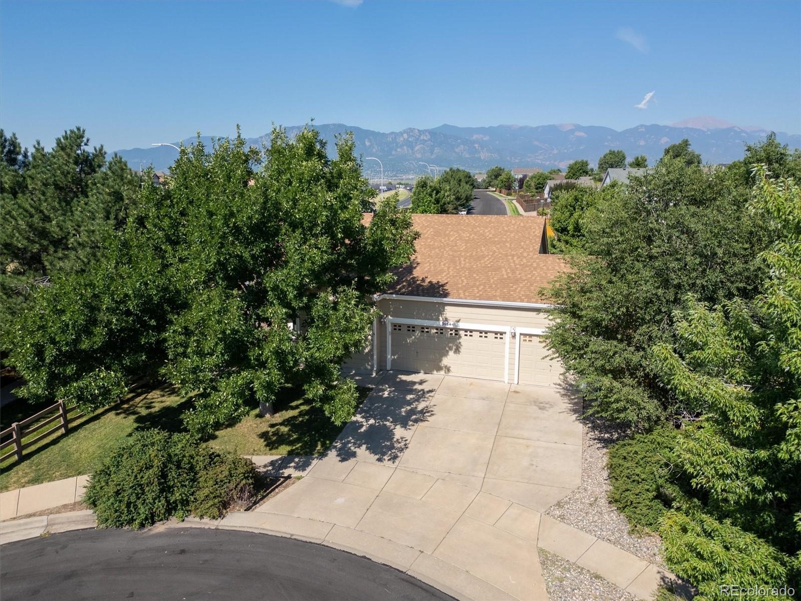 Welcome home! This rancher offers main level living with a primary bedroom featuring an attached ensuite and walk-in closet. There are beautiful hardwood floors throughout the main living areas. The main level bedroom near the front of the home could also double as an office. The kitchen comes equipped with slate stainless steel Samsung appliances, 42" white cabinets and a large pantry for storage. The finished basement boasts a large family/rec room, which is pre-plumbed for a potential wet bar. There are also two additional bedrooms in the basement, including a junior primary bedroom with ensuite and walk-in closet. The finished 3-car garage adds to the features of this home. Newer (2023) Samsung appliances, newer 3/4 hp opener on the double garage side and an existing opener on the single car garage entrance. Shelving and built in cabinets/storage in the garage stays. Smart Home features include the garage door opener on the double garage, the thermostat, front door lock and security system. The water heater, furnace air conditioning, roof and gutters were all replaced in 2023. Hot tub was also installed in 2023. Outside, you can relax while enjoying the views of Pikes Peak and Cheyenne Mountain. The back yard features a stamped concrete patio adjoining a lush lawn surrounded by flowering plants and an 8' x 10' storage shed. There is also a hot tub in the back yard for your enjoyment. Home offers easy access to all the essentials, to include Powers Boulevard, I-25, parks, the airport, shopping and military bases.