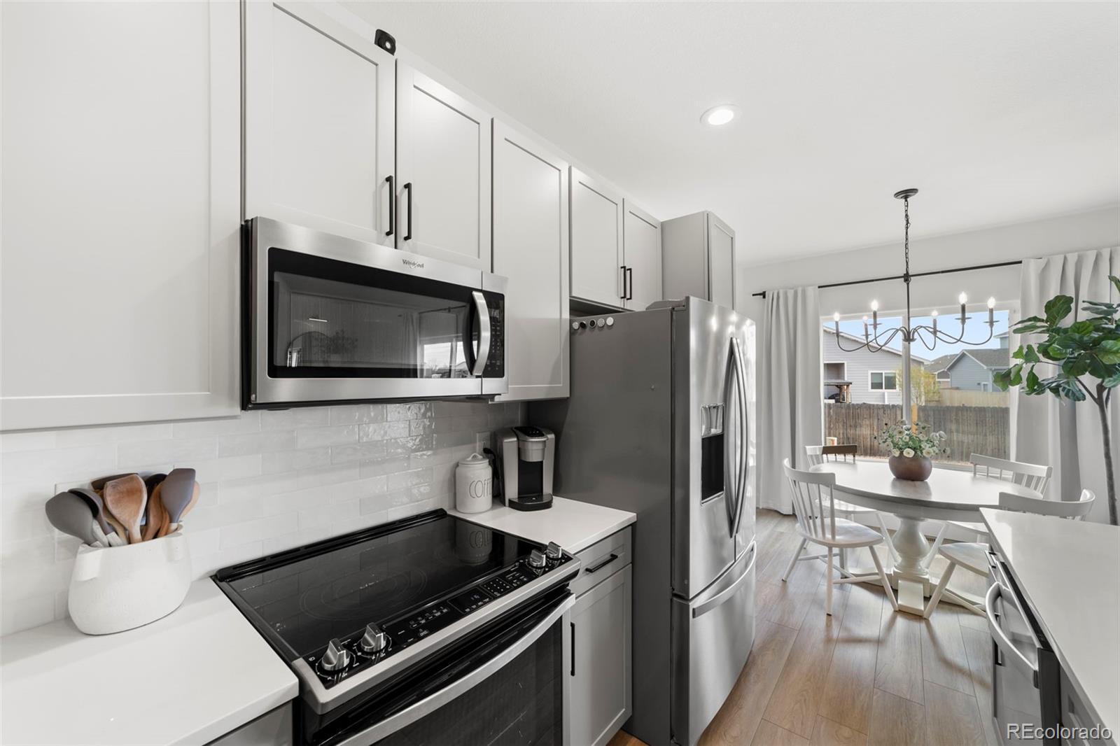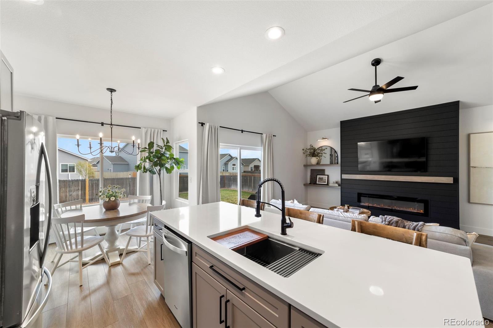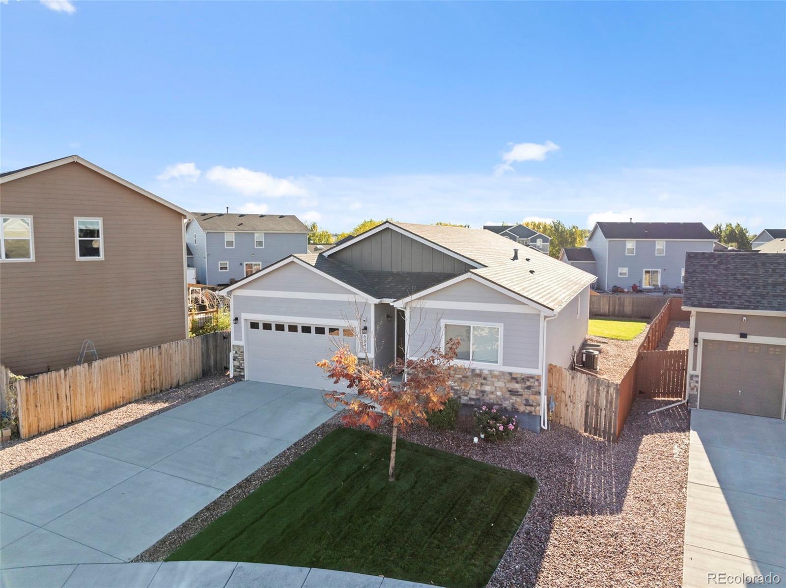 This is the fully renovated ranch style home in Lorson Ranch that you have been waiting for! From the designer kitchen boasting newer appliances, newer cabinets, and quartz countertops, to the upgraded bathrooms also featuring all quartz countertops, to the custom closet systems in every bedroom, this home feels semi-custom the moment you walk in. This stylish, meticulously maintained home, with a keen eye for design, is located on a quiet cul-de-sac and offers plenty of space for the entire family. Step inside where you will find a spacious bedroom that can also be used as an office or bonus room. Continue in where you will find a full bathroom, as well as an open concept living/kitchen/dining area. The living room showcases custom built-ins and a gas fireplace, while the kitchen is dripping in designer details- truly a HGTV lookalike dream! The master suite is tucked behind the family room, and features a 5-piece en suite bathroom with quartz countertops, as well as a closet complete with custom built ins. A laundry space with custom shelving completes the main level. Venture downstairs, where you will fall in love with a spacious rec room, two additional bedrooms, and a full bathroom. ***Upgrades throughout the home include luxury LVP flooring, upgraded carpet, updated custom closet systems in every bedroom, paneling in select rooms, and a stylish laundry room with shelving, new Class 4 shingle roof, new garage door, quartz countertops throughout the entire home, newer kitchen appliances (2022), water softener, and dimmable LED lighting***Easy access to Powers Blvd, Mesa Ridge shopping and dining amenities, and a 15-20 minute commute to Fort Carson, and Peterson SFB, and the COS airport. Enjoy neighborhood parks and walking trails, as well as new amenities coming to the entrance of Lorson Ranch, which include: a gas station, McDonalds, storage unit, daycare, and other fast-food amenities. Don't miss the best hom ein Lorson Ranch! Schedule your showing today!