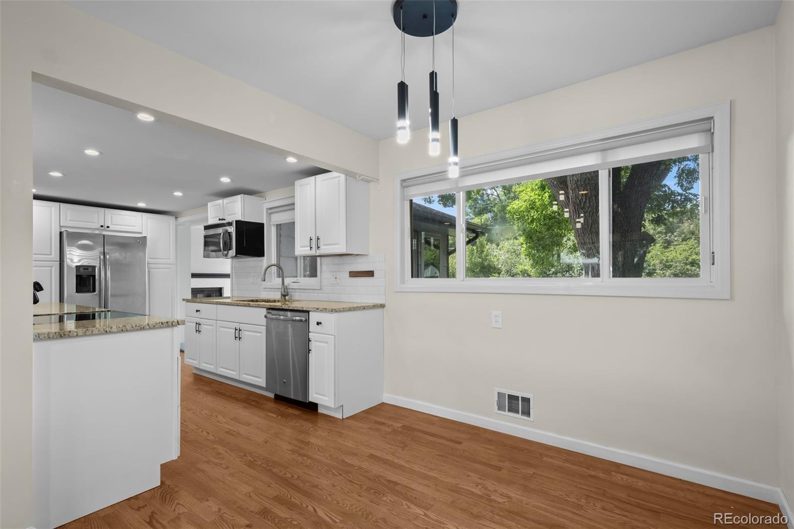 Step into style and comfort at this beautifully updated ranch-style home in the highly desirable Holly Hills neighborhood. Featuring an open floor plan and a fully finished basement, this 4-bedroom, 3-bath residence offers flexible living space for families, entertainers, or anyone seeking a move-in-ready Denver gem. You’ll fall in love with the updated kitchen—complete with gleaming granite countertops, stainless steel appliances, and plenty of room to cook and gather. Rich Oak hardwood floors flow throughout the main level, while natural light pours in from large windows, giving the entire home a warm, inviting feel. The vaulted family room is a true showstopper, boasting exposed beams and classic mid-century character that adds both space and style. Whether you're enjoying a cozy night by the fireplace or hosting guests, this room delivers on charm and functionality. Outside, you'll enjoy a private fenced backyard with a deck perfect for barbecues or relaxing with a book. The prime location offers easy access to parks, trails, and neighborhood gems. Just minutes from Eisenhower Park, the High Line Canal Trail, and the University Hills Plaza with shopping, dining, and a Whole Foods. Commuting is a breeze with quick access to I-25 and the Yale light rail station—making downtown Denver, DTC, and Cherry Creek just a short drive or ride away. Don’t miss your chance to own this stunning blend of classic design and modern updates in one of Denver’s most convenient and connected communities! **Cherry Creek Schools**$35K in New Windows**New Water Heater*Hunter Douglas Blinds**Updated recessed lighting**New Paint interior and exterior**New Shed**Raised Garden Boxes**Media HUB with Cat6 (multiple flex spaces for a home office or two)**HVAC Freshly Serviced August 2025** Don't miss this opportunity to own such a beautifully updated home with over 2,500 sf of functional space and a stunning curb appeal!