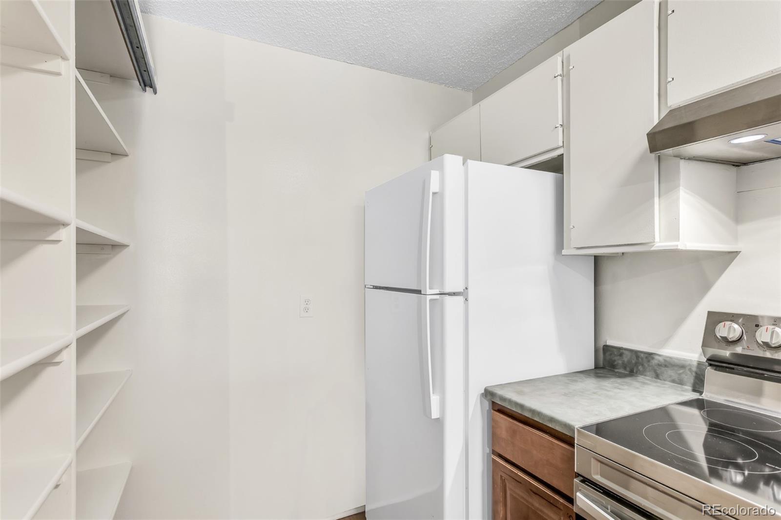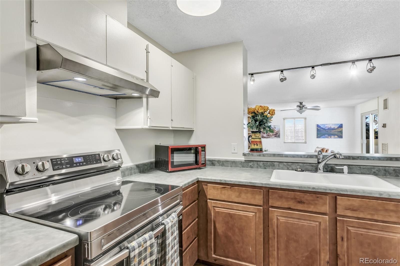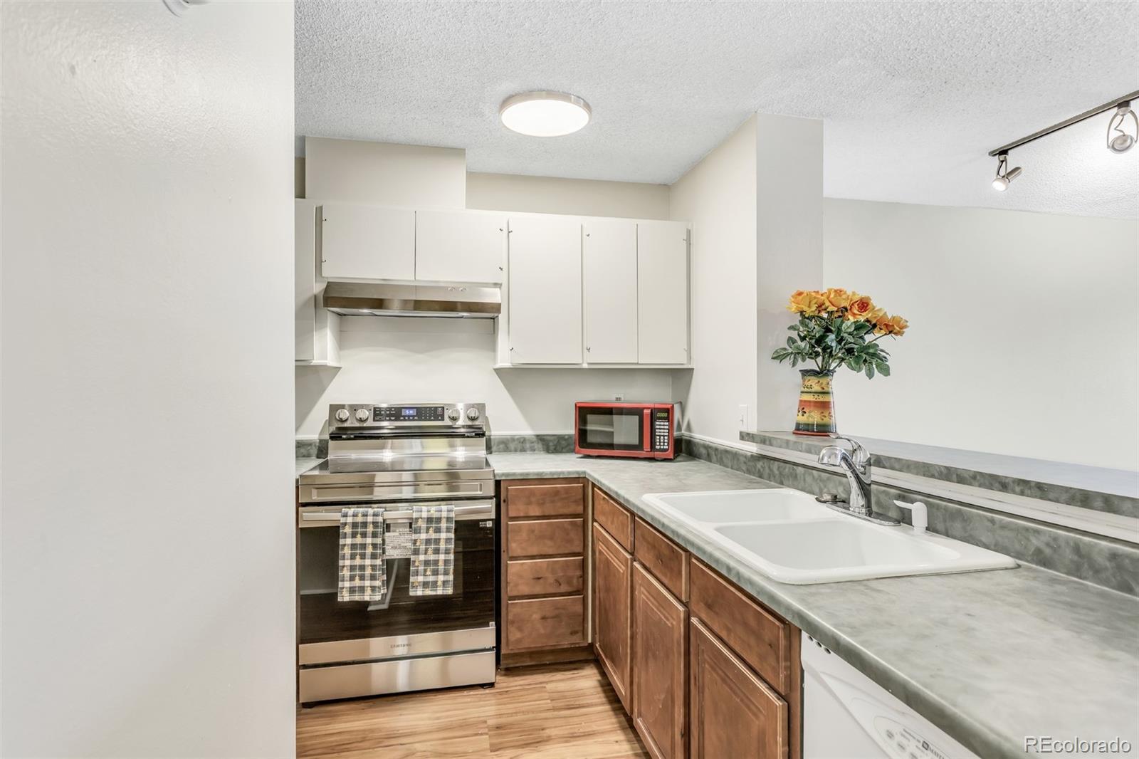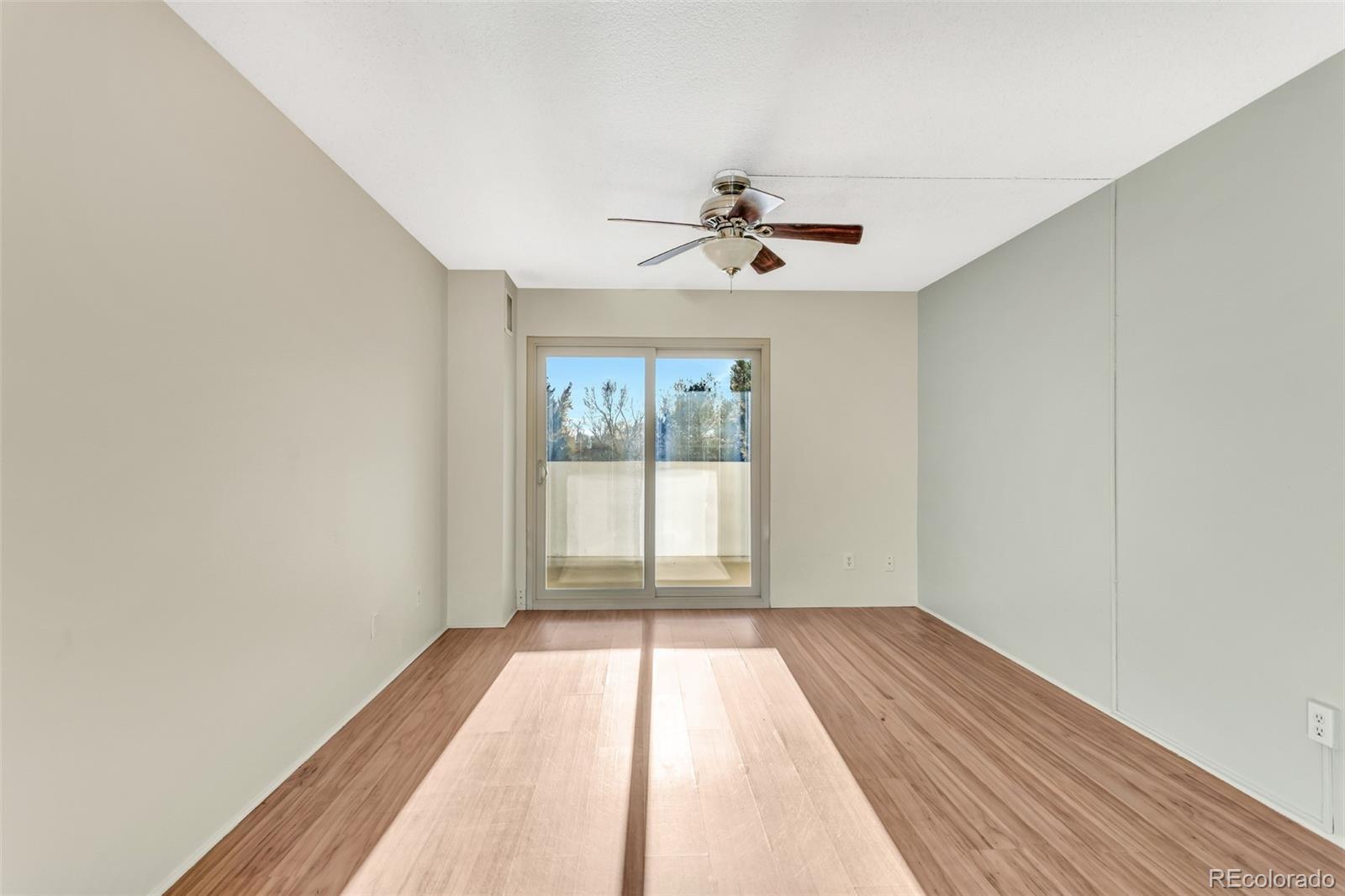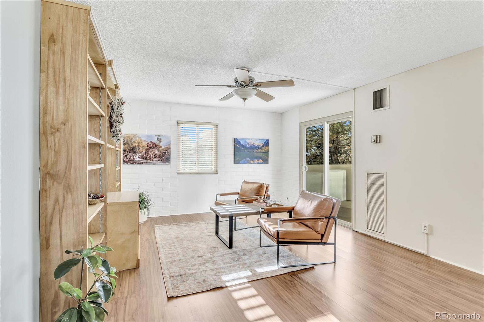 Discover unparalleled, resort-style living in this meticulously updated mid-century modern condo. This rare find blends contemporary design with comprehensive amenities and ultimate sophisticated, low-maintenance living. This home boasts new, remodeled windows throughout, ensuring energy efficiency and tranquil interiors. Step into the voluminous, sun-drenched living space, anchored by bespoke, built-in bookshelves and featuring elegant laminate flooring. Modern track lighting provides adaptable illumination, complementing the dedicated dining area. The adjacent kitchen is an aspiring chef’s dream, appointed with a stainless steel stove (electric glass cooktop), new refrigerator, and a Martha Stewart dishwasher. It features a new double sink with a modern black pull-out faucet, Formica countertops, and a clever cut-through to the dining area. The primary suite is a true private retreat, designed for tranquility. It connects directly to your private concrete patio via a new sliding glass door. This space faces west toward the mountains and stunning Colorado sunsets, offering a premium vantage point. The remodeled ensuite 3/4 bath is well-appointed, featuring tile floors, a new vanity with a double sink, a newer toilet, and updated lighting. The thoughtful design includes a walk-through dressing area with dual, custom closet systems for optimized storage. Residents enjoy extraordinary community amenities, including the dramatic lobby, a modern remodeled work room, and a year-round indoor pool and hot tub. The chic recreation lounge features a pool table and ping pong. The beautifully landscaped grounds feature outdoor fountains and offer park-like serenity. Enjoy the convenience of elevator access and dedicated parking. Secure your sophisticated, stress-free Denver living today.