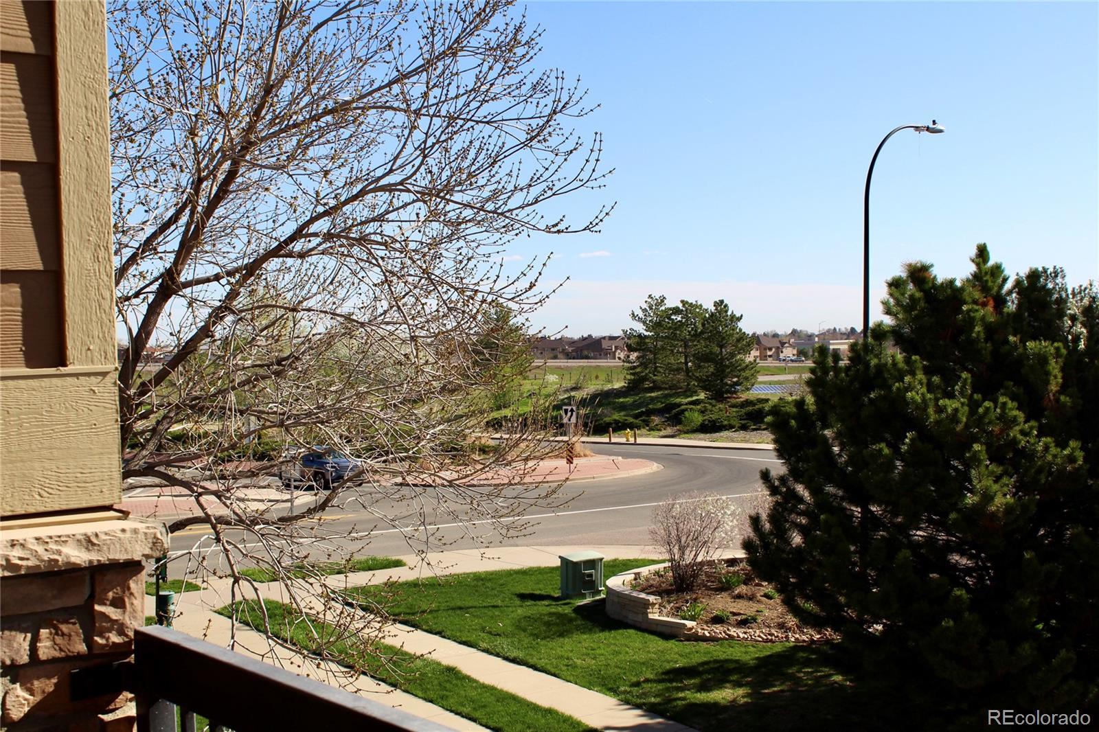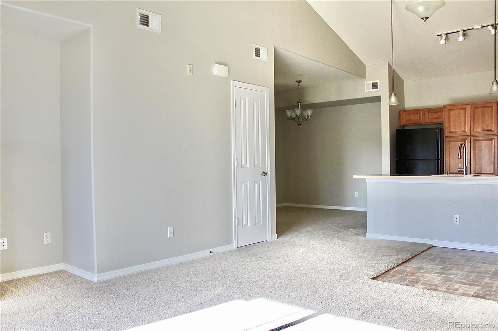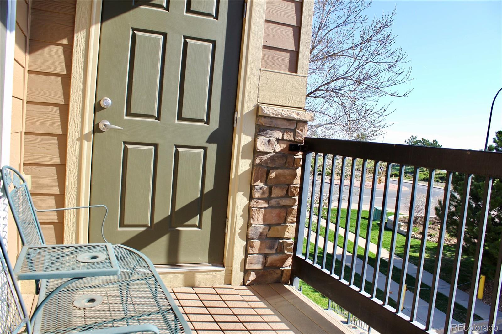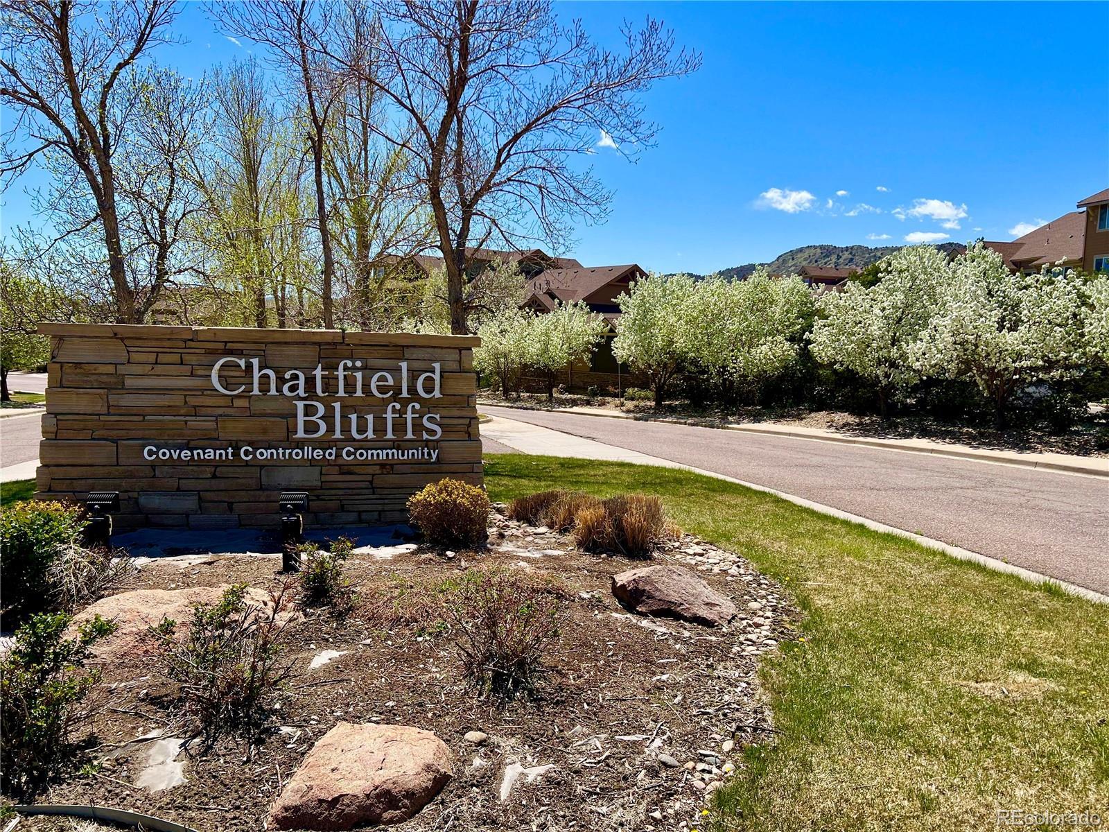 End-unit, 2nd floor penthouse condo! Well cared for and meticulously maintained. The spacious front porch has a private entrance. Step inside and enjoy the light, bright open floor plan with vaulted ceilings. The living room has a cozy fireplace with hologram flames or cool down with the central air-conditioner. Through the sliding glass doors you can enjoy our Colorado sunrises and views of DTC from the covered patio with an extra storage closet. The dining room is large and flows easily into the open kitchen with black appliances and plenty of cabinets and countertop space. The primary suite includes a 5-piece bathroom and double closets. The second bedroom is nicely sized. The laundry closet has built in shelving and is perfect for a full sized stackable washer and dryer. A one-car, detached garage (#16) is included with shelving, a remote and keypad! Plus lots of open guest parking. Chatfield Bluffs is a beautiful community with great HOA amenities including basic cable TV, a hot tub, pool, 2-story clubhouse with a fitness center; snow removal, water, sewer, and trash. Ideal location just off C-470 and Kipling Parkway with close proximity to shopping, dining, Chatfield Reservoir and State Park, Deer Creek Canyon, Waterton Canyon, Denver Botanic Gardens at Chatfield Farms, biking, hiking trails and highly regarded schools. Foothill living means you are in the mountains in just minutes! Please remove shoes or wear booties.