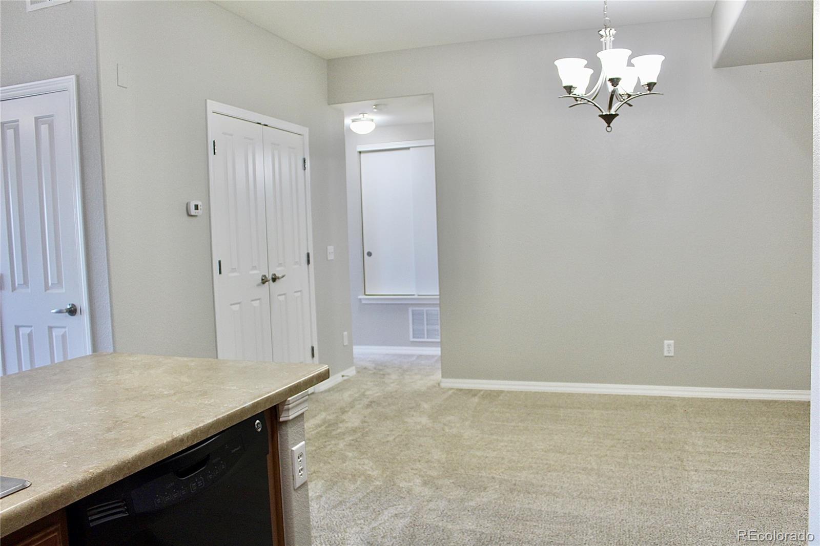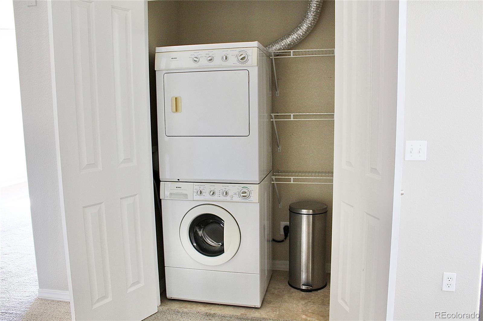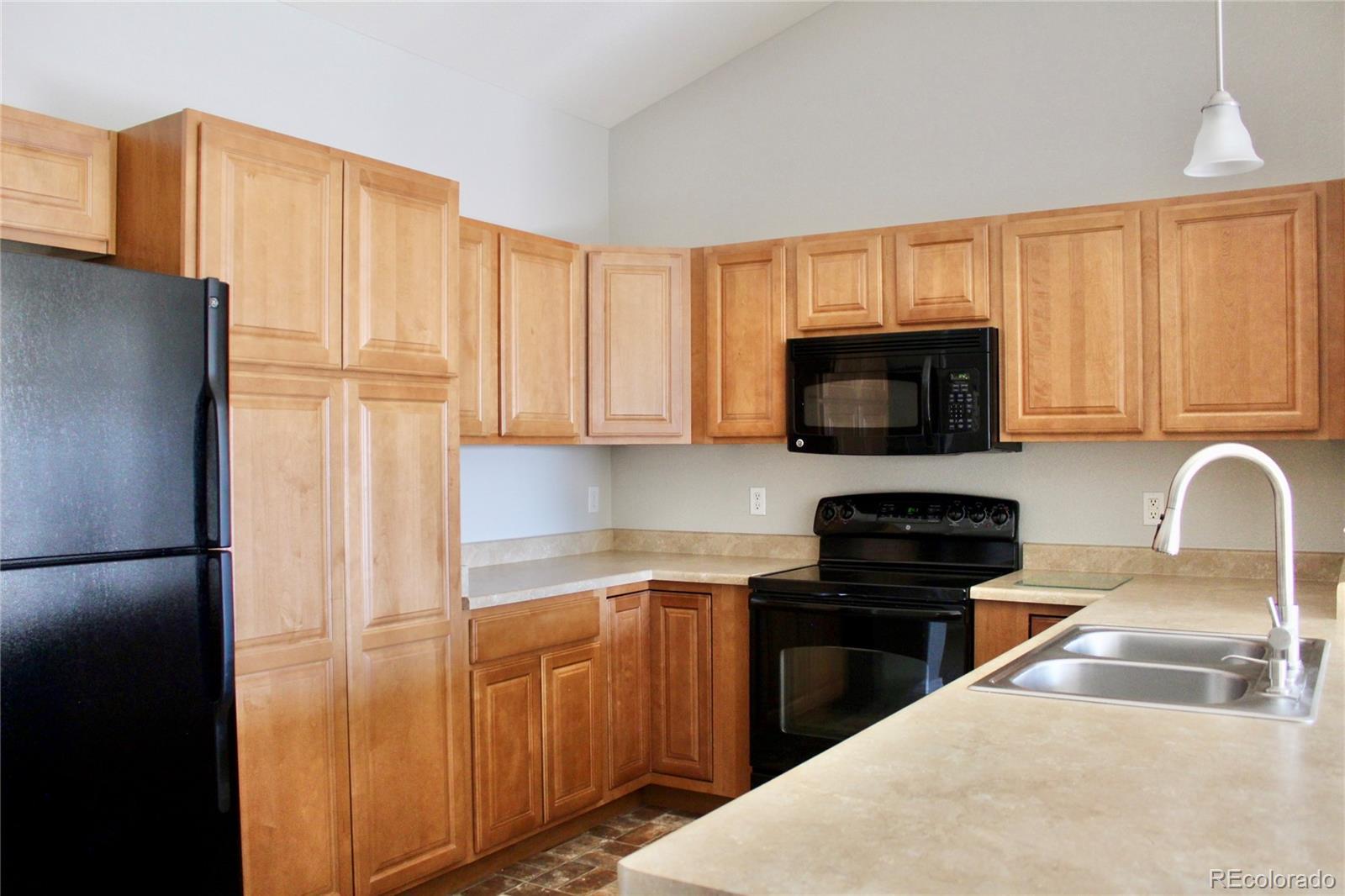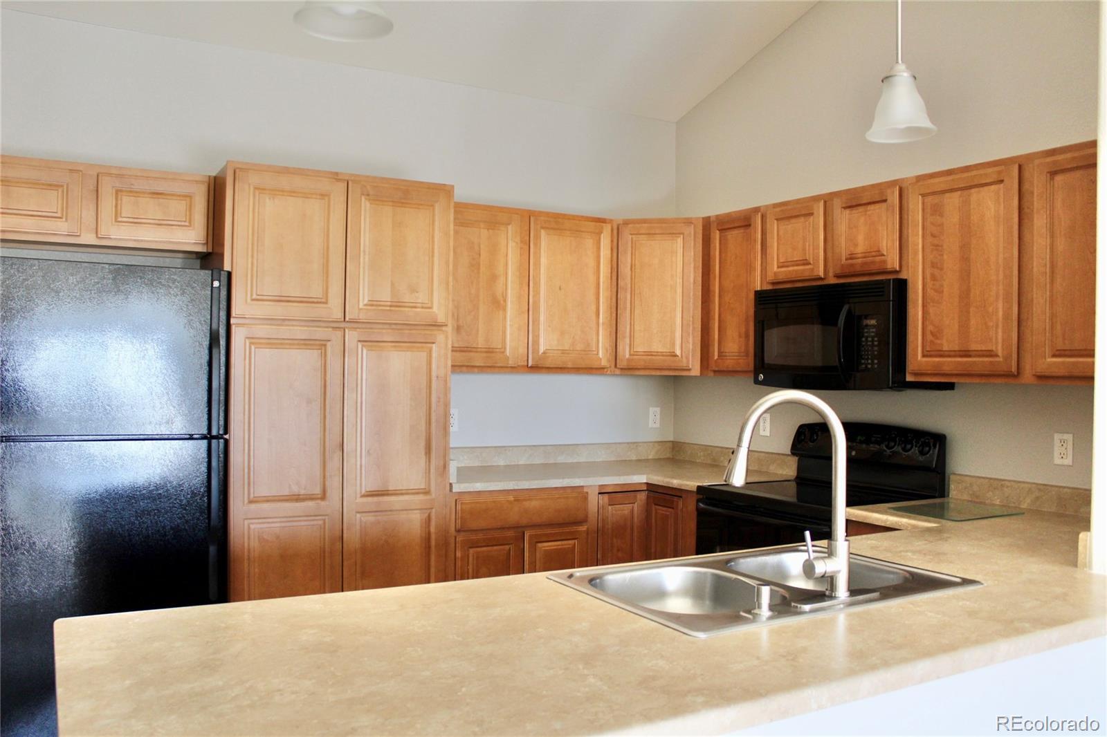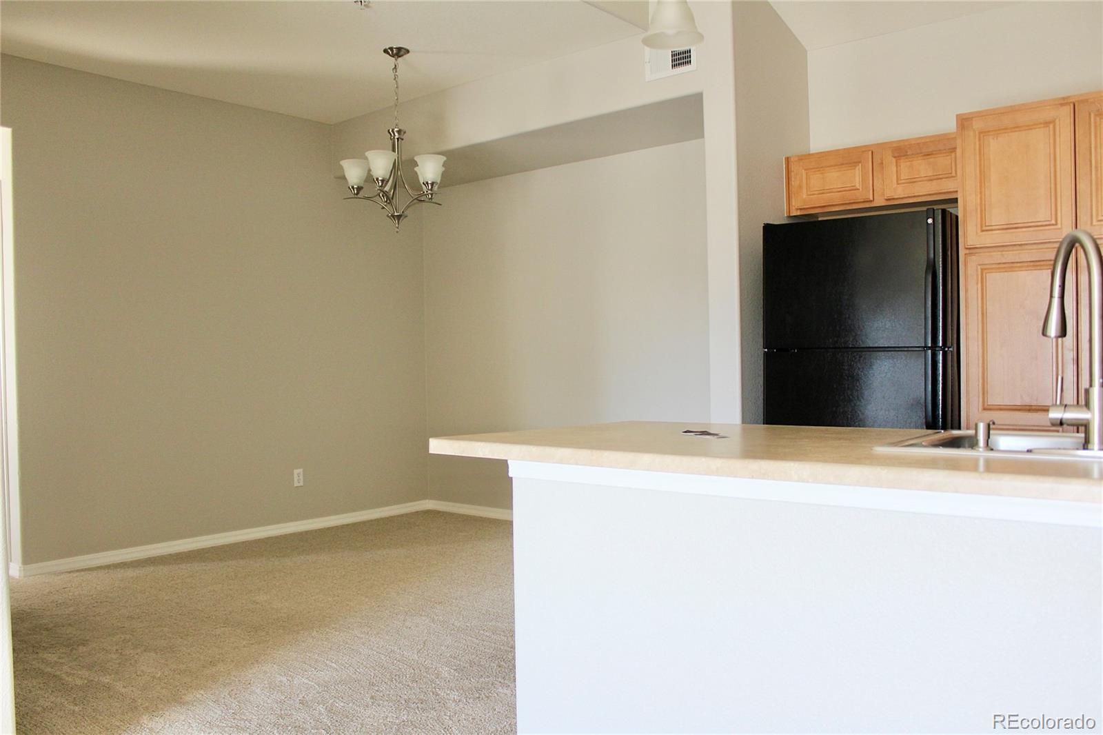 End-unit, 2nd floor penthouse condo! Well cared for and meticulously maintained. The spacious front porch has a private entrance. Step inside and enjoy the light, bright open floor plan with vaulted ceilings. The living room has a cozy fireplace with hologram flames or cool down with the central air-conditioner. Through the sliding glass doors you can enjoy our Colorado sunrises and views of DTC from the covered patio with an extra storage closet. The dining room is large and flows easily into the open kitchen with black appliances and plenty of cabinets and countertop space. The primary suite includes a 5-piece bathroom and double closets. The second bedroom is nicely sized. The laundry closet has built in shelving and is perfect for a full sized stackable washer and dryer. A one-car, detached garage (#16) is included with shelving, a remote and keypad! Plus lots of open guest parking. Chatfield Bluffs is a beautiful community with great HOA amenities including basic cable TV, a hot tub, pool, 2-story clubhouse with a fitness center; snow removal, water, sewer, and trash. Ideal location just off C-470 and Kipling Parkway with close proximity to shopping, dining, Chatfield Reservoir and State Park, Deer Creek Canyon, Waterton Canyon, Denver Botanic Gardens at Chatfield Farms, biking, hiking trails and highly regarded schools. Foothill living means you are in the mountains in just minutes! Please remove shoes or wear booties.