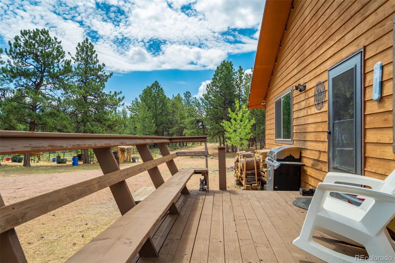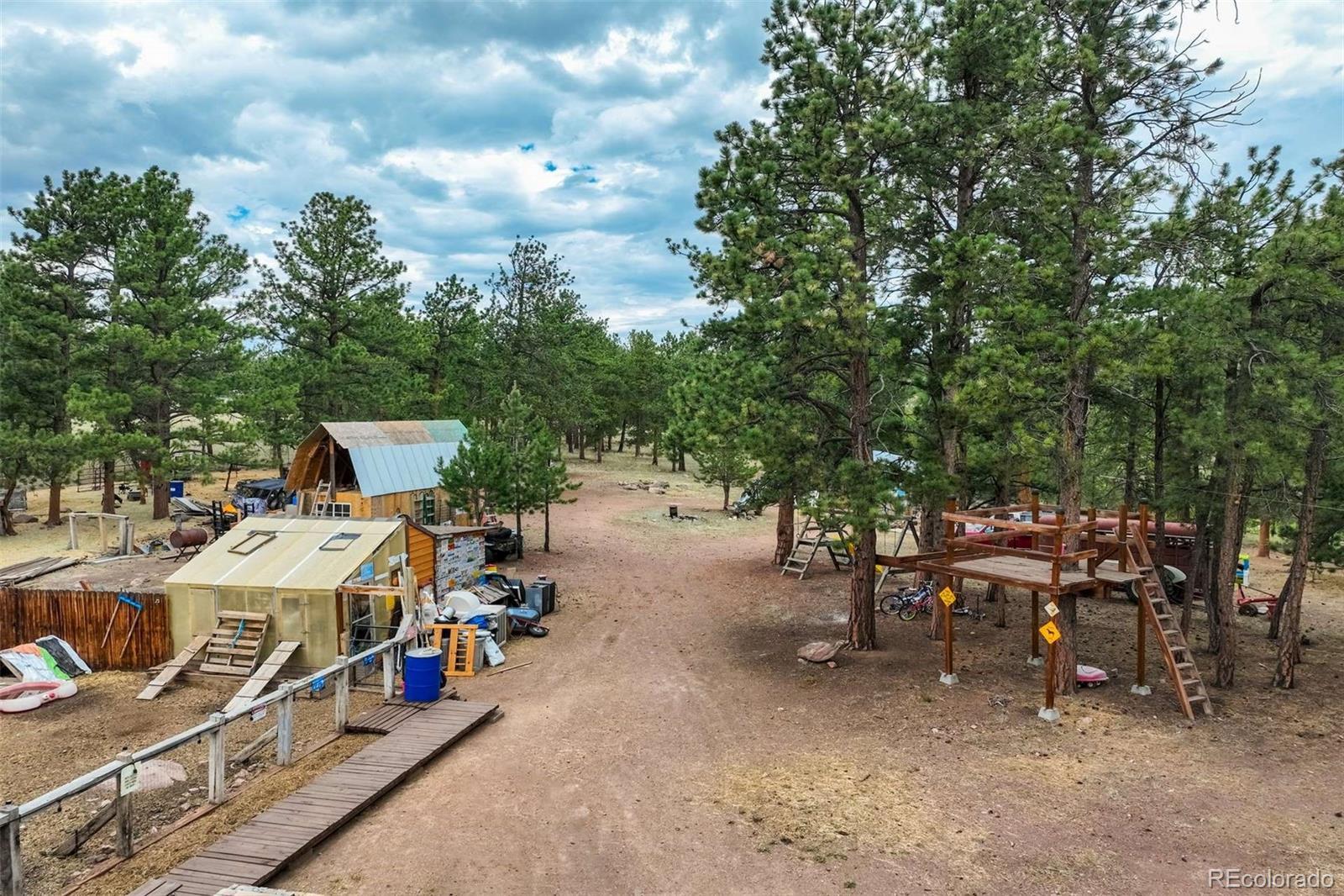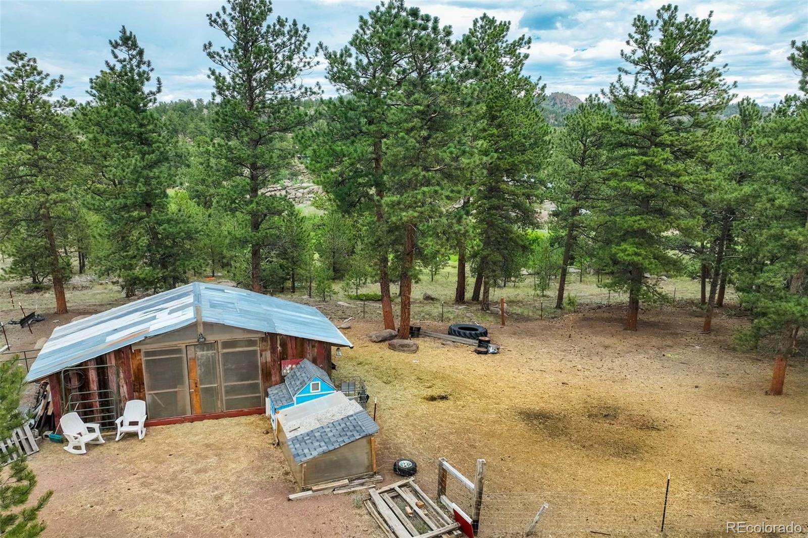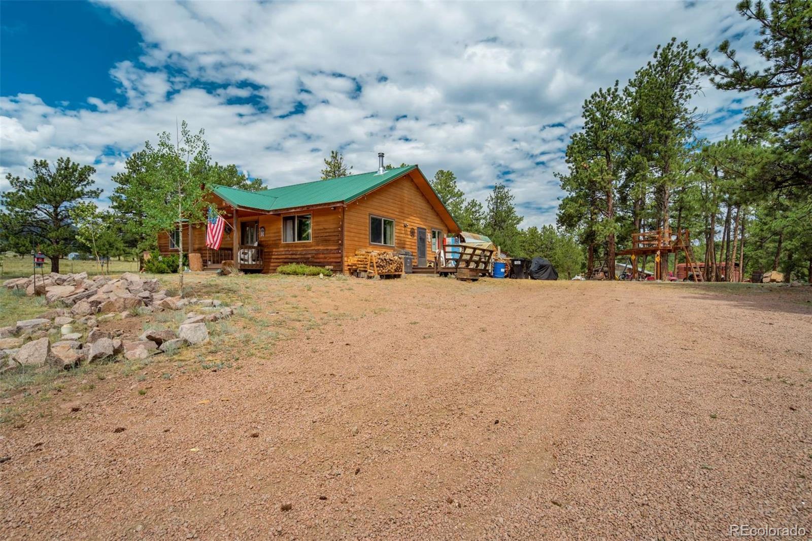 Ready to ditch the tight lots and restrictions of city living? This 3.82-acre mountain homestead offers a rare chance to live freely, grow your own food, raise animals and enjoy privacy without being far from the action. Just over an hour from Colorado Springs, this property delivers the tranquil rhythm of country living while keeping you within reach of major services and amenities. The 1,440?sq?ft 3-bedroom, 2-bath home features vaulted tongue-in-groove ceilings, tile floors in high-traffic areas and a wood-burning stove that anchors the living room with warmth and charm. Solid pine doors throughout add rustic flair as sunlight pours through abundant windows framing views of towering pines, native rock outcroppings and wide-open skies. The kitchen offers excellent functionality with ample cabinet space, a center island and a built-in dining nook perfect for slow mornings or quick bites, and an adjoining mudroom with laundry area streamlines everyday tasks. Outdoors, the land is fenced and cross-fenced into zones for horses, goats, chickens and more. A reclaimed-wood barn sits beside a greenhouse, raised beds, sheds and coops, and a treehouse invites adventure or quiet reflection. Accessed via a private drive and gated entry, the property’s layout maximizes seclusion and versatility, with plenty of flat ground for RV parking or future expansion. Revel in the freedom of no covenants or HOAs, and relish year-round access on county-maintained gravel roads. Guffey's charm awaits, offering amenities such as a K-8 Charter School, Post Office, Library, and quaint eateries. For outdoor enthusiasts, endless adventures beckon nearby, from rafting and hiking to skiing and hunting. Enjoy scenic drives to nearby towns like Florissant, Cripple Creek, Woodland Park, and Cañon City for additional conveniences and attractions. Whether launching your homestead, planning a peaceful retreat or embracing fully independent living, this property is equipped to support your vision!