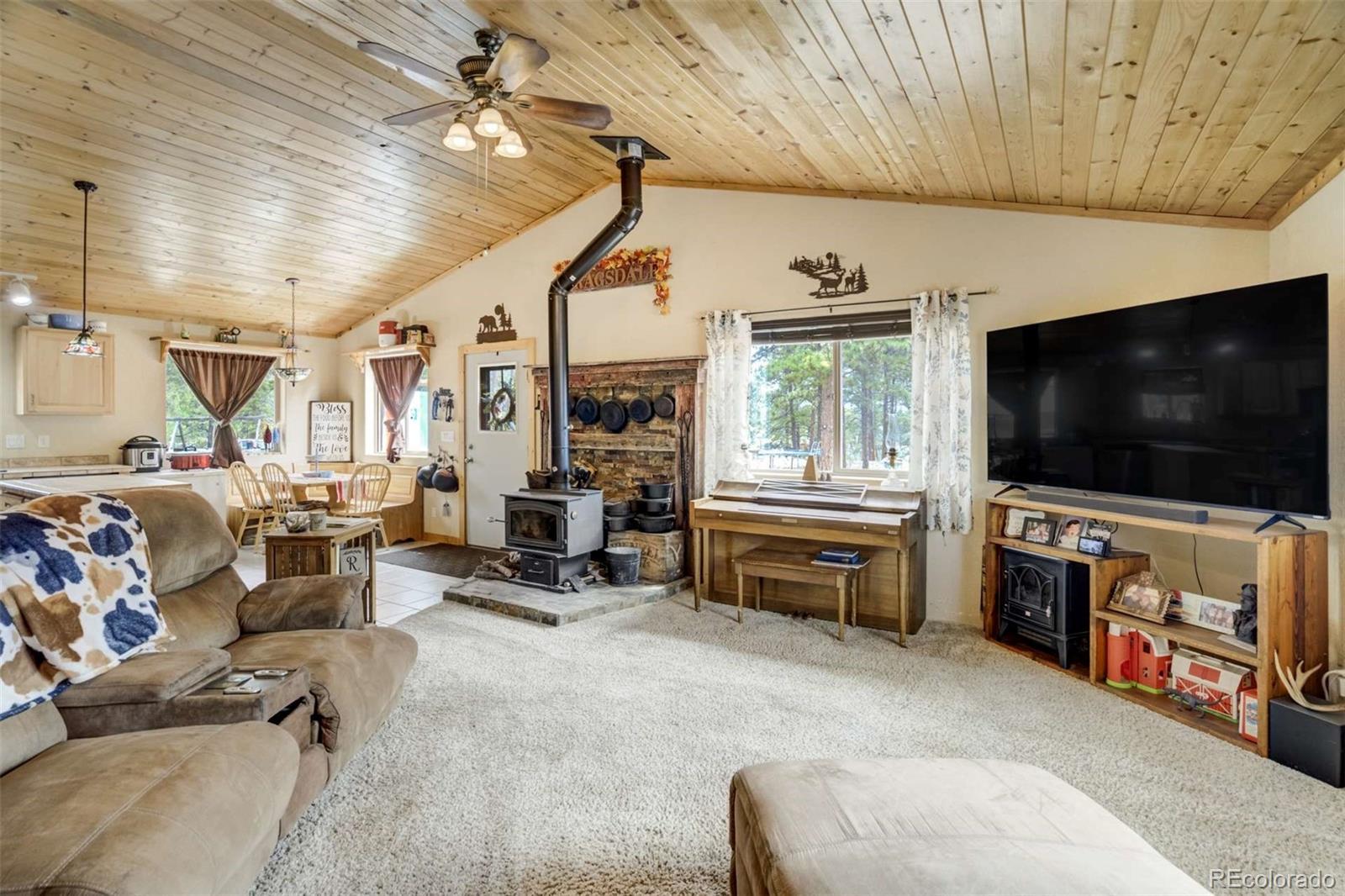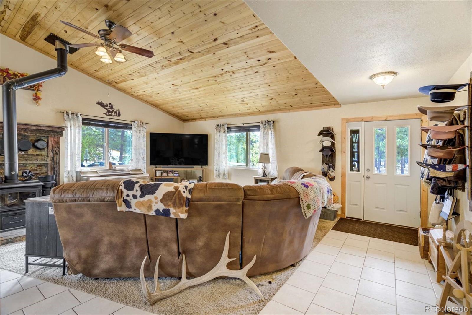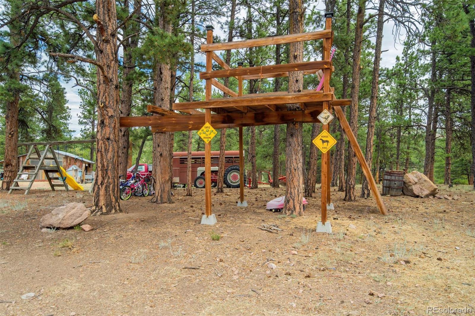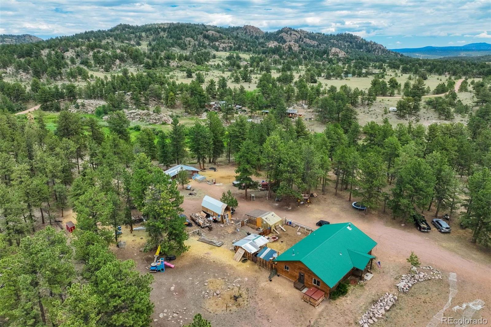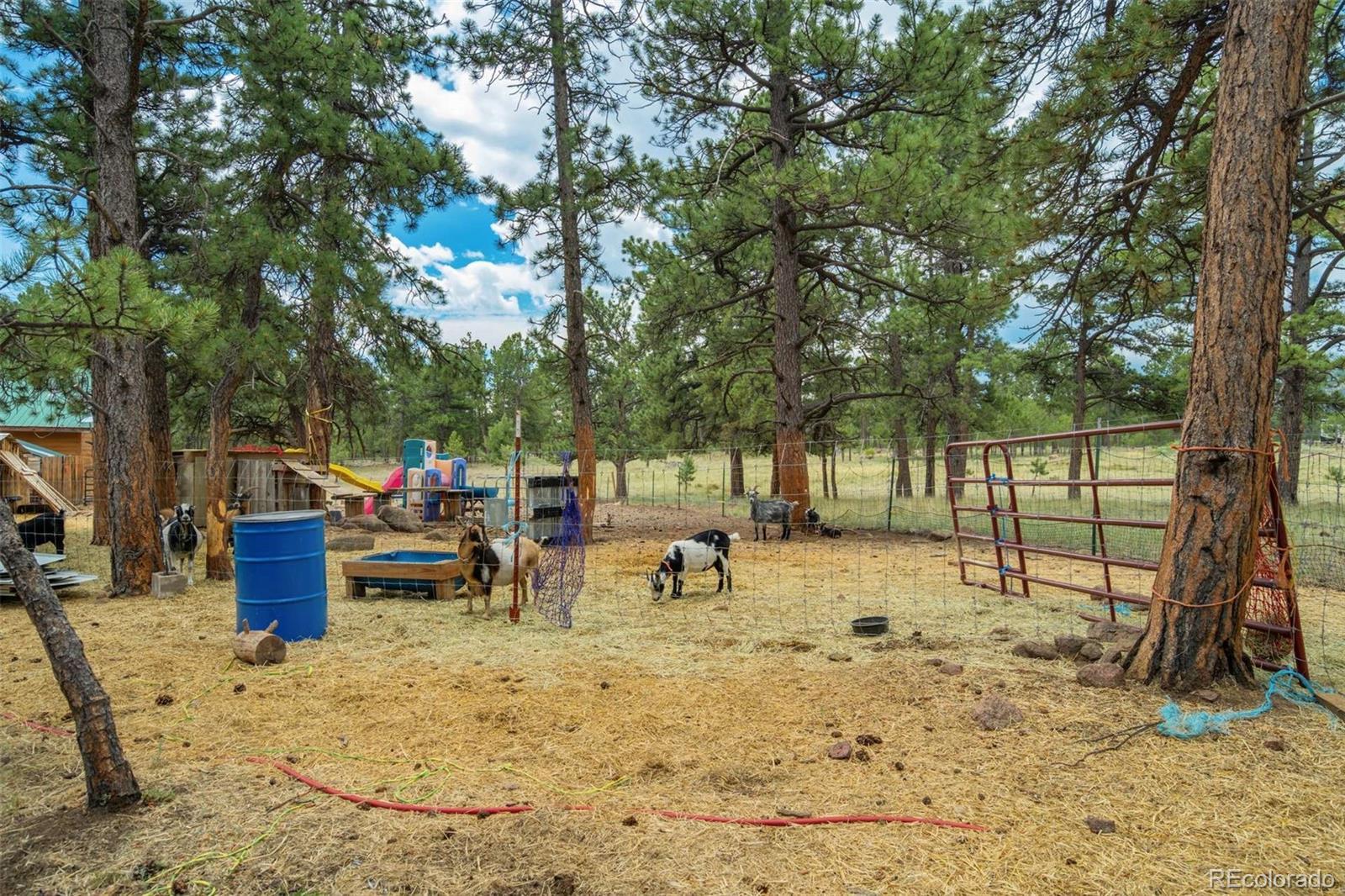 Ready to ditch the tight lots and restrictions of city living? This 3.82-acre mountain homestead offers a rare chance to live freely, grow your own food, raise animals and enjoy privacy without being far from the action. Just over an hour from Colorado Springs, this property delivers the tranquil rhythm of country living while keeping you within reach of major services and amenities. The 1,440?sq?ft 3-bedroom, 2-bath home features vaulted tongue-in-groove ceilings, tile floors in high-traffic areas and a wood-burning stove that anchors the living room with warmth and charm. Solid pine doors throughout add rustic flair as sunlight pours through abundant windows framing views of towering pines, native rock outcroppings and wide-open skies. The kitchen offers excellent functionality with ample cabinet space, a center island and a built-in dining nook perfect for slow mornings or quick bites, and an adjoining mudroom with laundry area streamlines everyday tasks. Outdoors, the land is fenced and cross-fenced into zones for horses, goats, chickens and more. A reclaimed-wood barn sits beside a greenhouse, raised beds, sheds and coops, and a treehouse invites adventure or quiet reflection. Accessed via a private drive and gated entry, the property’s layout maximizes seclusion and versatility, with plenty of flat ground for RV parking or future expansion. Revel in the freedom of no covenants or HOAs, and relish year-round access on county-maintained gravel roads. Guffey's charm awaits, offering amenities such as a K-8 Charter School, Post Office, Library, and quaint eateries. For outdoor enthusiasts, endless adventures beckon nearby, from rafting and hiking to skiing and hunting. Enjoy scenic drives to nearby towns like Florissant, Cripple Creek, Woodland Park, and Cañon City for additional conveniences and attractions. Whether launching your homestead, planning a peaceful retreat or embracing fully independent living, this property is equipped to support your vision!