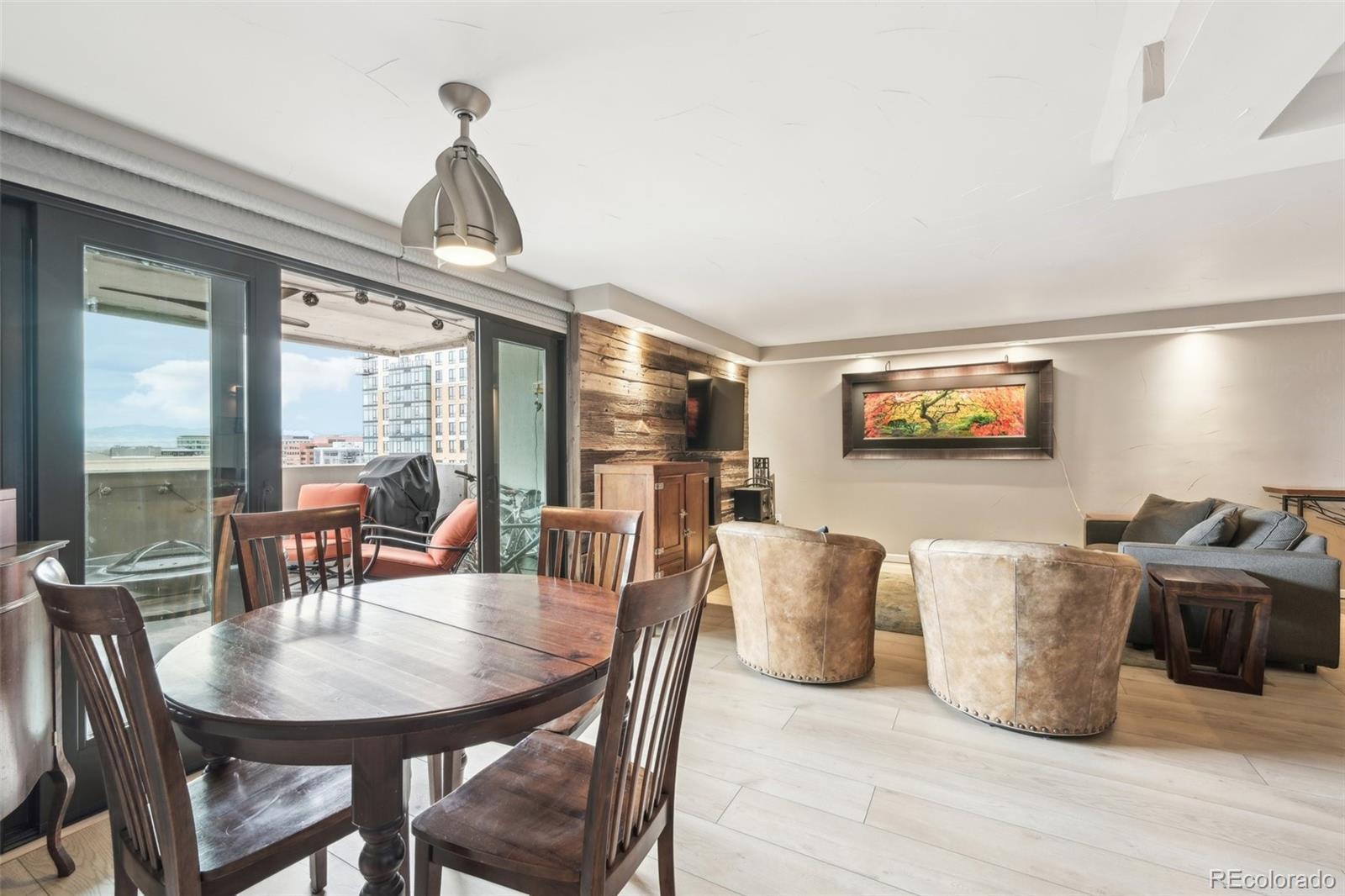 Experience Cherry Creek living at an unbeatable price! This fully renovated home has been fully gutted and redesigned for a modern & bright open-concept layout. The spacious kitchen boasts ample storage, stainless steel appliances, soft-close cabinetry, and stunning Brazilian stone countertops that extend into the bathrooms. A beautiful wood-burning fireplace, framed with reclaimed wood, adds charm and serves as a central feature with an integrated entertainment center. Additional upgrades include new luxury vinyl plank flooring, recessed lighting throughout, and high-end trowel texture finishes. Enjoy breathtaking mountain views from a large balcony accessible from both the main living area and the second bedroom. Located within walking distance of Cherry Creek's premier shopping, dining, and entertainment, this home offers the perfect blend of luxury and convenience. Don't miss out on this incredible opportunity!