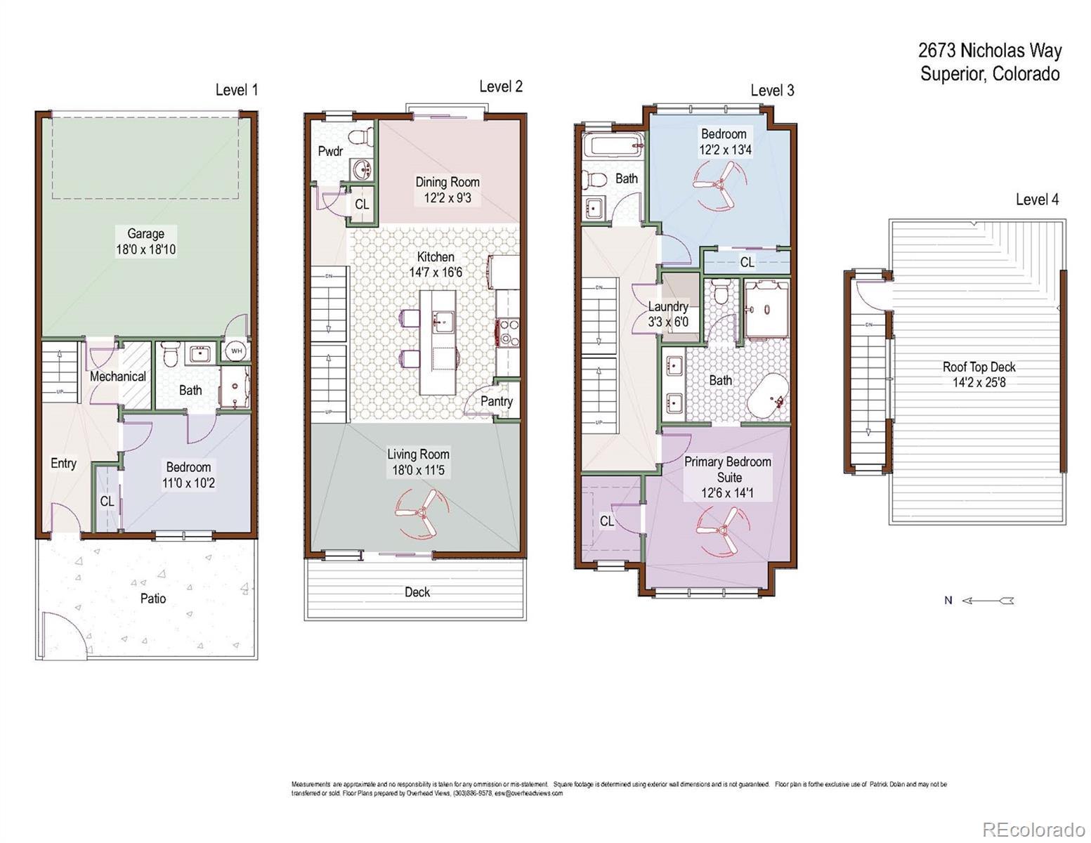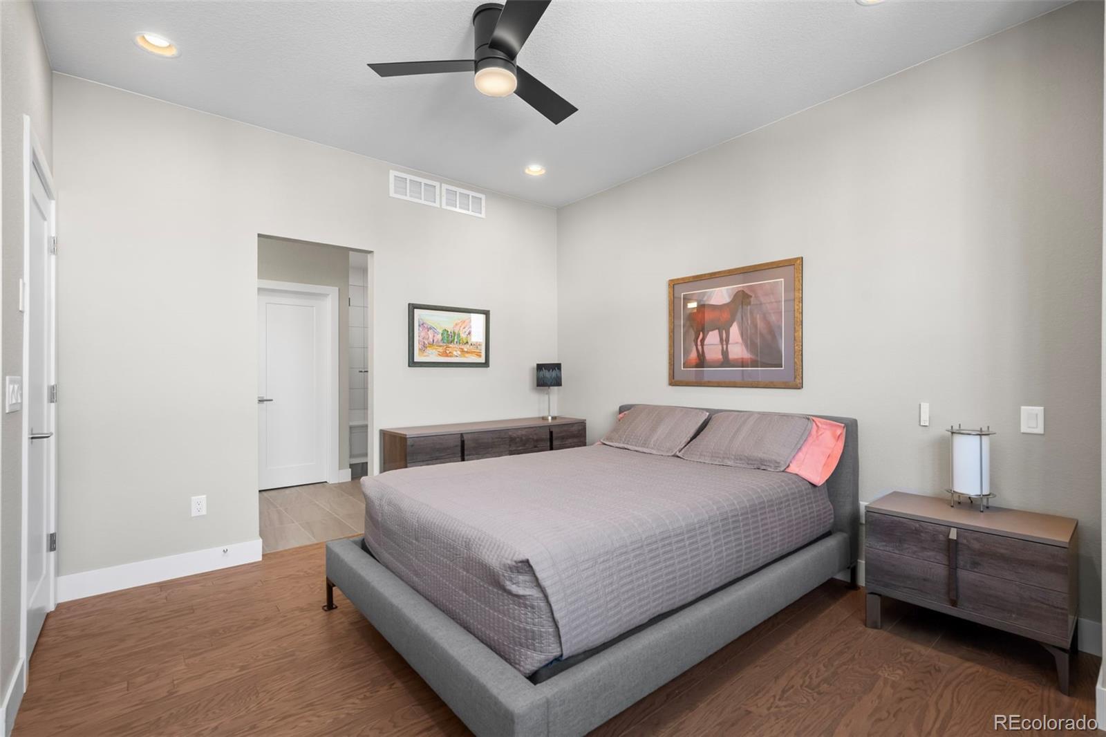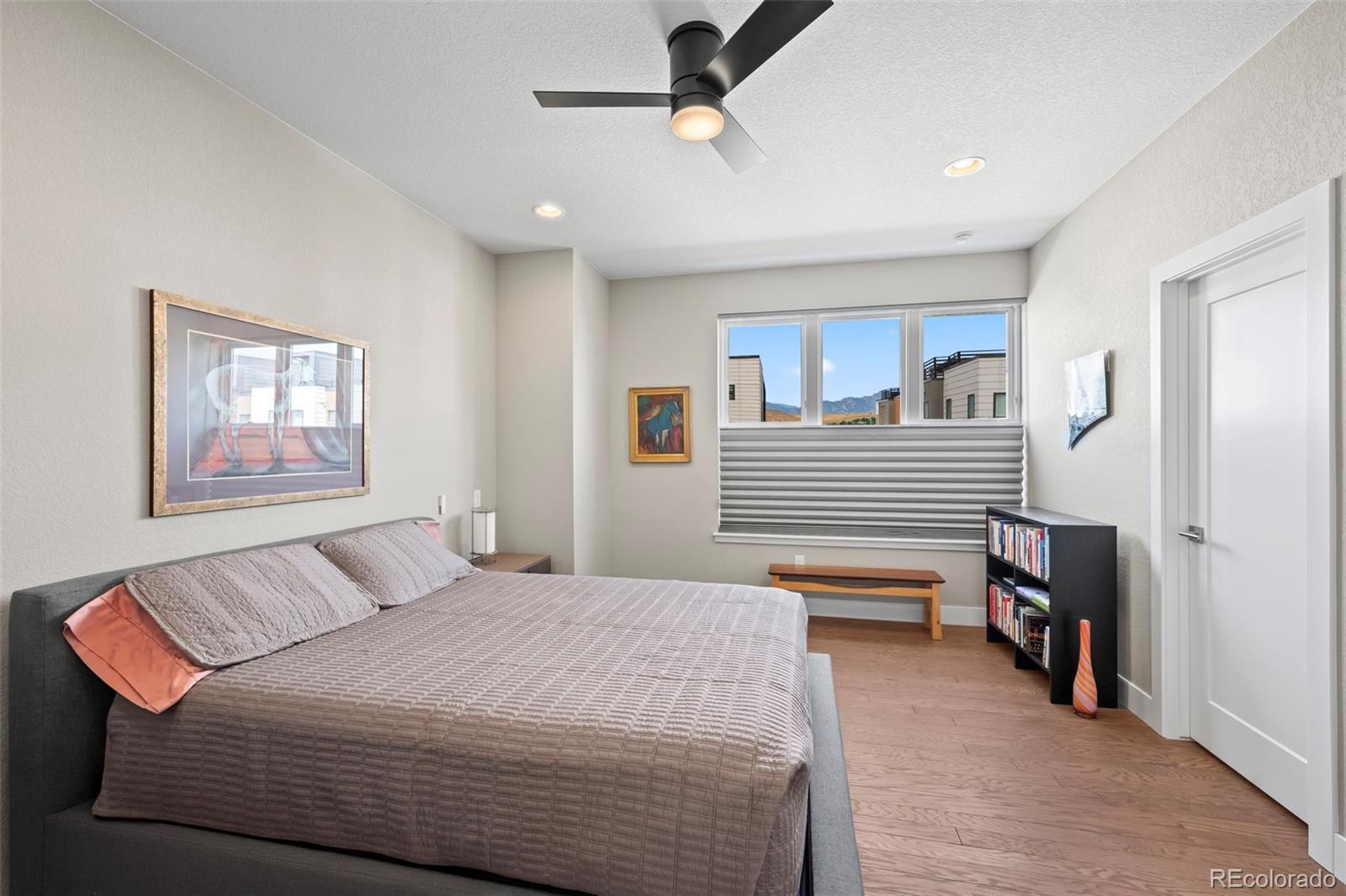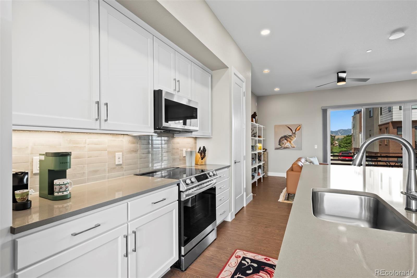 Welcome to 2673 Nicholas Way in Montmere at Autrey Shores, a lakefront community in Superior. Designed for modern living and effortless comfort, this contemporary 3 bedroom, 3.5 bath residence offers nearly 1,850 SQFT of thoughtfully curated space across three levels, highlighted by upscale finishes and stunning Flatiron views showcased thru oversized windows and multiple outdoor living areas. The open-concept main-level featuring soaring 10-foot ceilings and a chef-inspired kitchen that seamlessly connects the living and dining areas. The kitchen is appointed with a large waterfall quartz island, stainless appliances, pantry, and Samsung Bespoke 4-door refrigerator with beverage center. Each bedroom offers the privacy of its own en-suite bath, including the upper-level primary suite complete with a spa-like 5-piece bath and soaking tub, and convenient upper-level laundry with included LG Wash Tower. The first-floor bedroom & bath is ideal for guests, home office, or fitness space. Enjoy exceptional outdoor living with three private spaces: a fully enclosed front patio, a covered West-facing balcony, and a spacious rooftop deck with a gas hookup-ideal for entertaining, or relaxing under the Colorado sky with East/West views. The attached 2-car garage is fully finished with drywall, paint, epoxy flooring, and 220V outlet for EV charging. Additional highlights include upgraded wood flooring and tile thru-out (no carpet), custom-designed closets, designer window and door treatments & modern smart ceiling fans & lighting. Ideally located a short stroll to Autrey Reservoir, scenic trails, parks, open space, the Superior Community Center and Louisville Library Hub, Flatiron Crossing Mall, Lifetime Fitness, shopping, dining, and with easy access to both Boulder and Denver. Truly a place to call HOME!