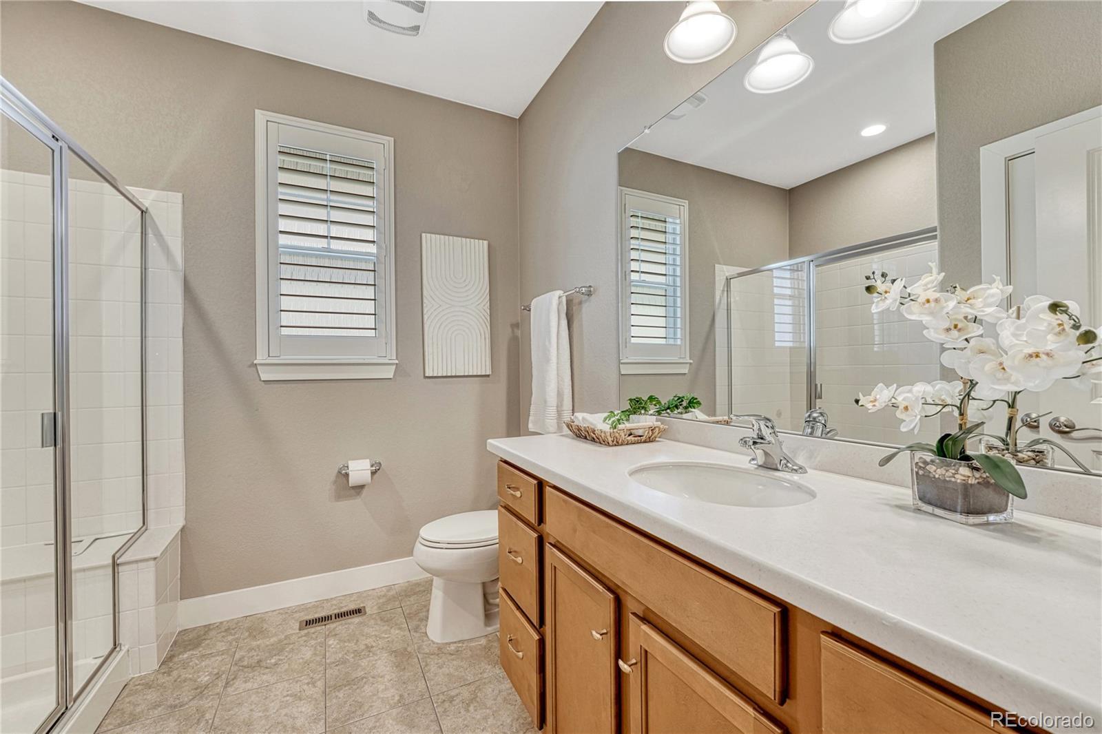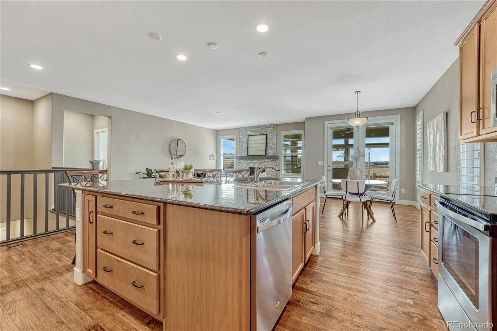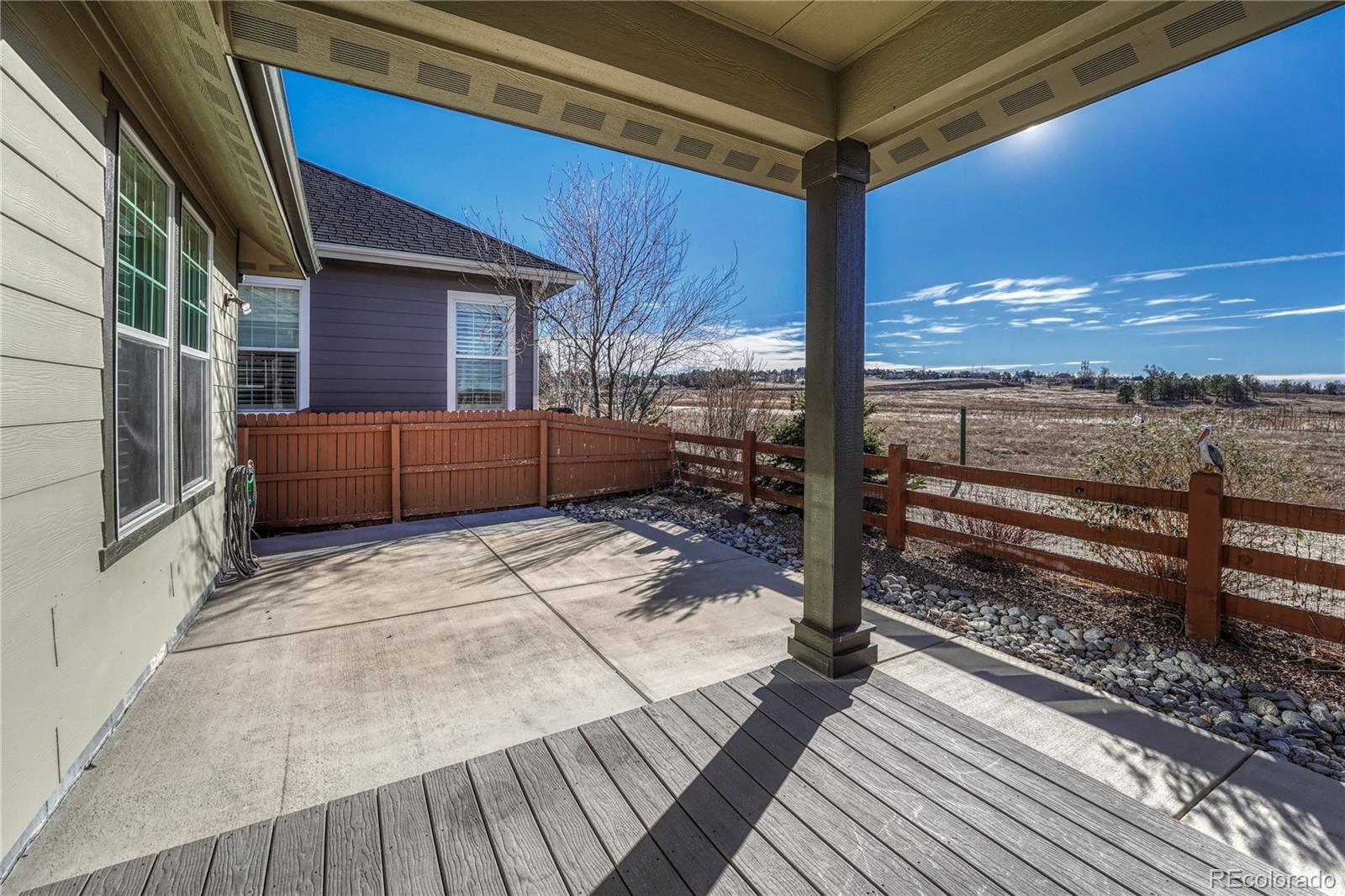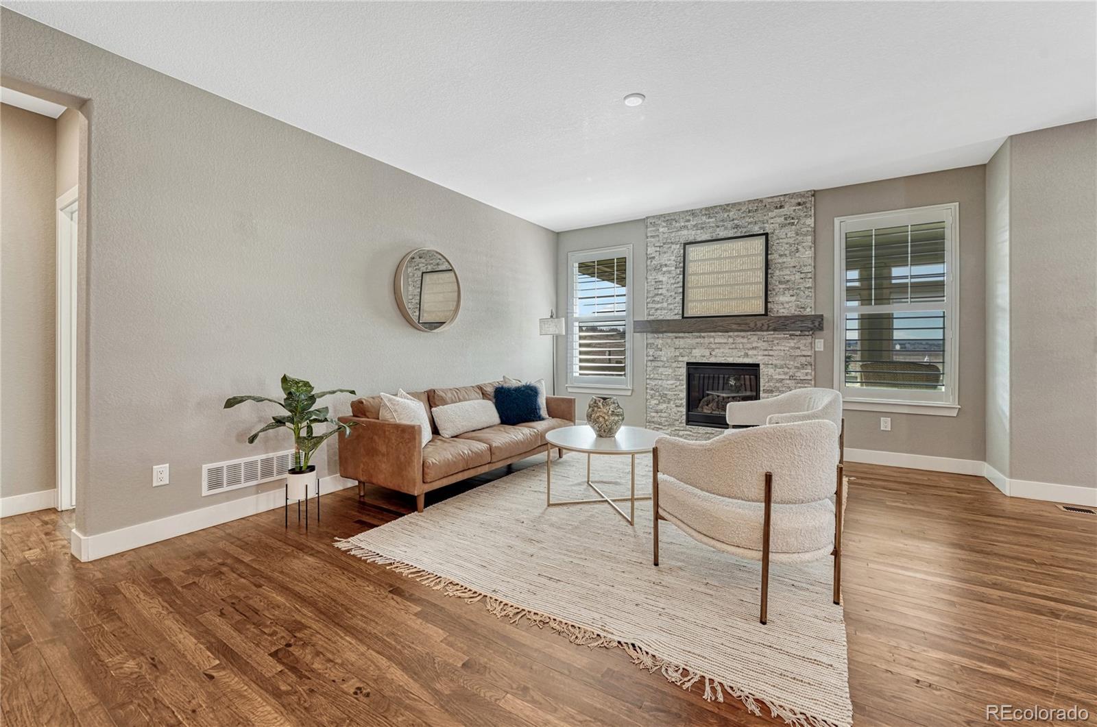 Welcome to your dream home in the highly desirable Pinery West neighborhood. This stunning low-maintenance ranch style home will impress from the moment you enter. Beautiful hardwood floors flow throughout this three-bedroom, three-bathroom home. The eat-in kitchen is the heart of the home with an oversized island, stainless steel appliances and warm granite countertops. The kitchen flows seamlessly into a cozy living room, featuring a gas fireplace and rustic mantle with hardwood floors and plantation shutters. The sun filled private primary suite boasts a large walk-in closet, and a , with dual sinks and walk in shower with upgraded tile throughout the bathroom. Two secondary bedrooms and full bathroom are situated on the opposite end of the home, ensuring maximum privacy. Directly off the living area is an enclosed lanai with lots of windows, electric, and electric shades which makes it perfect for year-round enjoyment. The Backyard was Professionally planned out to maximize your privacy. The home is nestled in Pinery West, a small, gated neighborhood. Very little maintenance is required, with the HOA that mows the front lawn, and removes snow from the driveway and sidewalks. A bike-golf path connects the neighborhood underneath Parker Road to the Pinery Country Club and all of the amenities it has to offer. 27 holes of golf, tennis, pools, restaurant and social events are minutes from the home. Access to Cherry Creekâs extensive walking-bike path is right outside your door, this location epitomizes Colorado living at its best. The neighborhood boasts a community park, dog park, and a gazebo for gatherings.