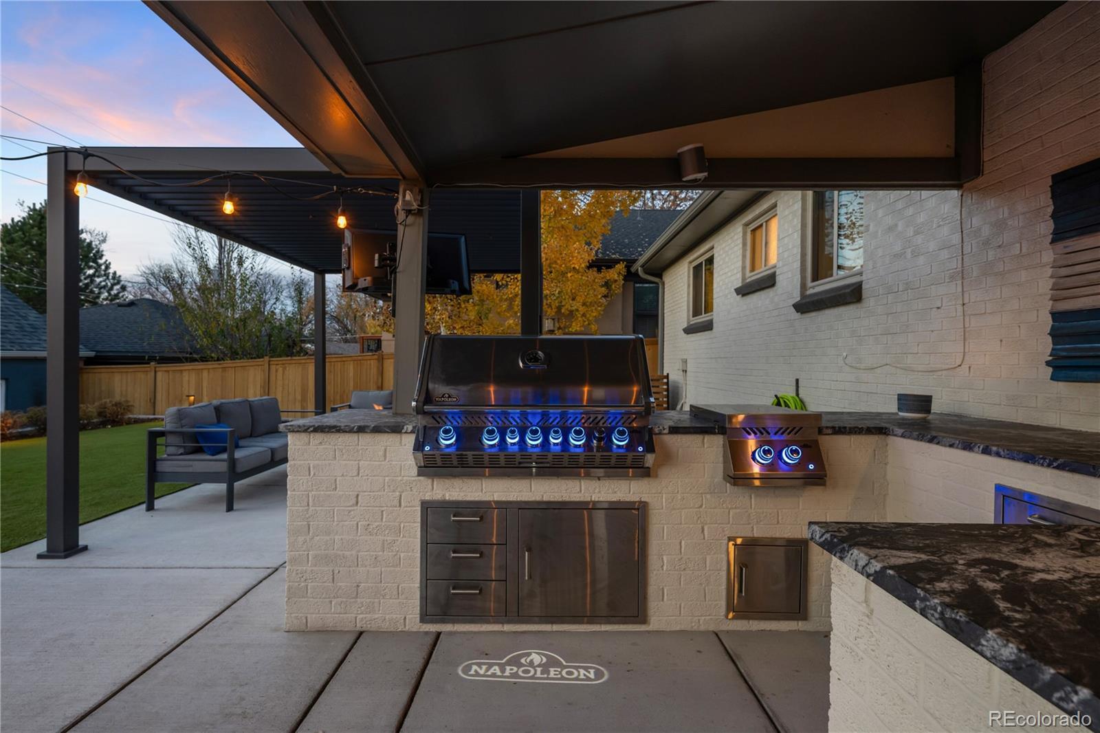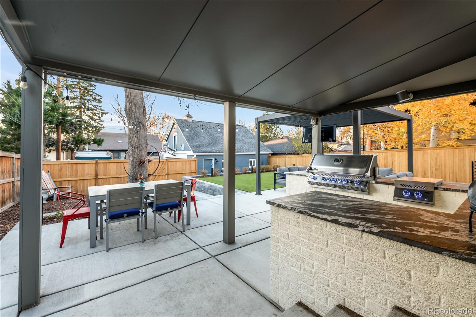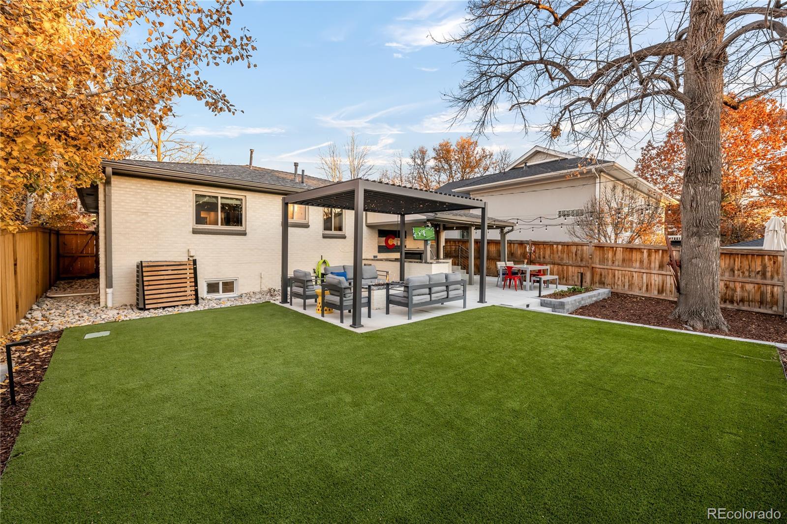 Gorgeous 1331 South Gaylord Street and you will immediately feel at home. This 4 bed, 3 bath property offers 2 living spaces and a home office. Located on a double lot in East Wash Park, this beautifully remodeled property is just what you’re looking for! The main level is bright and airy, allowing great natural light from picture window overlooking the grassy front yard. Unique tray ceiling and crown molding. Living room connects to the dining area home to future family dinners and holiday feasts. The white kitchen is a chef’s dream with quartz counters, plenty of cabinets, and stainless steel appliances including a gas range. A spacious office with French doors. The primary bedroom is down the hall with walk-in closet and ensuite bathroom with oversized shower. A secondary bedroom is opposite with full bathroom off the hallway. The lower level was recently renovated and includes a second living space with beverage center, two more bedrooms with egress windows, shared 3/4 bath. Plenty of storage in a dedicated room that spans the length of the home. The laundry room/pantry has additional space. Washer/dryer included. Newly upgraded backyard is a dream. Watch the sunset beneath the pergola next to the gas firepit, custom outdoor kitchen beneath the covered patio. The artificial turf keeps water costs low, maintenance a breeze, and the grass is always green(er). The oversized two car garage has tons of storage and an attic. A driveway provides additional off-street parking, or a great place to shoot hoops. Living in Wash Park is more than a location, it is a lifestyle. Take a short walk to locally owned shops and restaurants on Historic Old South Gaylord Street including Perdida, Tap and Dough or seasonal festivals. Wash Park is just a few blocks away – home to 165 acres of recreation with trails, tennis courts, lawn bowling/croquet field, playgrounds, summer volleyball, and a recreation center. Easy access to I-25 and the University of Denver Light Rail Station.