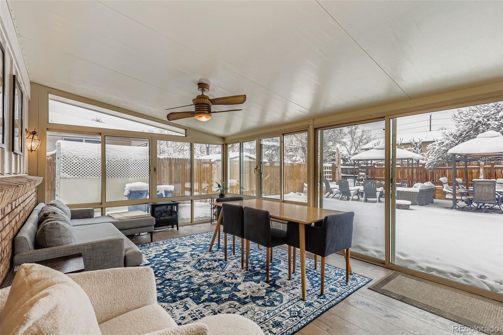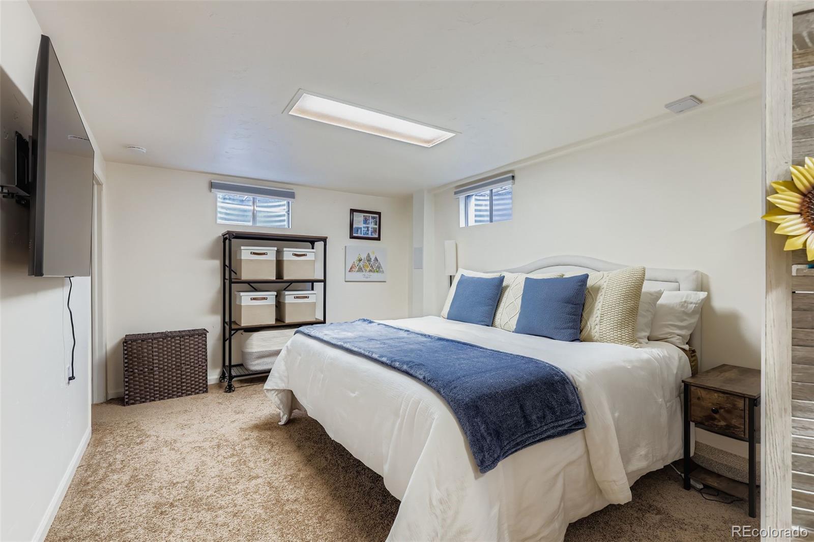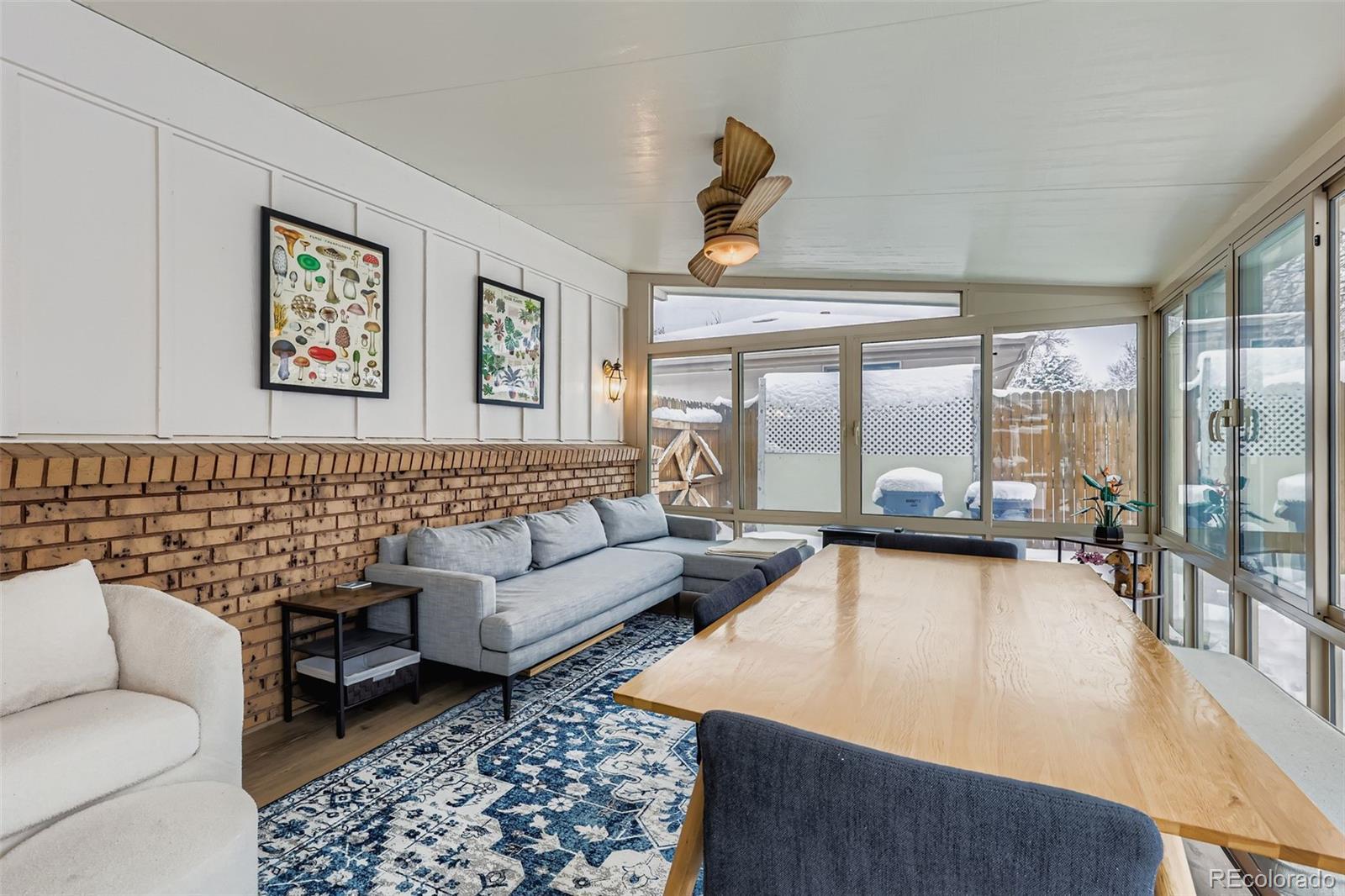Welcome to this beautifully updated 4-bed, 2-bath Lakewood ranch with a spacious and functional layout. The main level offers three bedrooms, a refreshed full bathroom, and an inviting living area that opens to a kitchen with stainless steel appliances. A fully enclosed sunroom adds valuable extra living and entertaining space year-round. The finished basement includes a fourth bedroom, an additional bathroom, and a versatile second living area perfect for guests or a home office. Outside, enjoy a large backyard with plenty of room to play, garden, or entertain. A 2-car garage provides added convenience and extended driveway space provide additional room for all your toys and vehicles. Ready for a stroll? Trail access is literally around the corner connecting to miles of trails along Sanderson Creek. It is less than a 5 minute bike ride to choice restaurants and only 2 miles to Belmar shopping. A well-kept home in a great location—move-in ready and easy to love.