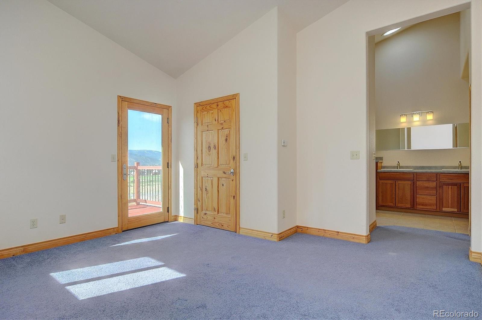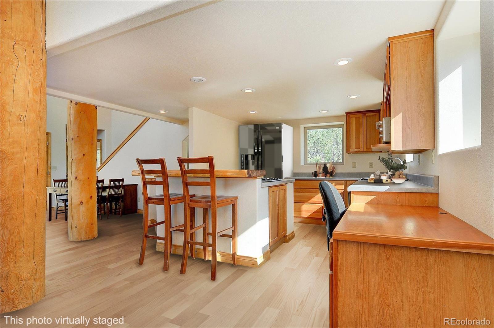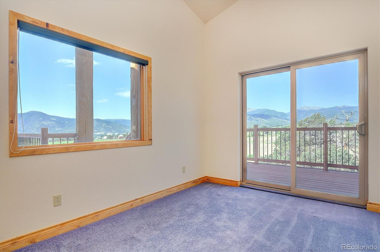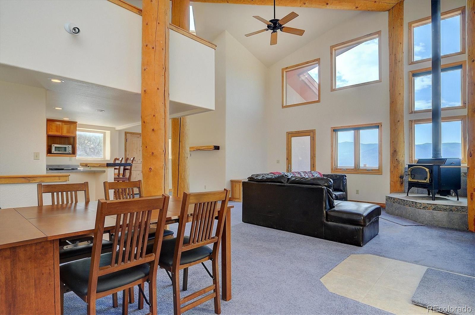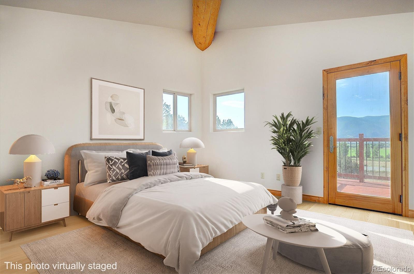 Looking for a home that blends architectural character, abundant natural light, and breathtaking views - all just outside of town? This unique property may be exactly what you've been waiting for. Crafted with distinctive design elements, including striking log accents, vaulted ceilings, and expansive windows, this home invites you in with warmth and style. The open-concept floor plan includes a bright and functional kitchen that will delight any home chef, featuring a Jenn-Air cooktop, built-in wall oven, bar seating, and even a convenient desk area. Upstairs, a spacious loft with its own half bath offers a perfect retreat for a home office, workout space, or creative studio. Both bedrooms boast en suite bathrooms, including a luxurious primary suite with a jetted soaking tub and a stunning walk-in glass shower. Step outside onto more than 700 square feet of wraparound decking, ideal for relaxing or entertaining, while soaking in panoramic views. As an added bonus, the property borders more than 5 acres of HOA-protected open space, including an irrigation ditch, ensuring unobstructed views and permanent privacy - this land cannot be developed. Additional highlights include: in-floor radiant heat throughout, plus a wood-burning stove for cozy ambiance. Oversized two-stall attached garage with plenty of room for recreational gear. A thoughtfully extended driveway that wraps around the back of the home to an added rear entrance for single-level access and easier grocery unloading. On-demand water heaters, natural gas, and a mechanical room conveniently located off the garage. The well permits irrigation for up to 1,400 square feet of lawn or garden — ideal for adding landscaping or keep it naturally low-maintenance. Don't miss your chance to experience this one-of-a-kind home with peace, privacy, and amazing scenery all just a short drive from town. Click through the 3D Tour to explore the layout, then call to schedule your private showing!