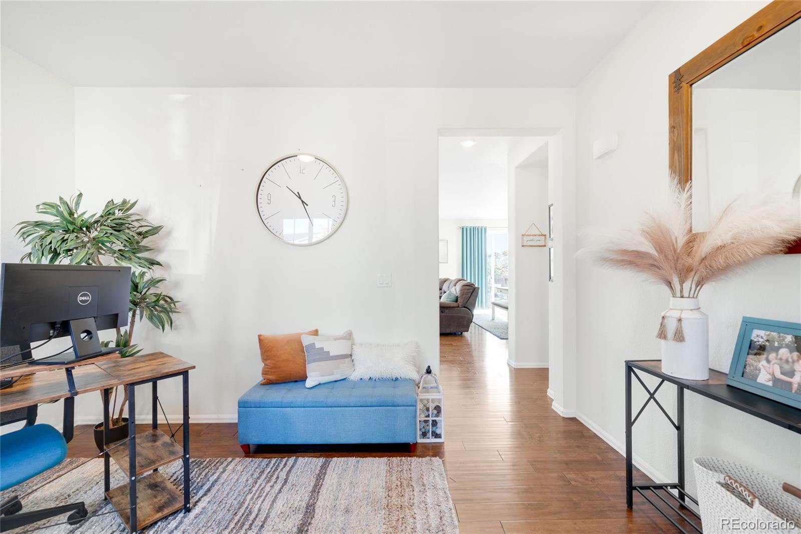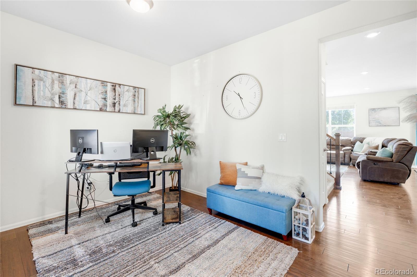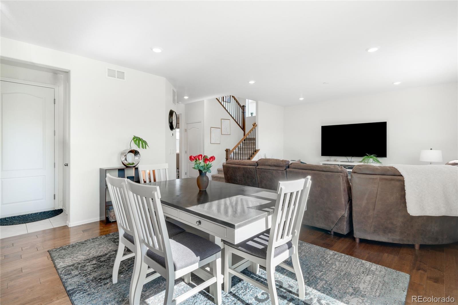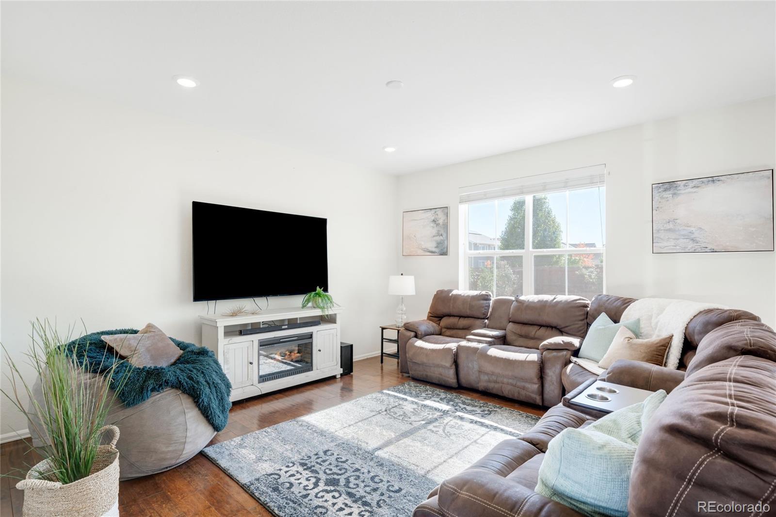 Impeccably maintained and move-in ready, this STUNNING Orchard Farms residence blends modern details with classic design in one of Thornton’s most coveted neighborhoods. Gleaming hardwood floors extend throughout the main level creating a cohesive and seamless open floor plan which connects the bright living area to a gourmet kitchen adorned with sleek granite countertops, subway tile backsplash, stainless steel appliances, a large island and a walk-in pantry. Three bedrooms await upstairs, including the spacious primary suite featuring a serene master bathroom w/ a walk-in shower as well as a substantial walk in closet. The oversized laundry room is a blank canvas and ready for you to create an organized dream space that is already complete w/ a washer and dryer set for added convenience. Outdoors, the huge EXTENDED patio and meticulously manicured backyard space will greet you and your guests with open arms and invite you to relax and enjoy the Colorado sunshine. Ample storage is found in a two-car attached garage and additional highlights include solar energy, QUICK AND CONVENIENT ACCESS to I-25, all shopping amenities, restaurants, E-470, and the beautiful nearby parks with basketball and tennis courts — The PERFECT blend of style, sustainability, and location.