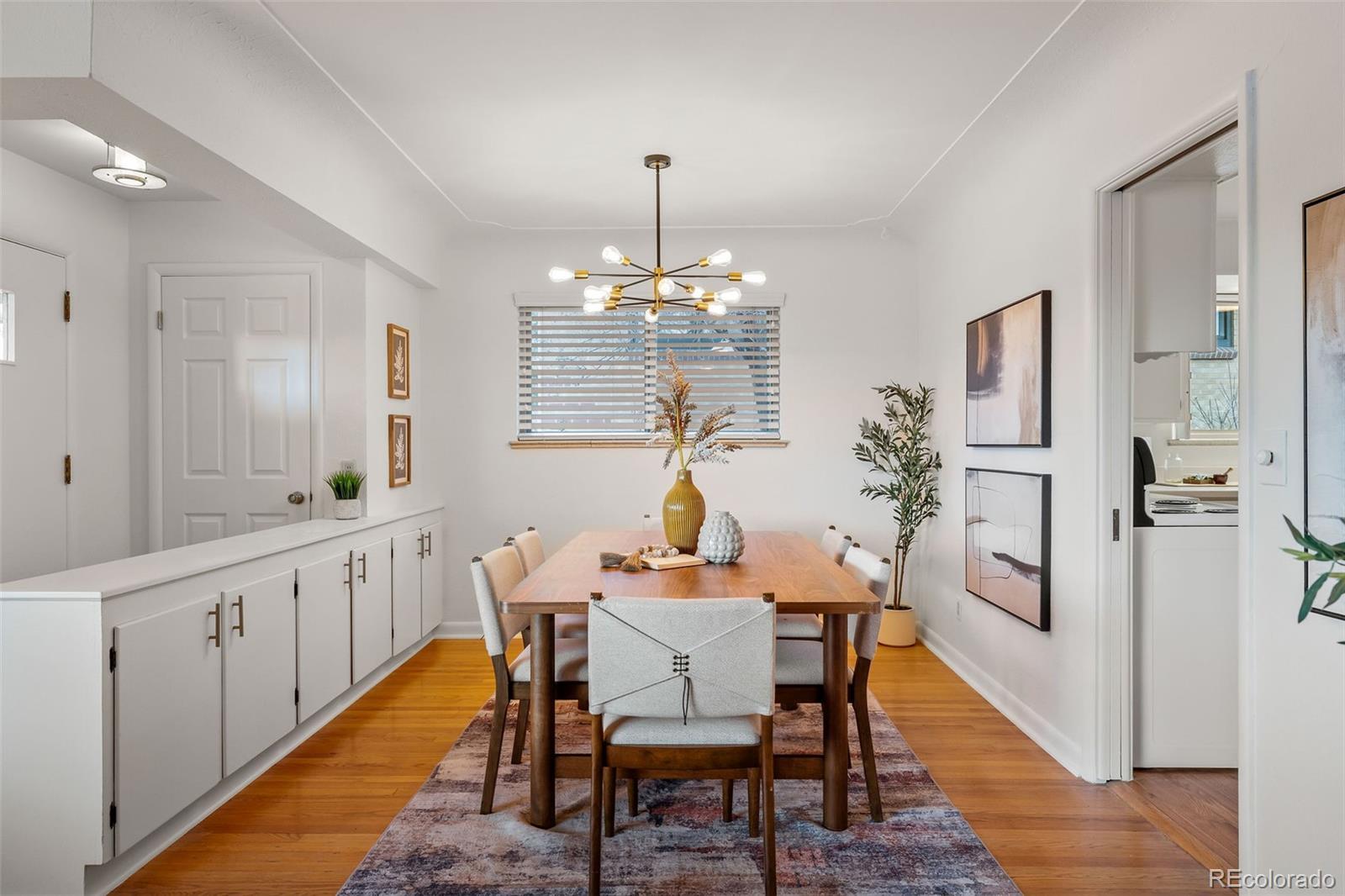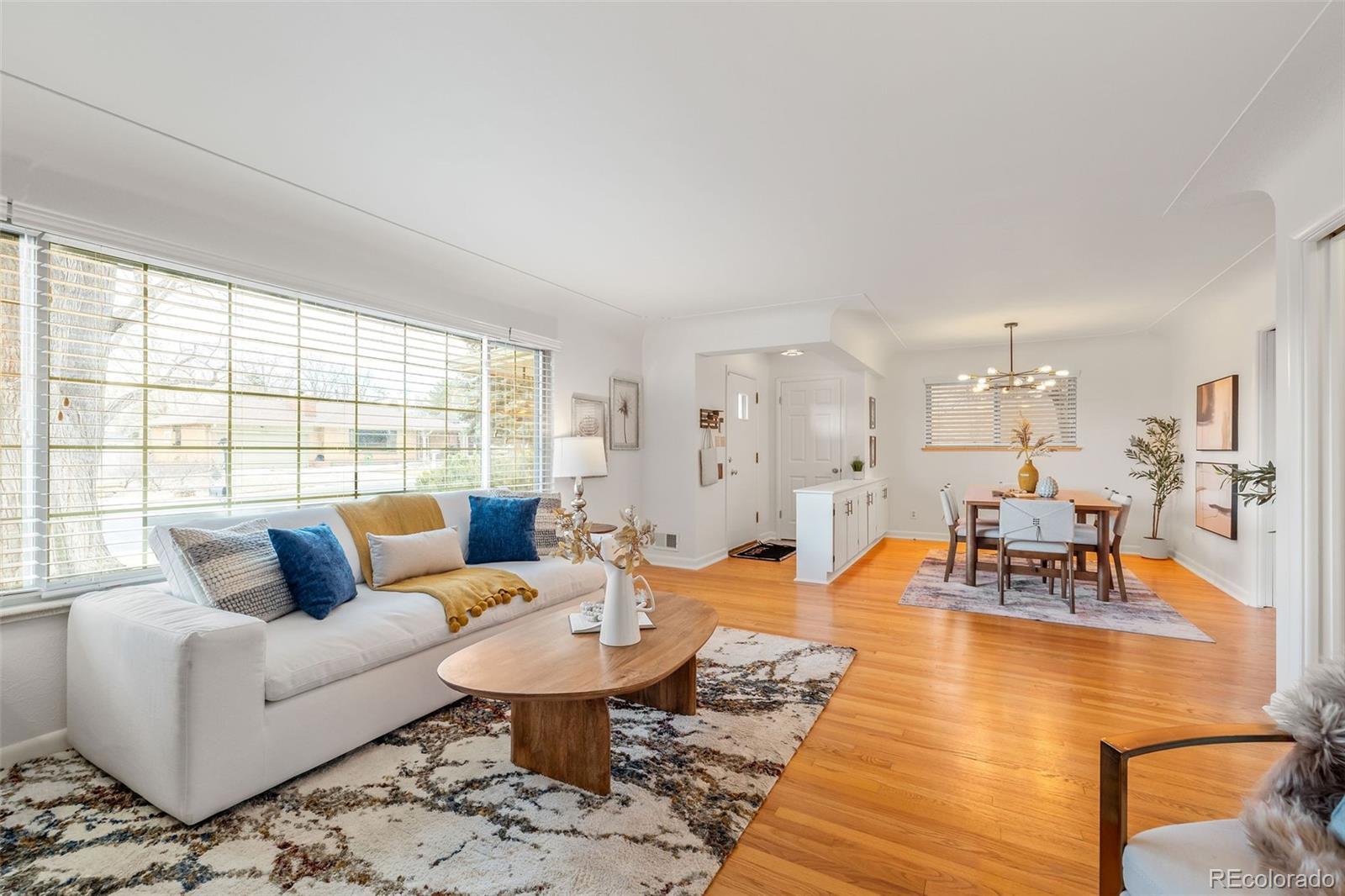 This Lakewood home speaks directly to buyers who appreciate mid-century modern design - clean lines, generous light, thoughtful separation of spaces - and want the freedom to make it their own. With 3 bedrooms, 2 bathrooms, and approximately 1,800 square feet, the home offers a comfortable single-level layout with no stairs, making everyday living easy and intuitive. Hardwood flooring runs through most of the home (outside of the sun room/porch), adding warmth and authenticity that mid-century lovers value. The layout reflects the era’s emphasis on livability: a true living room, formal dining room, eat-in kitchen, sun room, and a flexible bonus or rec space that adapts effortlessly to modern life. The primary bedroom features a walk-in closet and a private bathroom, creating a quiet retreat separate from the secondary bedrooms. Designed for comfort and ease, this home offers true single-level living with no interior stairs, a practical and increasingly sought-after feature. The home has been freshly repainted throughout, including cabinetry, with updated hardware and select lighting, giving it a clean, cohesive feel while preserving its original character. It’s not a flip. It’s not pretending to be something it’s not. It’s intentionally untouched in all the right ways -ready for a mid-mod lover to bring their vision to life. Set on an oversized lot just under 10,000 square feet, the backyard is surprisingly private with mature landscaping and room to entertain, garden, relax, or reimagine outdoor living entirely. A two-car garage adds everyday practicality - a rare bonus for homes of this era. Located in a desirable Lakewood neighborhood with easy access to downtown Denver, the foothills, Red Rocks, and just minutes from Crown Hill Park, this home offers the kind of lifestyle flexibility that’s increasingly hard to find. The setting combines quiet residential living with proximity to trails, open space, and quick city access - a true sweet spot.