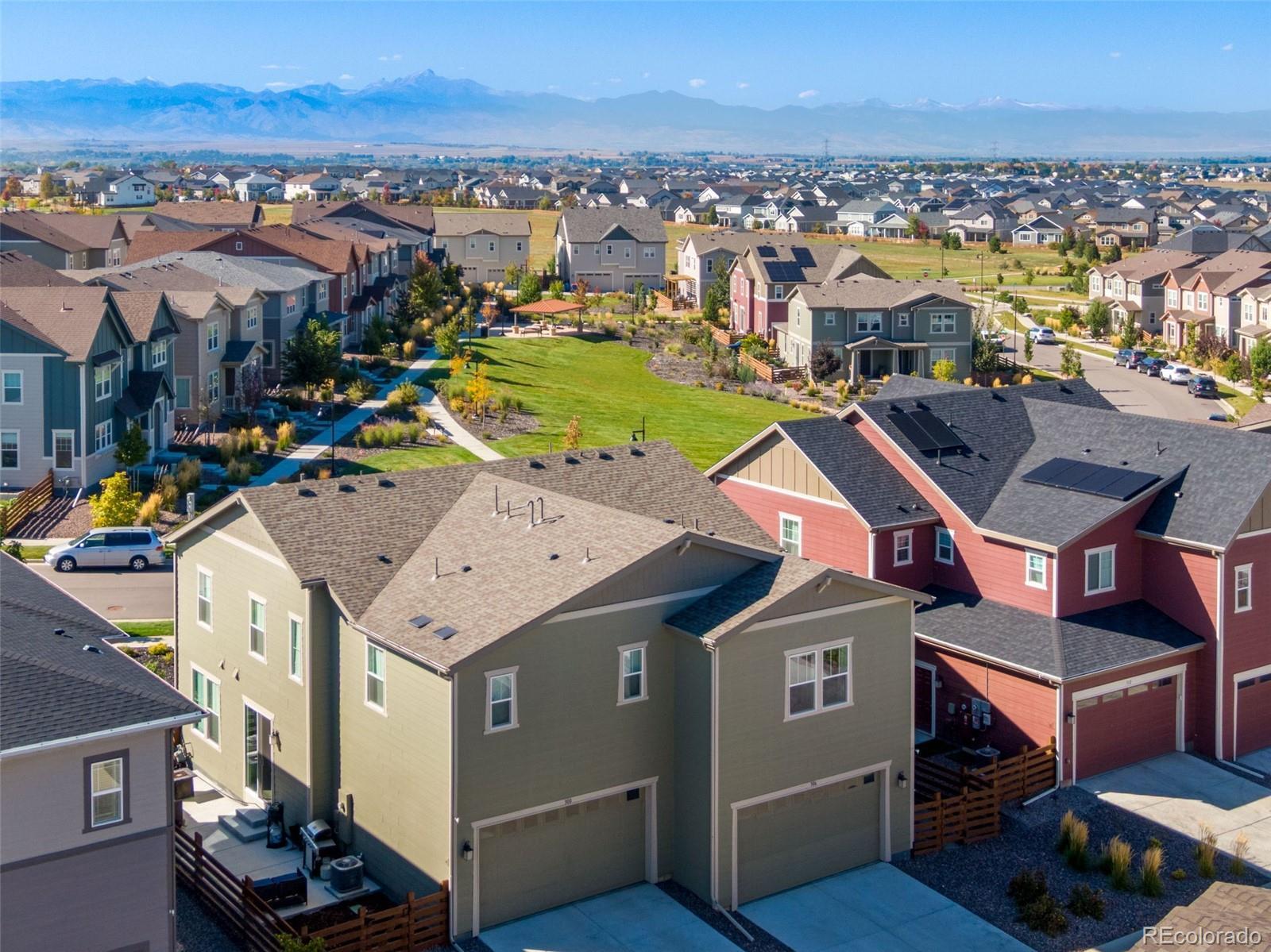 Stunning 4-bed, 4-bath duplex in desirable Colliers Hill in Erie offers the perfect blend of modern upgrades, comfort, and unbeatable location! You might mistake this home for one of the models as you walk into the beautifully designed, open main level! A great feature of this home is the luxurious kitchen that includes a large peninsula with granite countertops, soft close cabinets and upgrades to the stainless-steel Whirlpool appliances and lighting. Upgraded luxury vinyl plank flooring adds warmth and durability, while the convenient up/down blinds provide both style and privacy. You will enjoy sitting in your living room next to your gas fireplace and looking out over the quiet park just across the street. The upper level includes two spacious secondary bedrooms, a full bathroom, loft and a gorgeous primary suite with breathtaking mountain views, a large walk-in closet, and a luxurious 5-piece bath. The home’s fully finished basement provides a great additional entertaining space, along with a nicely-sized bedroom and bathroom—ideal for guests. The luxury continues outside with the beautiful stamped concrete patio and the low maintenance of the fully xeriscape yard. Across the street from the peaceful park, the home’s positioning captures great views and extra charm. The 2-car alley-loaded garage offers convenient access and curb appeal. Colliers Hill residents enjoy an exceptional lifestyle with two community pools, a large clubhouse, and miles of scenic trails, including a new trail that will connect directly to Old Town Erie. Located near Erie High School and Soaring Heights, this home is also just minutes from the future SVVSD elementary school and a planned town park. Plus, a new nearby shopping center with dining options has already broken ground and is only about half a mile away. With all of Erie’s exciting new amenities and developments on the horizon, this home is an incredible buy in one of the area’s most sought-after neighborhoods!