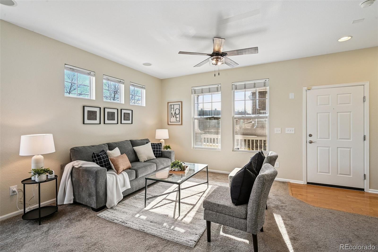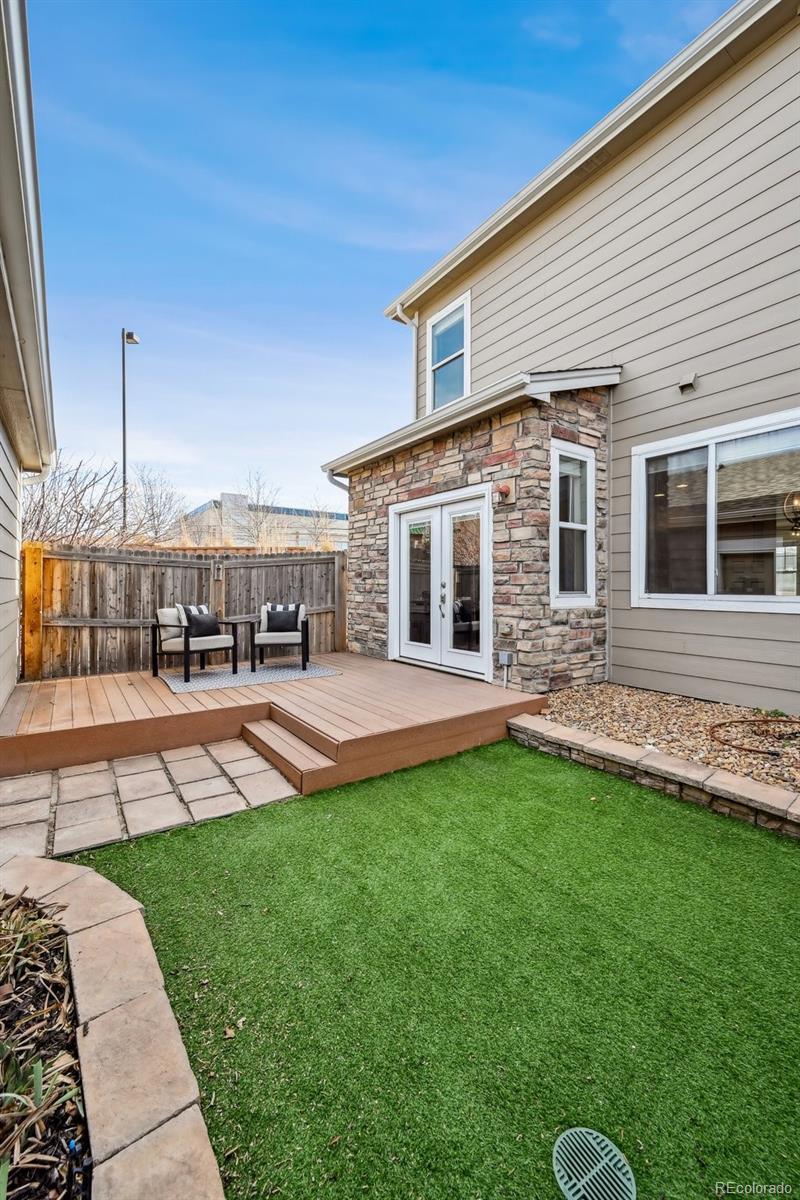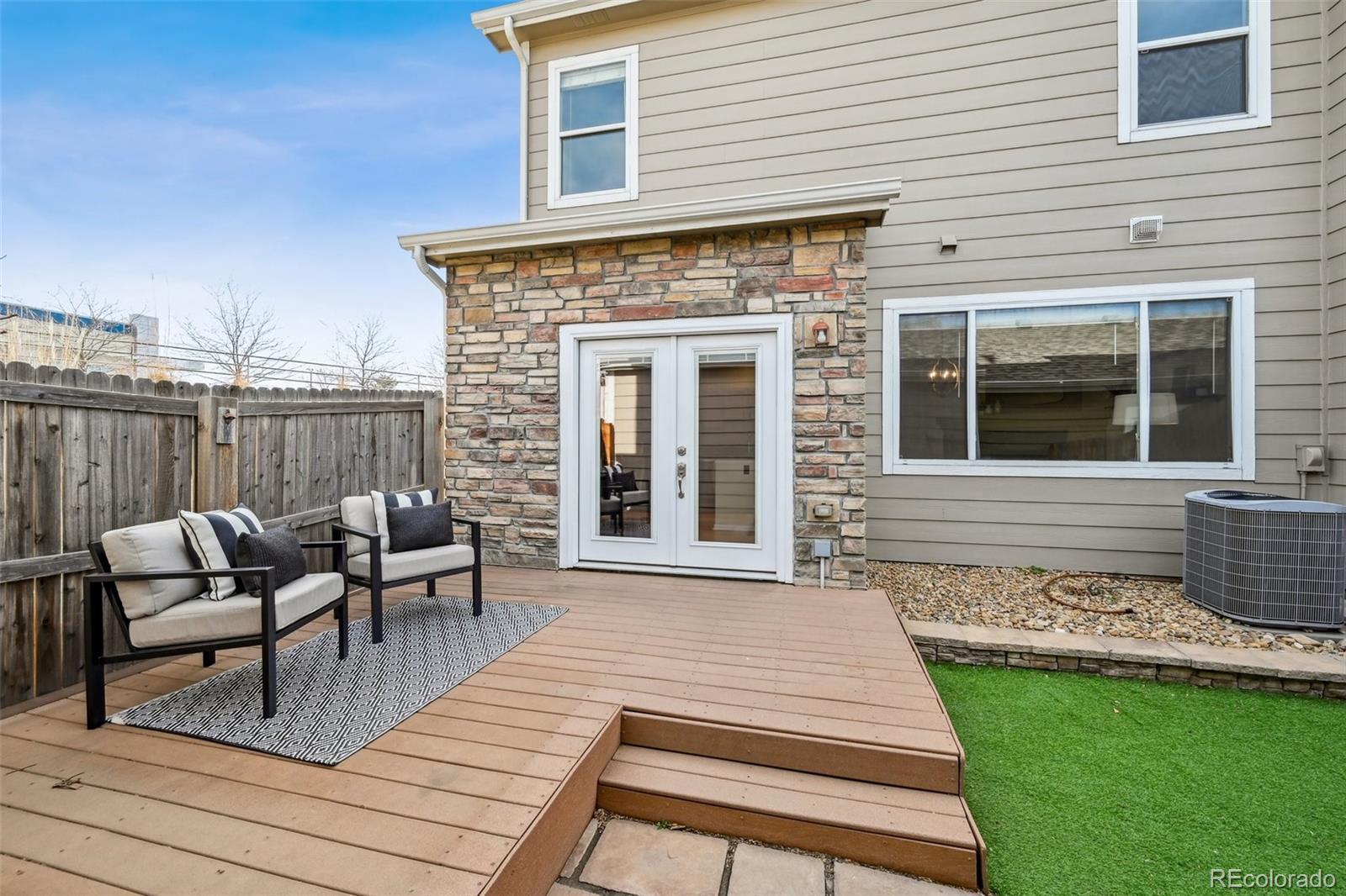 Welcome to this beautifully updated 3-bedroom, 2.5-bathroom end-unit townhome in the heart of Thornton, Colorado. A charming front porch welcomes you through the front door into a sprawling main-floor living and dining area, perfect for entertaining. Just beyond, a second living space with gas fireplace flows seamlessly into the open-concept kitchen, featuring a large island, stainless steel appliances, and a sunny breakfast nook. A convenient and updated half bath completes the main level. Upstairs, retreat to the expansive primary suite with a 5-piece ensuite bathroom, complete with dual vanity, soaking tub, generous walk-in closet and a linen closet. Two additional bedrooms share a fully renovated secondary bathroom. Through upgraded French doors off the kitchen, enjoy your private backyard featuring low-maintenance artificial turf and a composite deck. The oversized detached two-car garage provides exceptional storage and parking. Additional highlights include brand-new interior paint throughout the entire property, hardwood floors, and thoughtful updates with light fixtures and ceiling fans. Located just around the corner from King Soopers and restaurants, easy access to I-25, DIA and less than 10 minutes to The Orchard Town Center and Denver Premium Outlets. With a neighborhood park and Adams 12 Five Star School District schools within walking distance, this is Thornton living at its best!