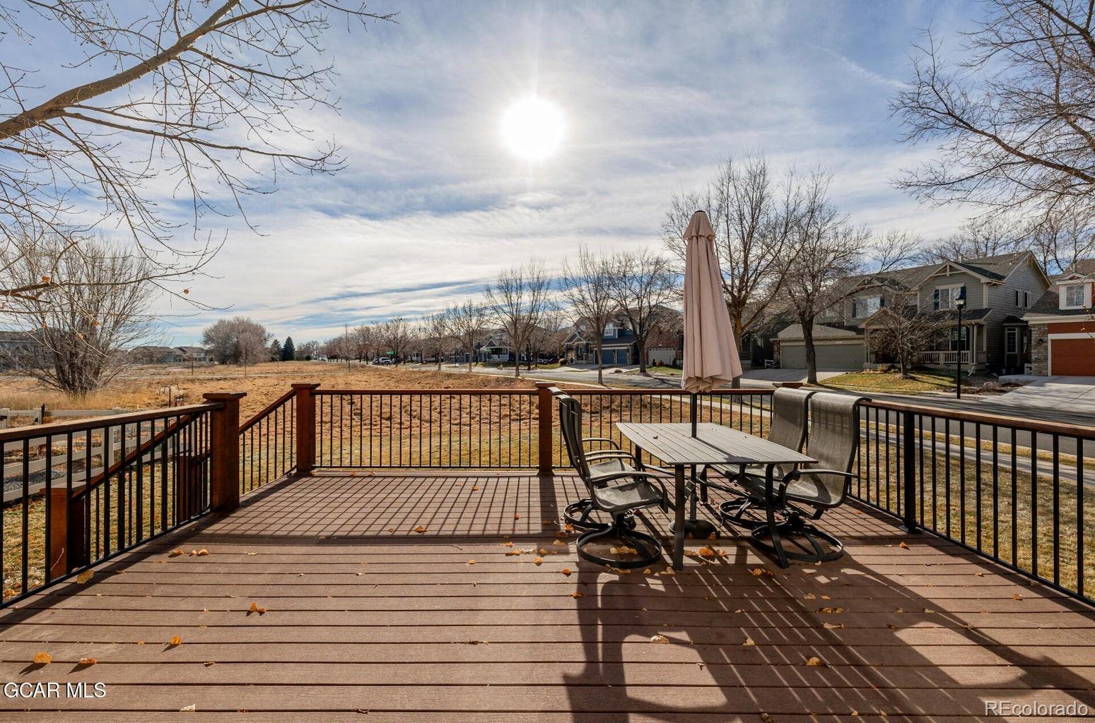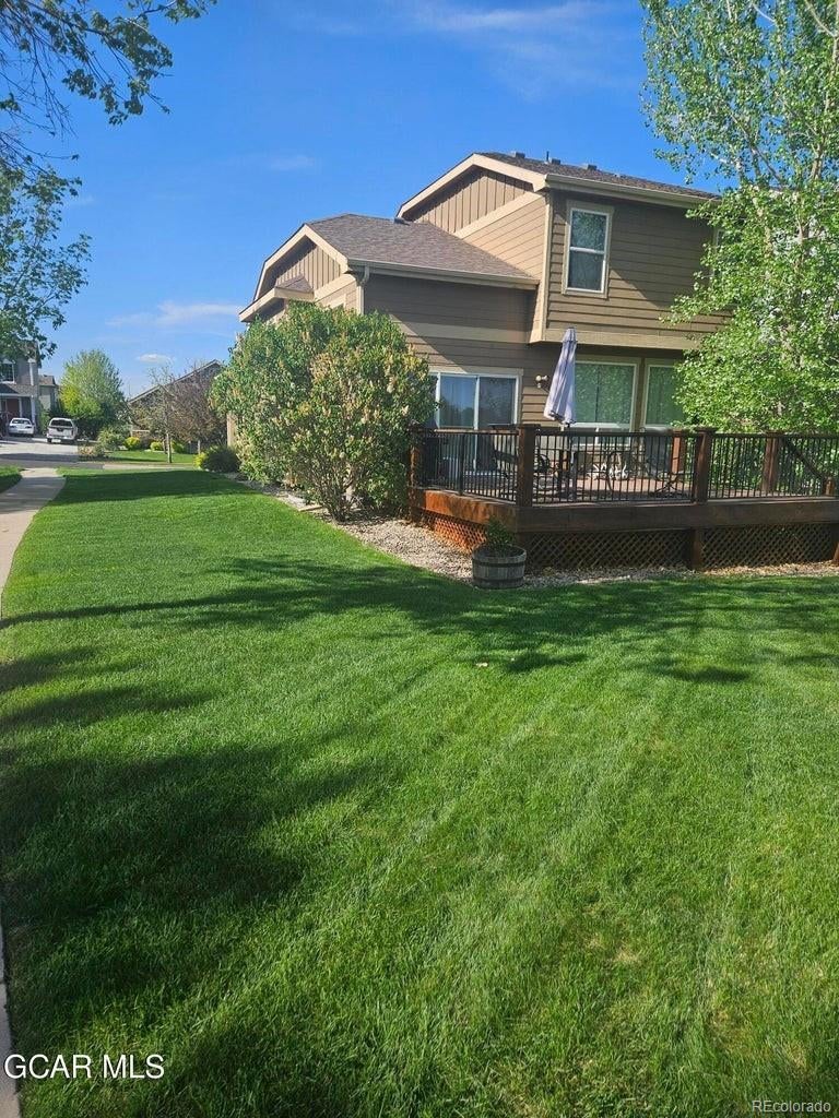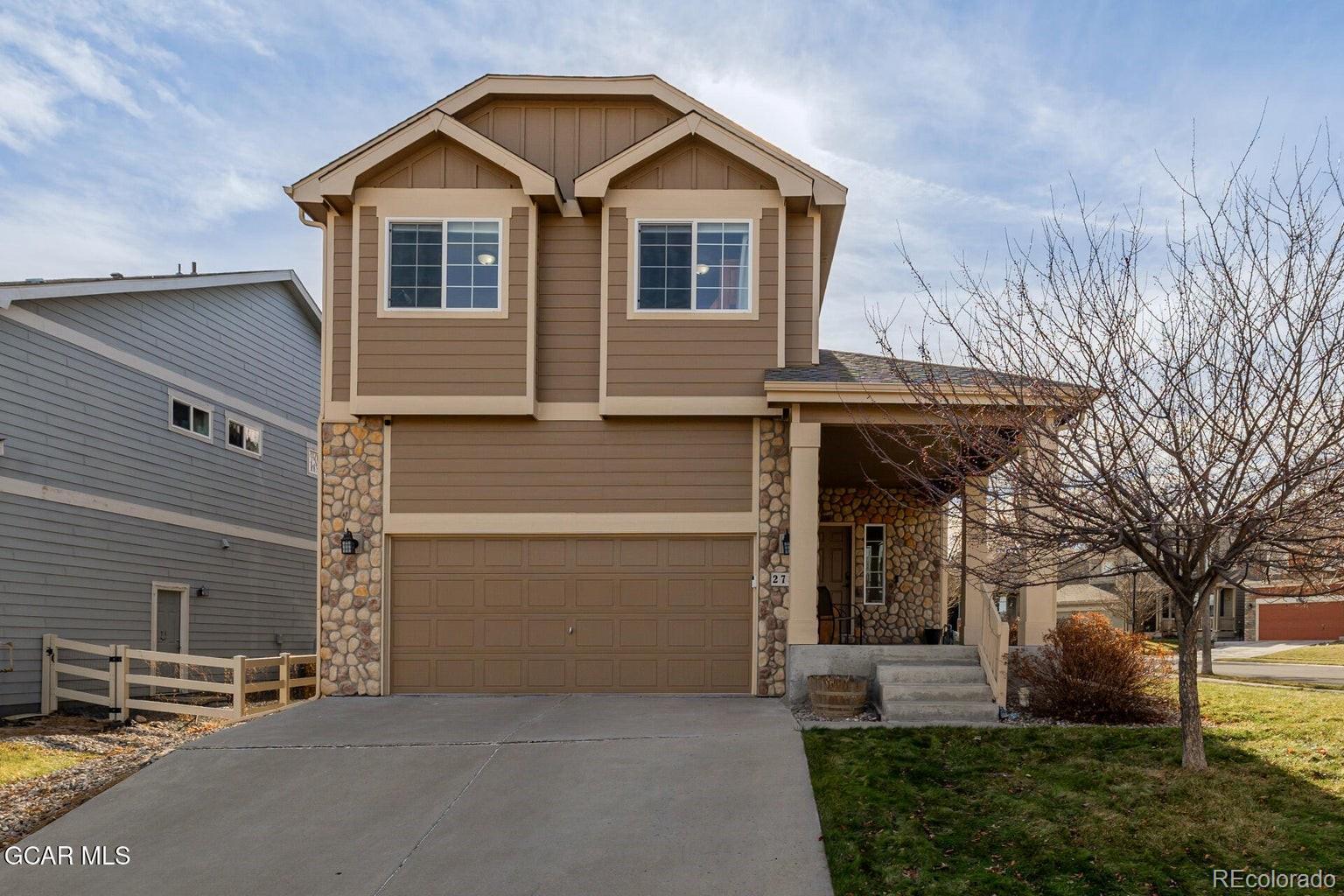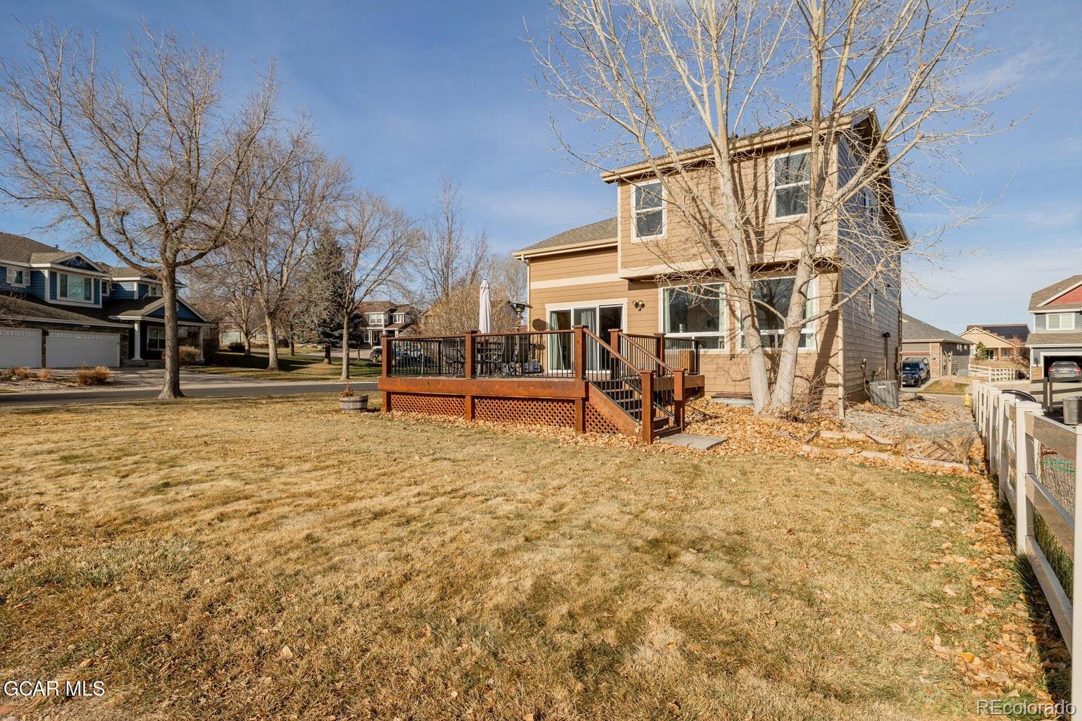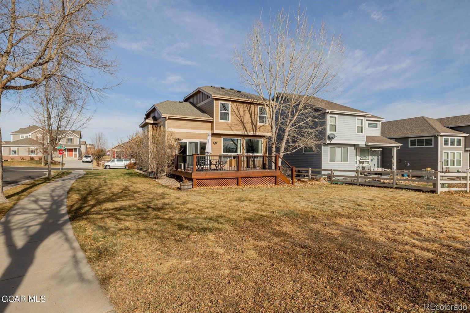 The search is finally over! This beautiful 3-bedroom home nestled on a corner lot is the one! The facade offers a 2-car garage, stone accents, and a welcoming front porch. The large great room has sliding glass doors that seamlessly blend the indoor experience with the outdoors. Wood flooring, granite countertops, vaulted ceilings, abundant natural light, and neutral tone are worth mentioning. The kitchen comes with recessed lighting, tile backsplash, ample cabinet space, new stainless-steel appliances, granite counters, and a prep island with a breakfast bar. Home has new roof, new paint, gorgeous landscaping and unfinished basement. Impeccable primary bedroom offers plush carpet, an ensuite with dual sinks, and a walk-in closet. Tranquility awaits in the large backyard that backs to open space. You will love the location and is adjacent to nearby walking and hiking trails. Easy access to schools, nearby shopping and is close to I-25. This convenient location is nearby a handful of parks and 10 minute drive to mountains.