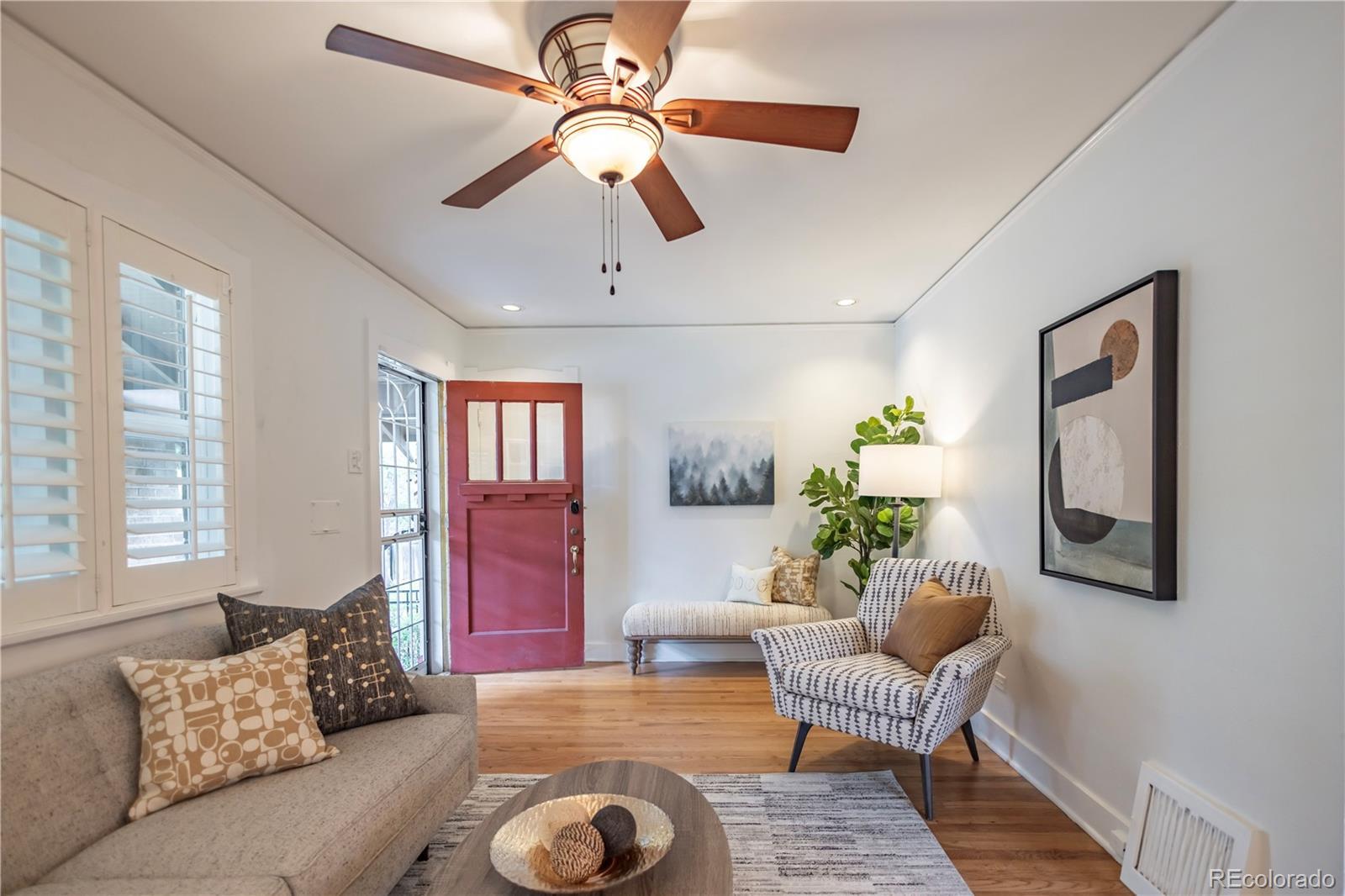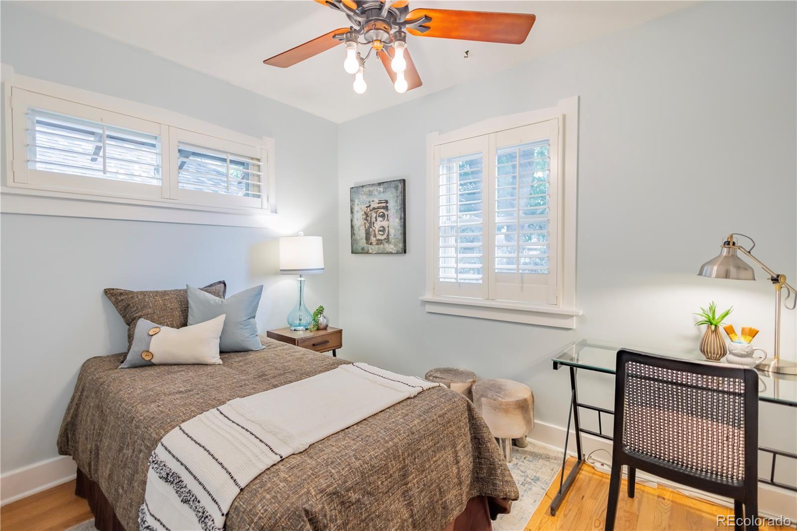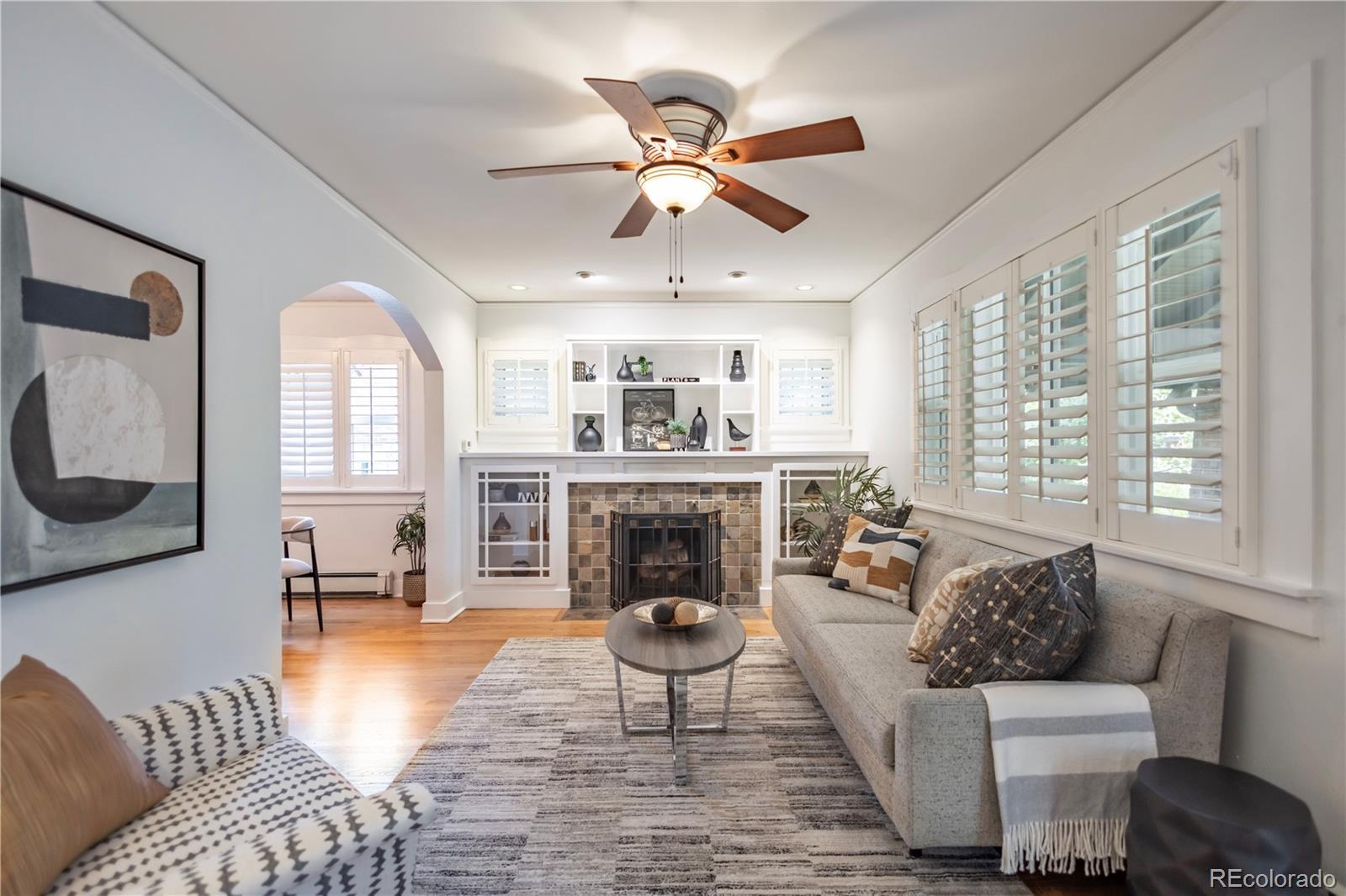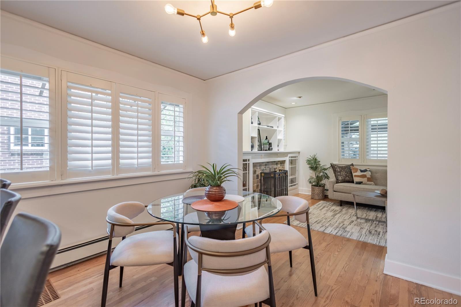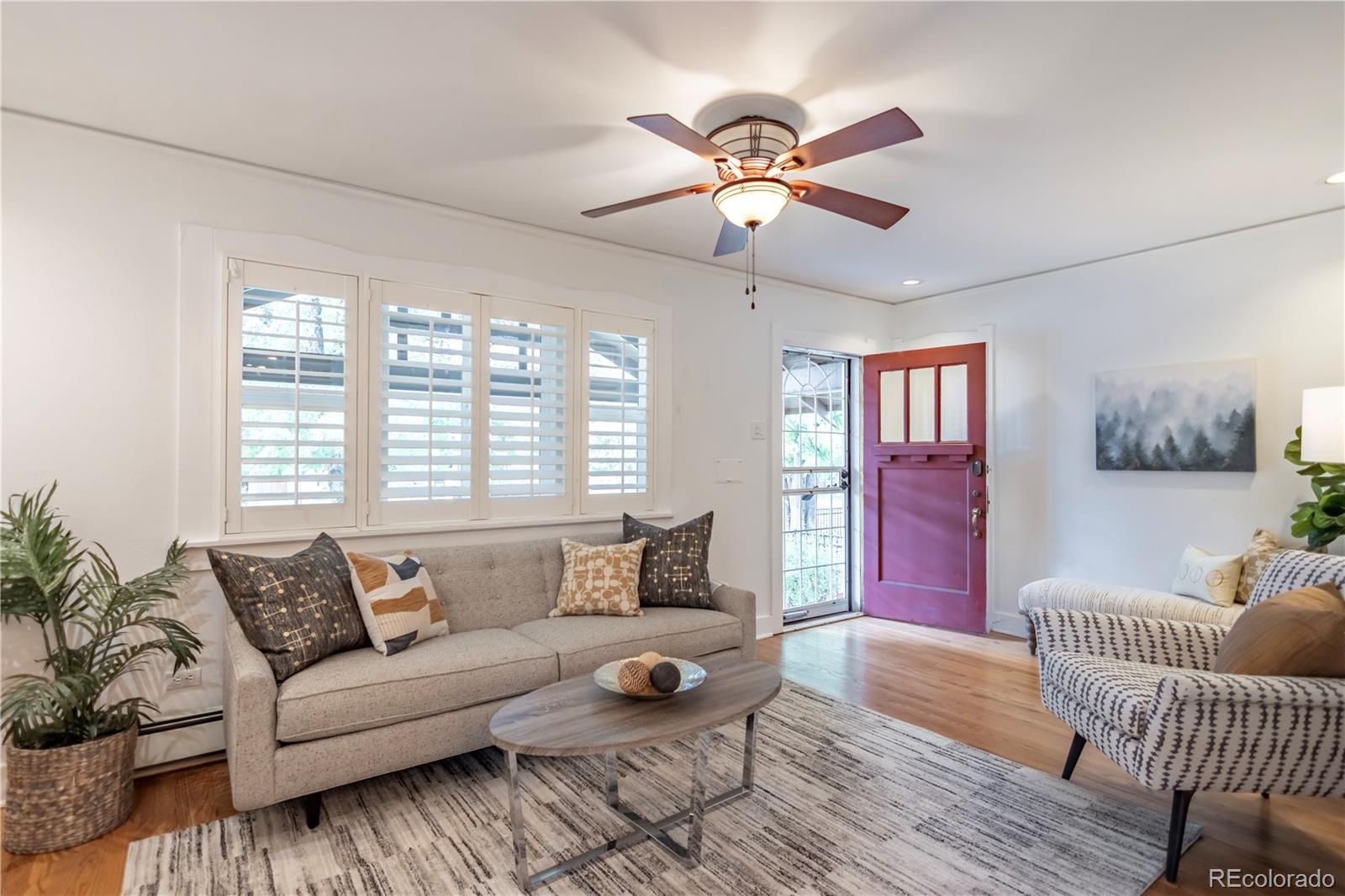Welcome to this charming bungalow in the heart of Platt Park — where classic character meets modern comfort. From the moment you arrive, the expansive front porch invites you to relax and take in the neighborhood charm. Step inside to an open-concept living space where natural light flows through gleaming windows highlighting the hardwood floors, crown molding, classic plantation shutters, custom fireplace cabinetry, and an arched doorway. Every detail has been thoughtfully preserved and updated to create a home that feels both timeless and fresh. The kitchen is a true gathering place featuring stainless steel appliances, gas range, honed granite countertops, breakfast bar seating, a wine fridge, and a coffee nook. Whether you're cooking for two or entertaining a crowd, there's ample counter space for all your needs. The main level offers a spacious living room with a fireplace flanked by built-in shelving, a formal dining room, two bedrooms, and a newly refreshed bathroom with a walk-in shower. Downstairs, the finished basement expands your living space with a large family room showcasing exposed brick walls and wainscoting ideal for movie nights and a home office. You'll also find a lovely bedroom with an egress window, the second bathroom, laundry room and spacious utility / storage room. New upgrades (Sept 2025) include interior paint, 7 new windows, a refinished back patio, updated beadboard in the main floor bath, refreshed landscaping and refinished hardwood floors (2023). Enjoy the convenience of a Tesla electric car charger in the 2-car detached garage. Step out back to your own private oasis. A fully fenced, east-facing backyard with a patio and mature trees, perfect for relaxing or entertaining. Blocks away from the lively shops and restaurants of Old South Pearl Street and seasonal Farmer’s Market — this location combines charm, community, and convenience. With easy access to I-25, Santa Fe Blvd, and the University of Denver, getting around is a breeze.