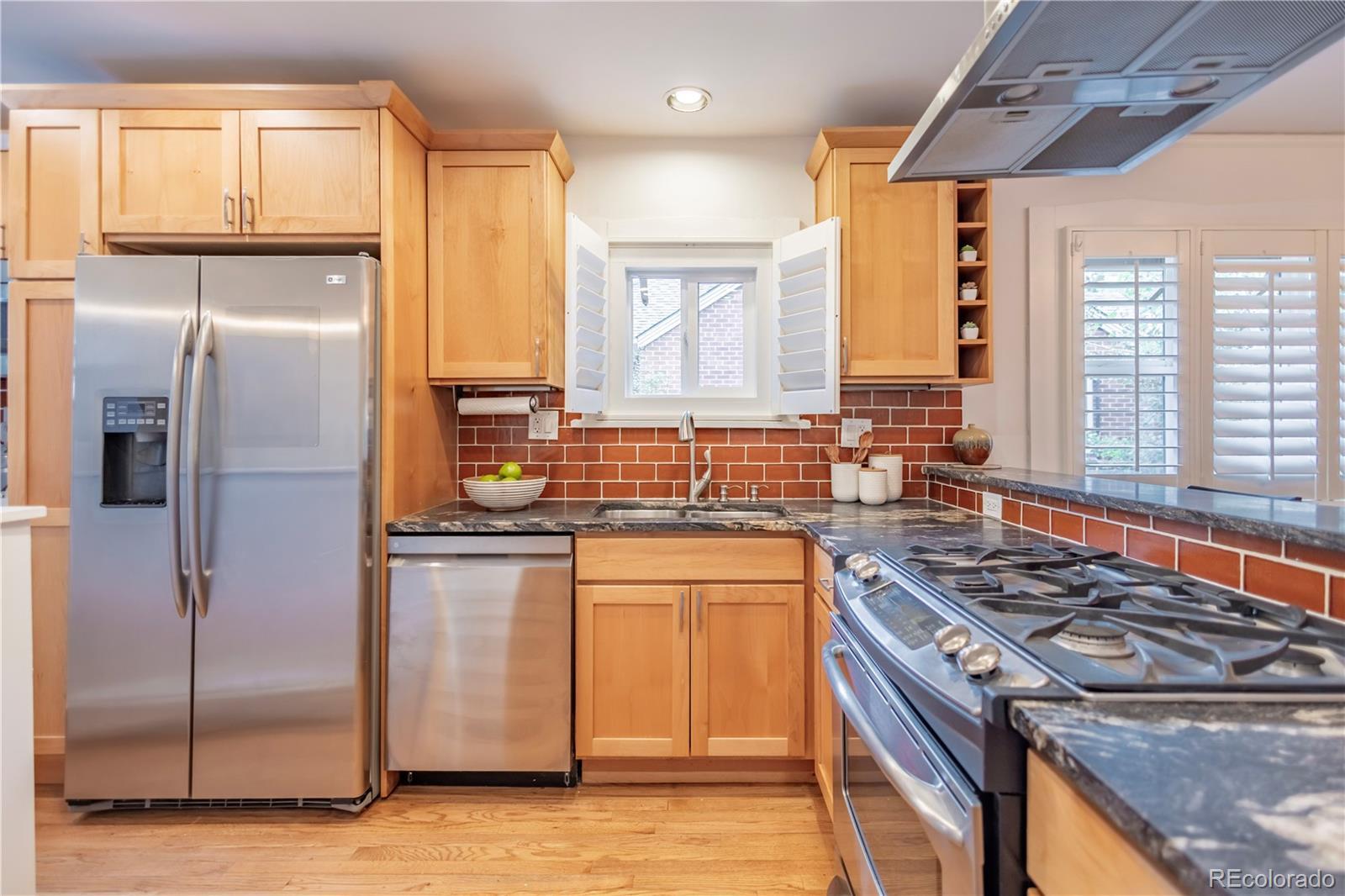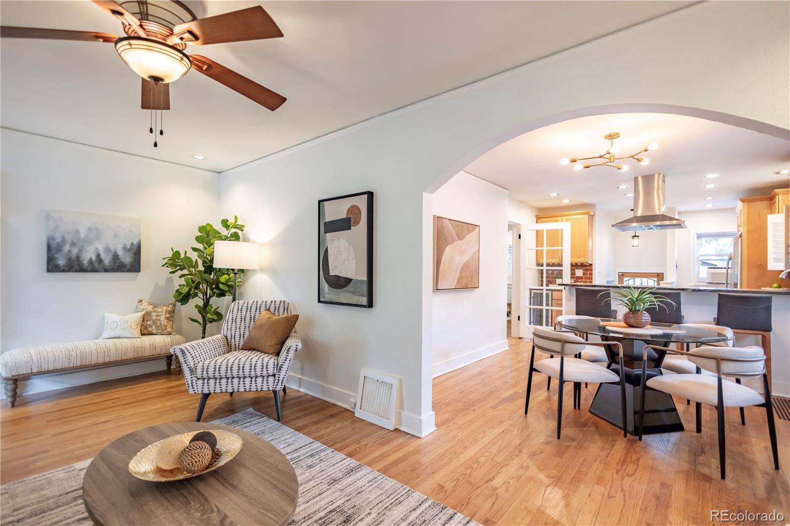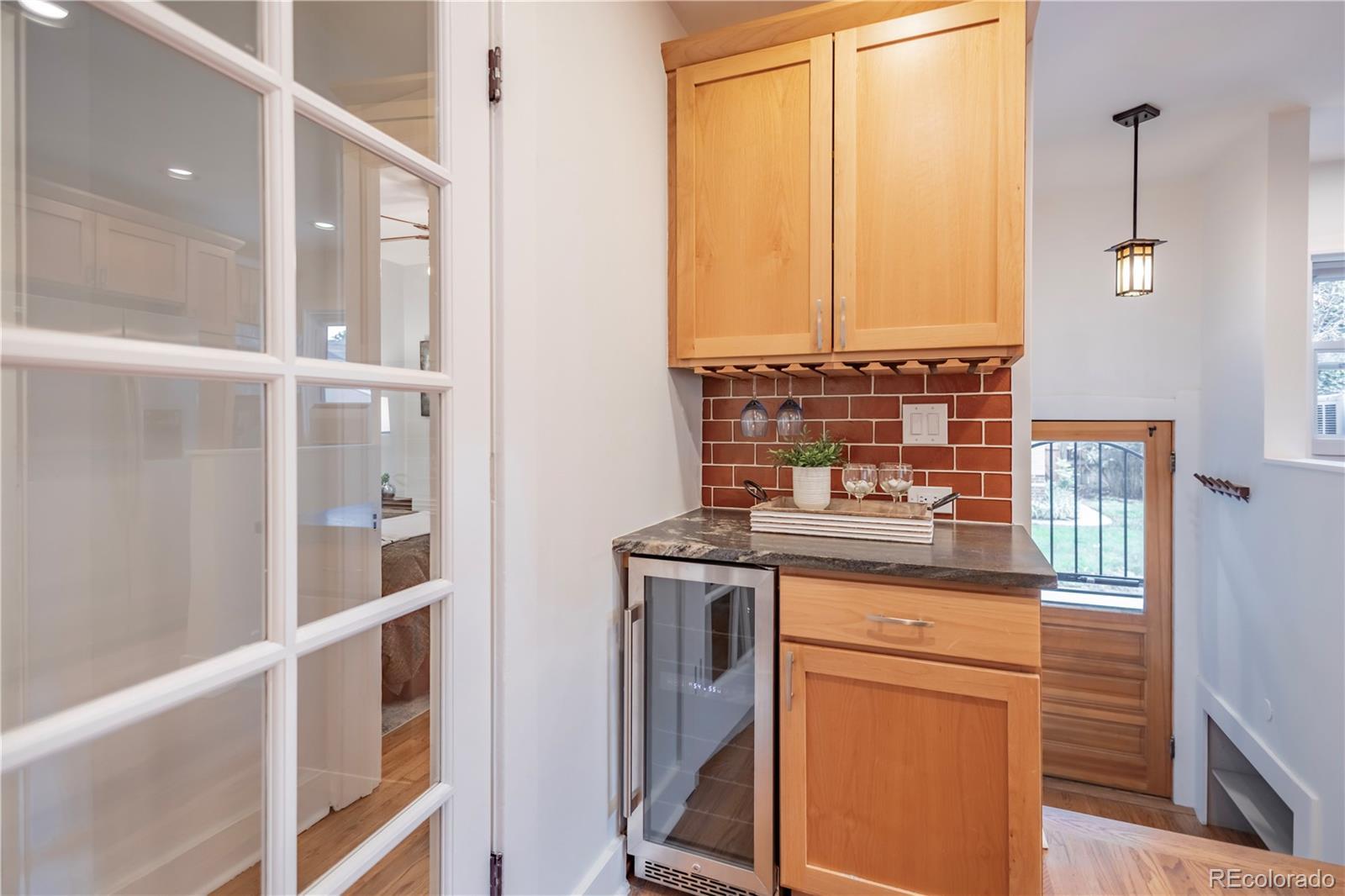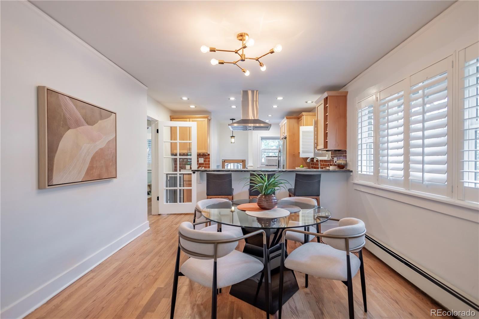 Welcome to this charming bungalow in the heart of Platt Park — where classic character meets modern comfort. From the moment you arrive, the expansive front porch invites you to relax and take in the neighborhood charm. Step inside to an open-concept living space where natural light flows through gleaming windows highlighting the hardwood floors, crown molding, classic plantation shutters, custom fireplace cabinetry, and an arched doorway. Every detail has been thoughtfully preserved and updated to create a home that feels both timeless and fresh. The kitchen is a true gathering place featuring stainless steel appliances, gas range, honed granite countertops, breakfast bar seating, a wine fridge, and a coffee nook. Whether you're cooking for two or entertaining a crowd, there's ample counter space for all your needs. The main level offers a spacious living room with a fireplace flanked by built-in shelving, a formal dining room, two bedrooms, and a newly refreshed bathroom with a walk-in shower. Downstairs, the finished basement expands your living space with a large family room showcasing exposed brick walls and wainscoting ideal for movie nights and a home office. You'll also find a lovely bedroom with an egress window, the second bathroom, laundry room and spacious utility / storage room. New upgrades (Sept 2025) include interior paint, 7 new windows, a refinished back patio, updated beadboard in the main floor bath, refreshed landscaping and refinished hardwood floors (2023). Enjoy the convenience of a Tesla electric car charger in the 2-car detached garage. Step out back to your own private oasis. A fully fenced, east-facing backyard with a patio and mature trees, perfect for relaxing or entertaining. Blocks away from the lively shops and restaurants of Old South Pearl Street and seasonal Farmer’s Market — this location combines charm, community, and convenience. With easy access to I-25, Santa Fe Blvd, and the University of Denver, getting around is a breeze.