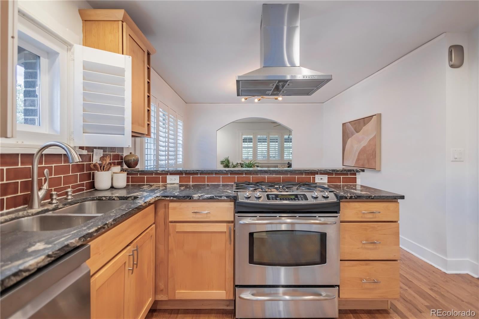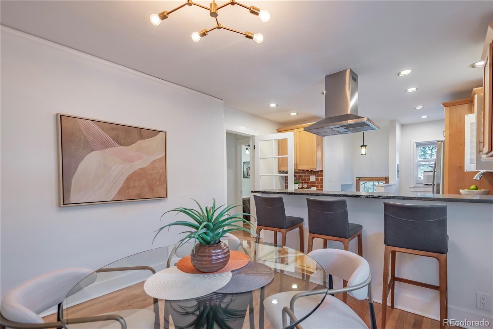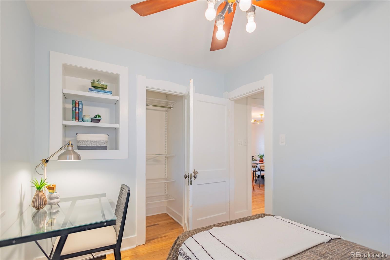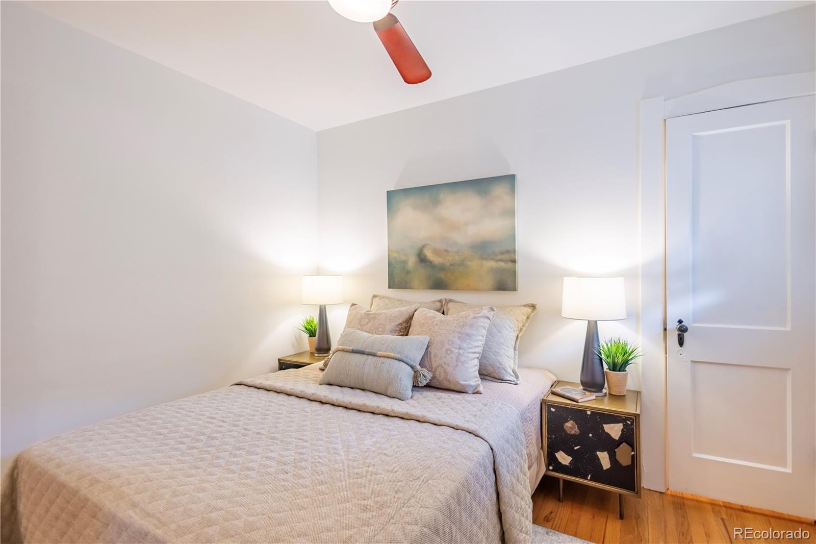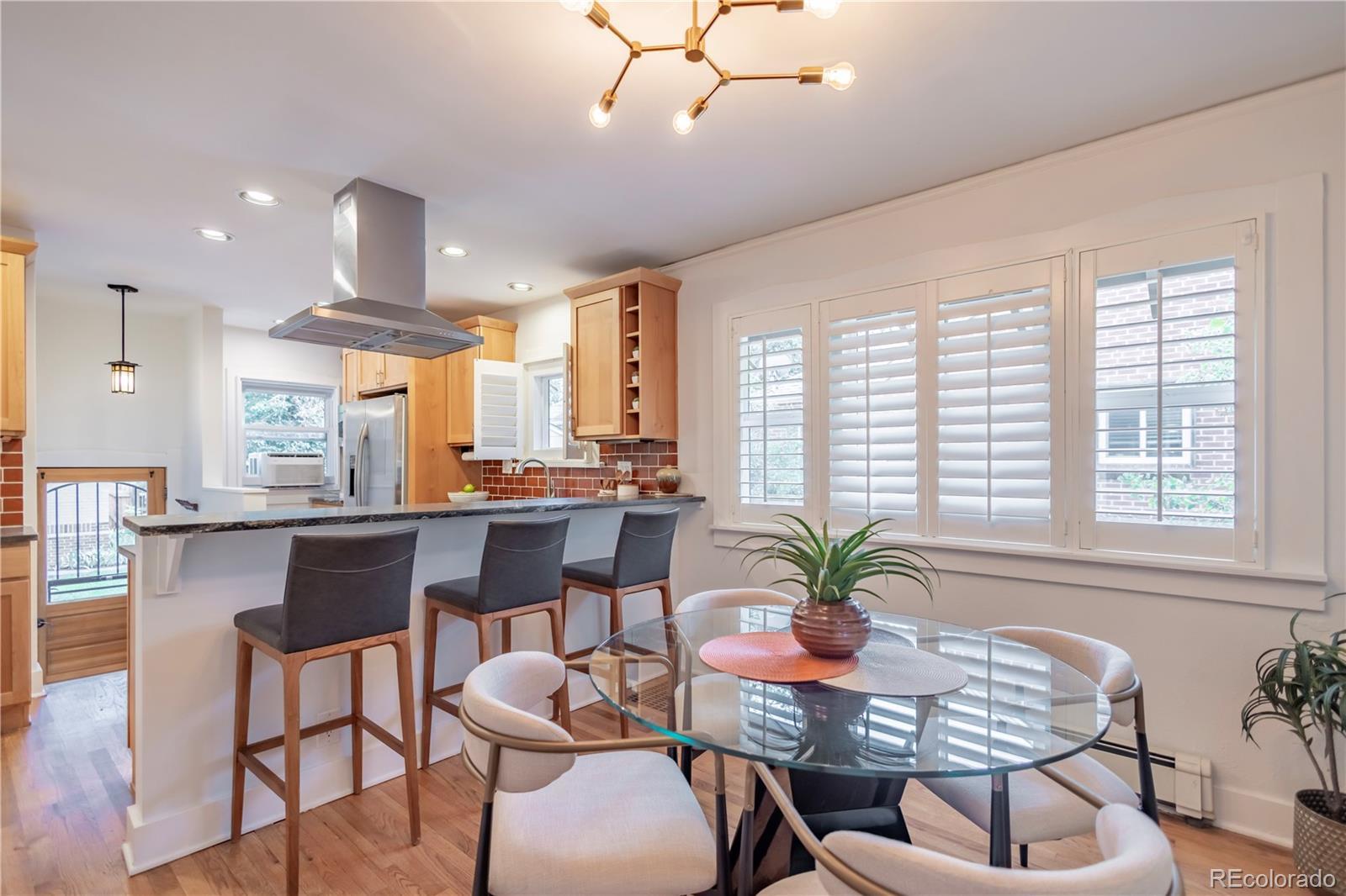Welcome to this charming bungalow in the heart of Platt Park — where classic character meets modern comfort. From the moment you arrive, the expansive front porch invites you to relax and take in the neighborhood charm. Step inside to an open-concept living space where natural light flows through gleaming windows highlighting the hardwood floors, crown molding, classic plantation shutters, custom fireplace cabinetry, and an arched doorway. Every detail has been thoughtfully preserved and updated to create a home that feels both timeless and fresh. The kitchen is a true gathering place featuring stainless steel appliances, gas range, honed granite countertops, breakfast bar seating, a wine fridge, and a coffee nook. Whether you're cooking for two or entertaining a crowd, there's ample counter space for all your needs. The main level offers a spacious living room with a fireplace flanked by built-in shelving, a formal dining room, two bedrooms, and a newly refreshed bathroom with a walk-in shower. Downstairs, the finished basement expands your living space with a large family room showcasing exposed brick walls and wainscoting ideal for movie nights and a home office. You'll also find a lovely bedroom with an egress window, the second bathroom, laundry room and spacious utility / storage room. New upgrades (Sept 2025) include interior paint, 7 new windows, a refinished back patio, updated beadboard in the main floor bath, refreshed landscaping and refinished hardwood floors (2023). Enjoy the convenience of a Tesla electric car charger in the 2-car detached garage. Step out back to your own private oasis. A fully fenced, east-facing backyard with a patio and mature trees, perfect for relaxing or entertaining. Blocks away from the lively shops and restaurants of Old South Pearl Street and seasonal Farmer’s Market — this location combines charm, community, and convenience. With easy access to I-25, Santa Fe Blvd, and the University of Denver, getting around is a breeze.