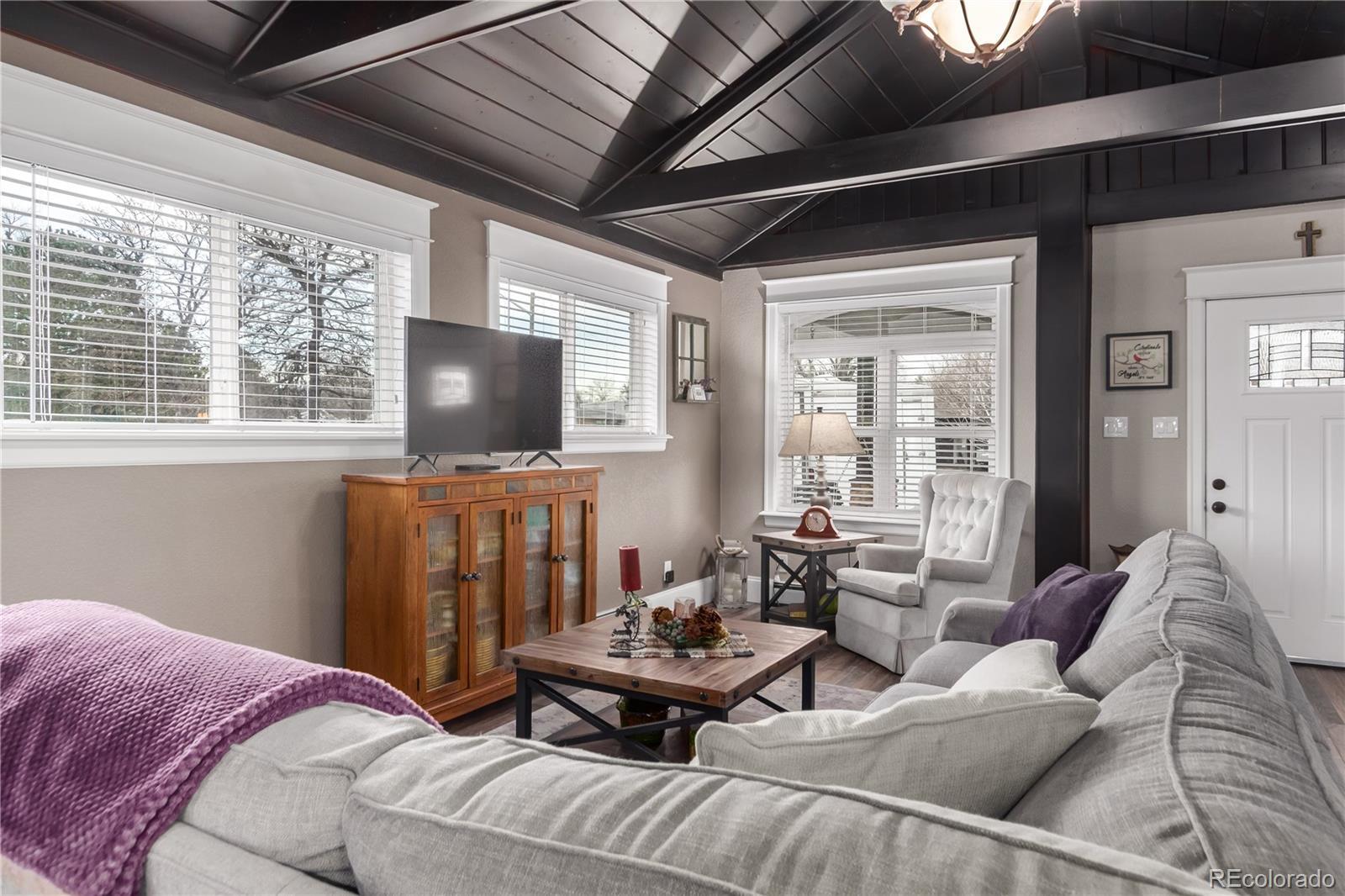 Fully remodeled and thoughtfully expanded, this exceptional 4-bedroom, 4-bath home delivers space, style, and rare functionality in one of Wheat Ridge’s fastest-growing neighborhoods. A massive addition, oversized 3-car garage, and expansive lot set this property apart from the moment you arrive. Inside, vaulted tongue-and-groove ceilings with exposed beams anchor the open-concept living space, while the gourmet kitchen—complete with high-end finishes and a custom pantry—creates the ideal setting for entertaining. Outside, the lifestyle continues with a covered front patio and an impressive backyard patio featuring a covered section and dual ceiling fans—perfect for hosting, relaxing, or unforgettable Colorado evenings. The oversized lot offers remarkable versatility with 2 sheds, RV or boat parking, and even a dump station—features rarely found at this price point. Ideally located near top-rated schools and surrounded by a community on the rise, this 2017-renovated home blends modern luxury with long-term investment potential. This is the kind of home that doesn’t come along often—schedule your private tour and experience it for yourself.
