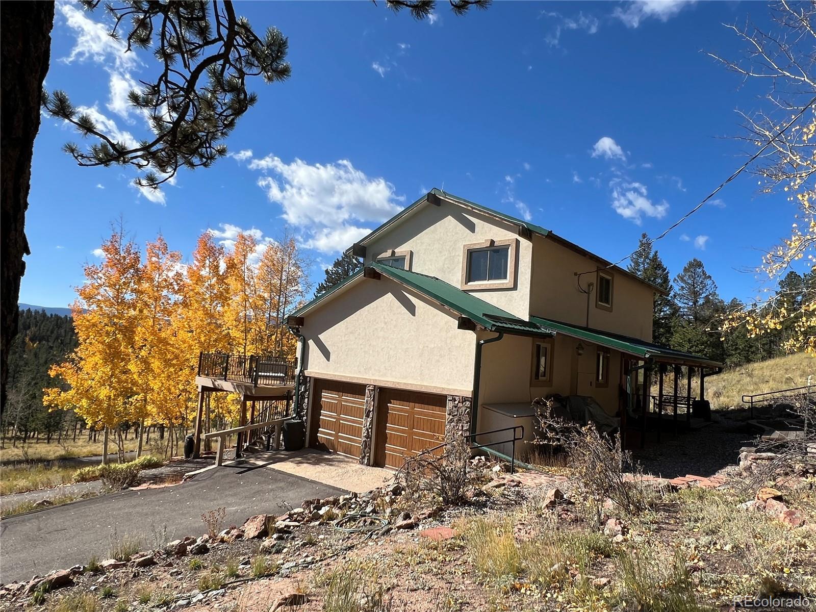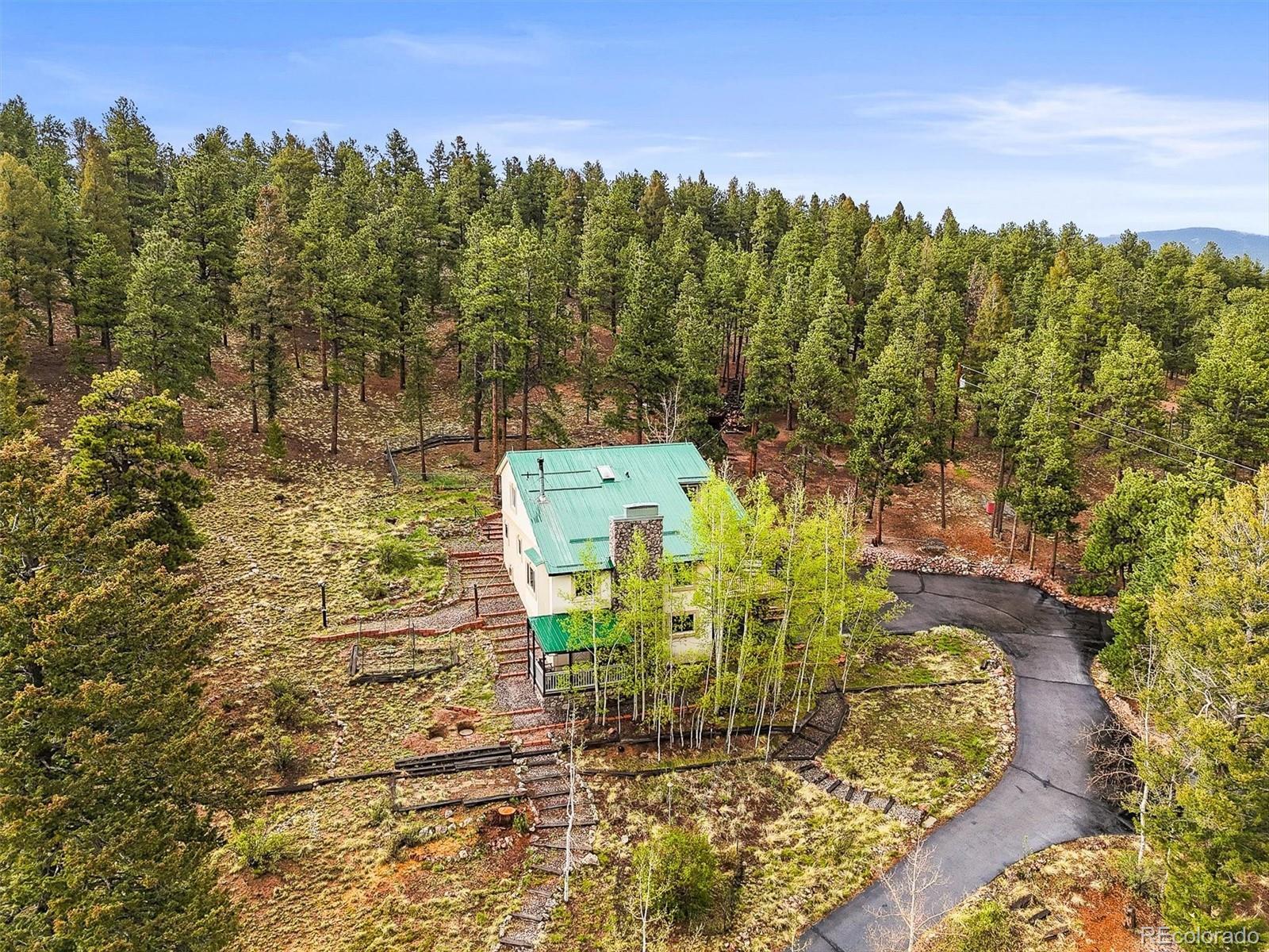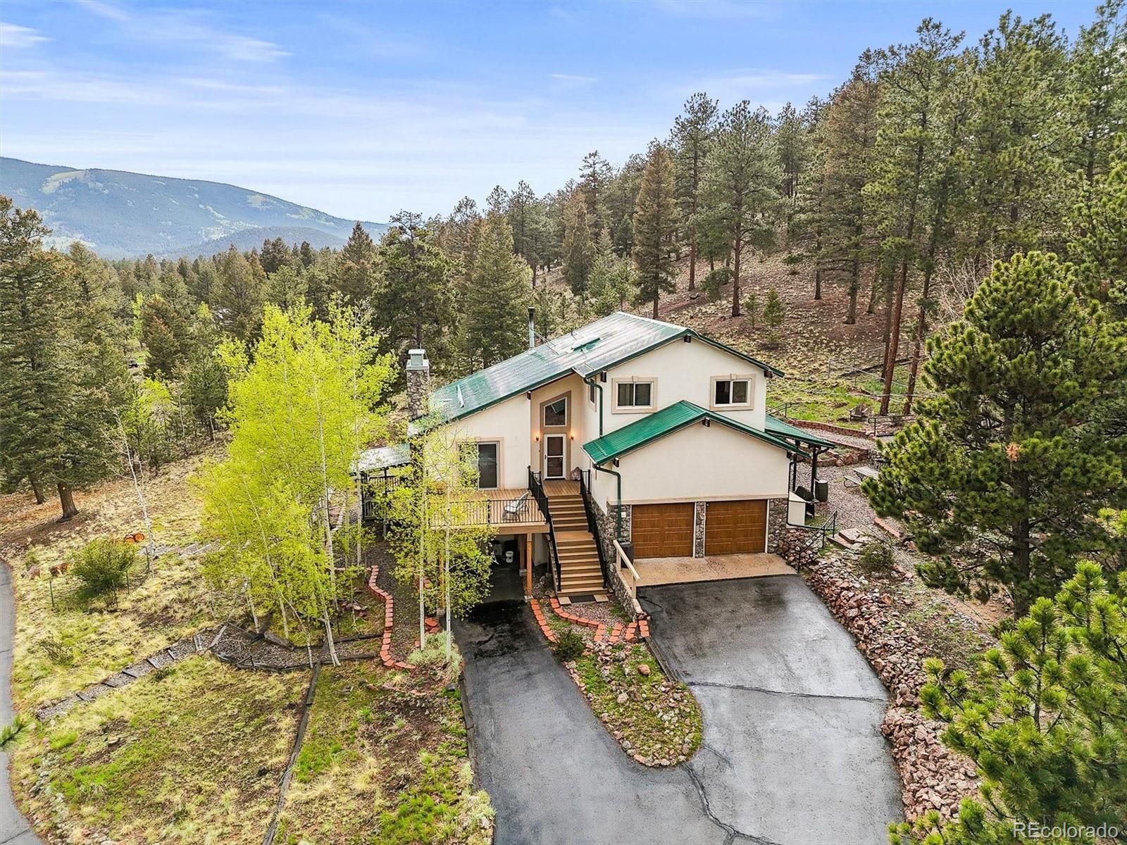 NEW 1,250 gal SEPTIC TANK 09/25/2025 ***BUYERS WHO QUALIFY AND FINANCE WITH OUR PREFERRED LENDER CAN RECEIVE A LENDER SPONSORED 1% - 1 YEAR RATE BUY-DOWN - CONTACT LISTING AGENT FOR MORE INFORMATION.*** Remarkable Home in the Foothills Nestled on 6.57 acres of serene Foothills beauty, this extraordinary property offers a harmonious blend of natural landscapes and thoughtful design. Surrounded by a perfect mix of mature trees and meticulous landscaping, distant mountain views from deck and windows. This multi-level home boasts 4 bedrooms, 4 bathrooms, and an oversized 2-car garage, combining functionality with style and comfort. The home's exterior showcases timeless durability, featuring a metal roof and stucco siding. Step outside to enjoy two covered patios and a sunny view deck, perfect for soaking in the breathtaking scenery. The views include distant mountain vistas, with the majestic Pikes Peak gracing the horizon. Inside, the home radiates warmth and charm. The main and upper levels have been freshly painted, and the carpeting has been professionally cleaned, ensuring a move-in-ready experience. Open vaulted ceilings create an airy and spacious ambiance, while two gas fireplaces and a cozy woodstove add inviting touches for cooler evenings. The thoughtfully designed layout includes a fenced dog yard for your four-legged friends, a paved circular driveway for convenience, and a workshop for your projects or hobbies. The primary suite is a nice retreat, featuring a half bath that flows into an updated three-quarter bathroom with a modern shower. Pride in ownership is evident in every detail. Additional highlights include a central vacuum system for effortless cleaning and an oversized garage to accommodate vehicles and storage needs. Whether you're entertaining on the patios, relaxing by the fire, or taking in the distant mountain views, this home offers a lifestyle of comfort, privacy, and natural beauty. Don't miss the amazing deal!!