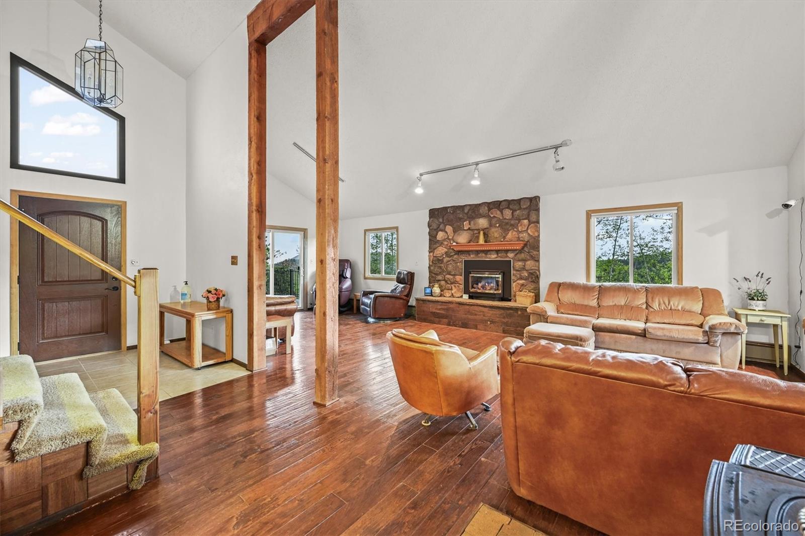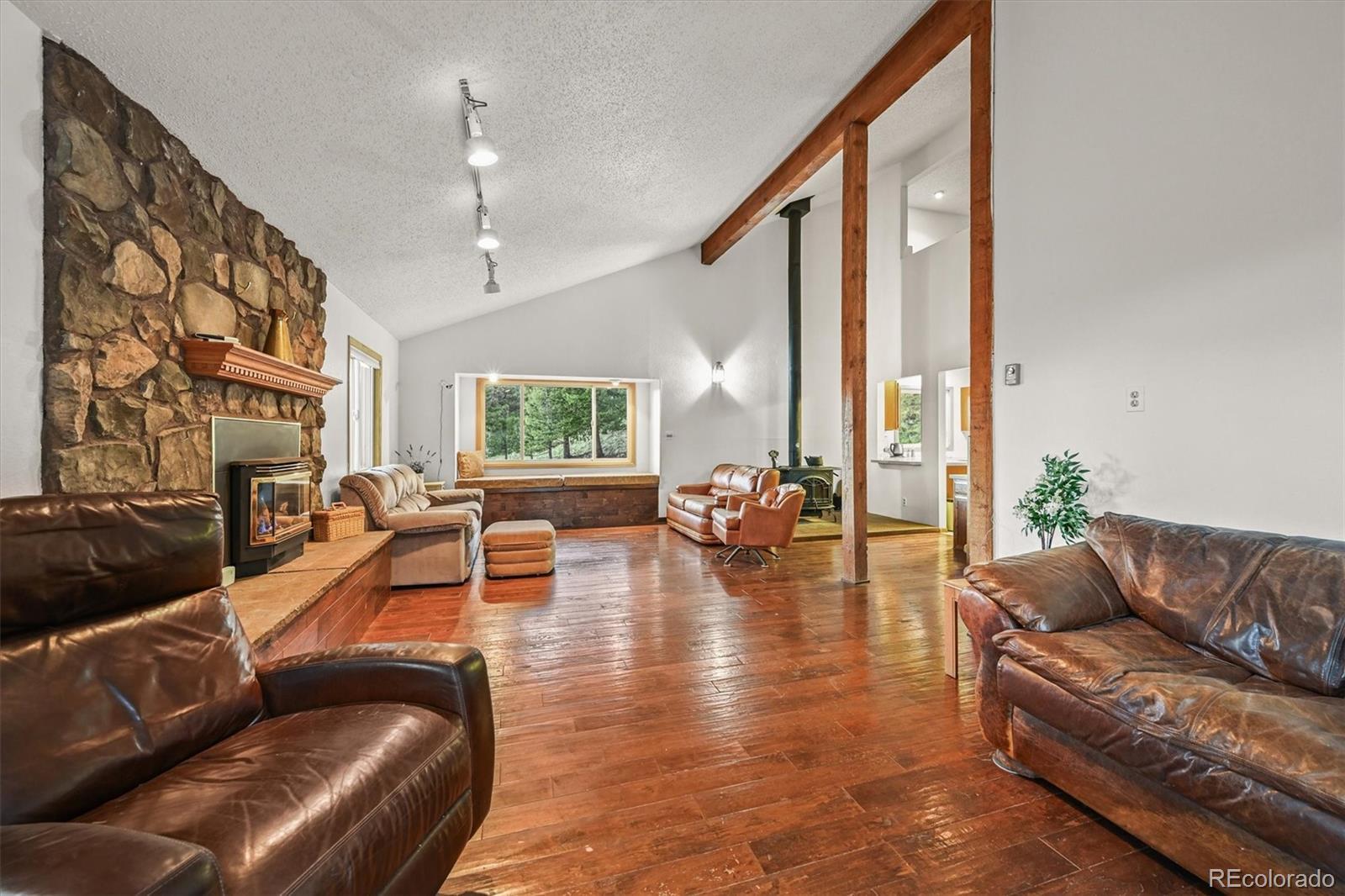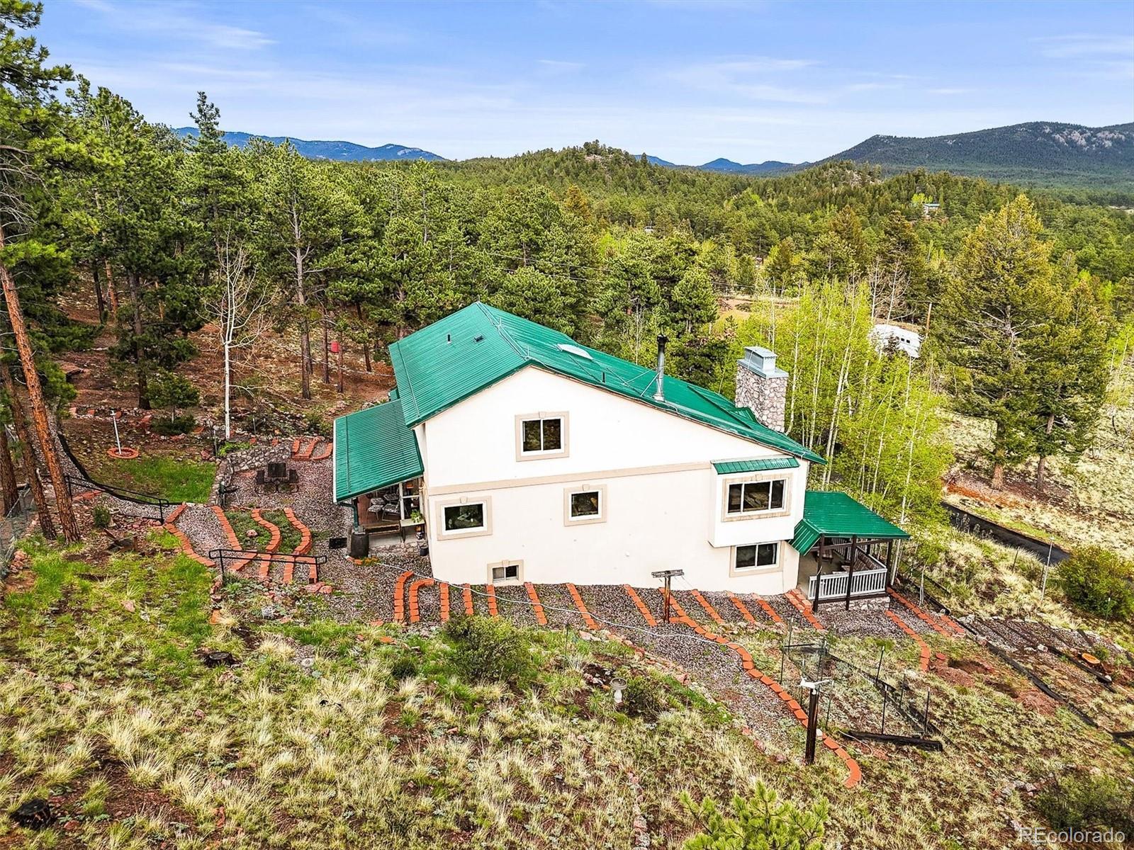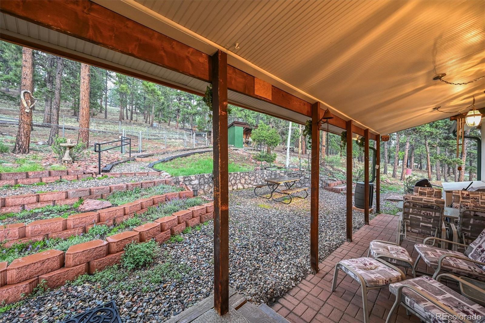 NEW 1,250 gal SEPTIC TANK 09/25/2025 ***BUYERS WHO QUALIFY AND FINANCE WITH OUR PREFERRED LENDER CAN RECEIVE A LENDER SPONSORED 1% - 1 YEAR RATE BUY-DOWN - CONTACT LISTING AGENT FOR MORE INFORMATION.*** Remarkable Home in the Foothills Nestled on 6.57 acres of serene Foothills beauty, this extraordinary property offers a harmonious blend of natural landscapes and thoughtful design. Surrounded by a perfect mix of mature trees and meticulous landscaping, distant mountain views from deck and windows. This multi-level home boasts 4 bedrooms, 4 bathrooms, and an oversized 2-car garage, combining functionality with style and comfort. The home's exterior showcases timeless durability, featuring a metal roof and stucco siding. Step outside to enjoy two covered patios and a sunny view deck, perfect for soaking in the breathtaking scenery. The views include distant mountain vistas, with the majestic Pikes Peak gracing the horizon. Inside, the home radiates warmth and charm. The main and upper levels have been freshly painted, and the carpeting has been professionally cleaned, ensuring a move-in-ready experience. Open vaulted ceilings create an airy and spacious ambiance, while two gas fireplaces and a cozy woodstove add inviting touches for cooler evenings. The thoughtfully designed layout includes a fenced dog yard for your four-legged friends, a paved circular driveway for convenience, and a workshop for your projects or hobbies. The primary suite is a nice retreat, featuring a half bath that flows into an updated three-quarter bathroom with a modern shower. Pride in ownership is evident in every detail. Additional highlights include a central vacuum system for effortless cleaning and an oversized garage to accommodate vehicles and storage needs. Whether you're entertaining on the patios, relaxing by the fire, or taking in the distant mountain views, this home offers a lifestyle of comfort, privacy, and natural beauty. Don't miss the amazing deal!!