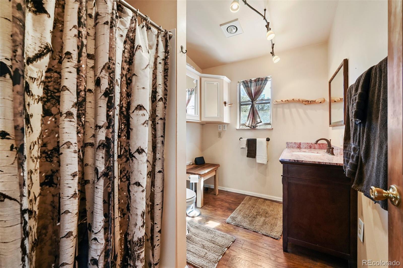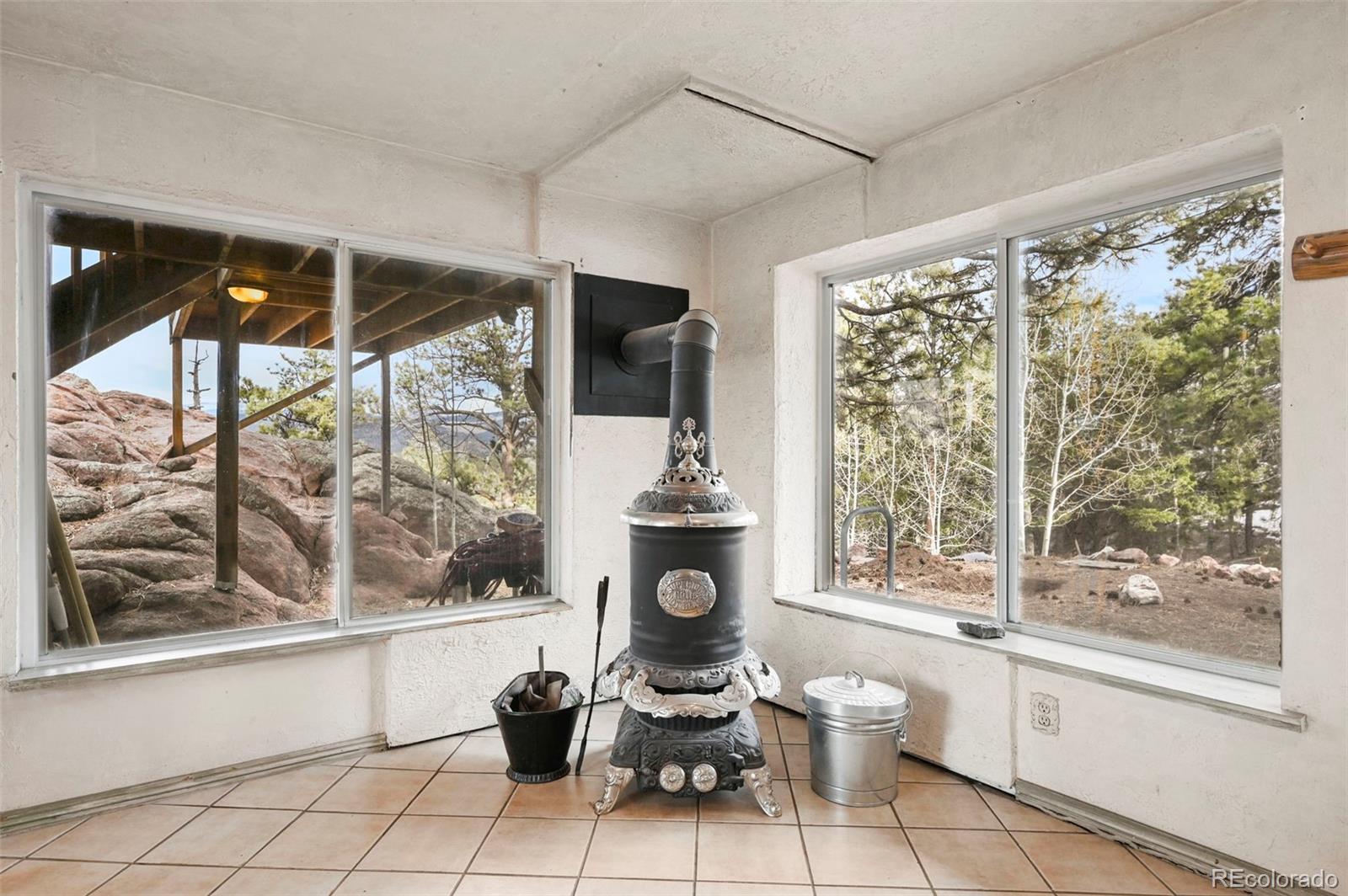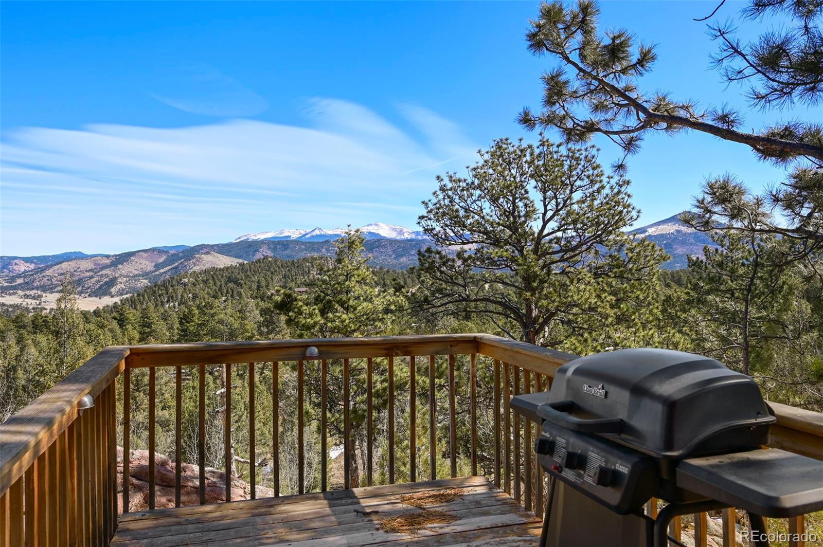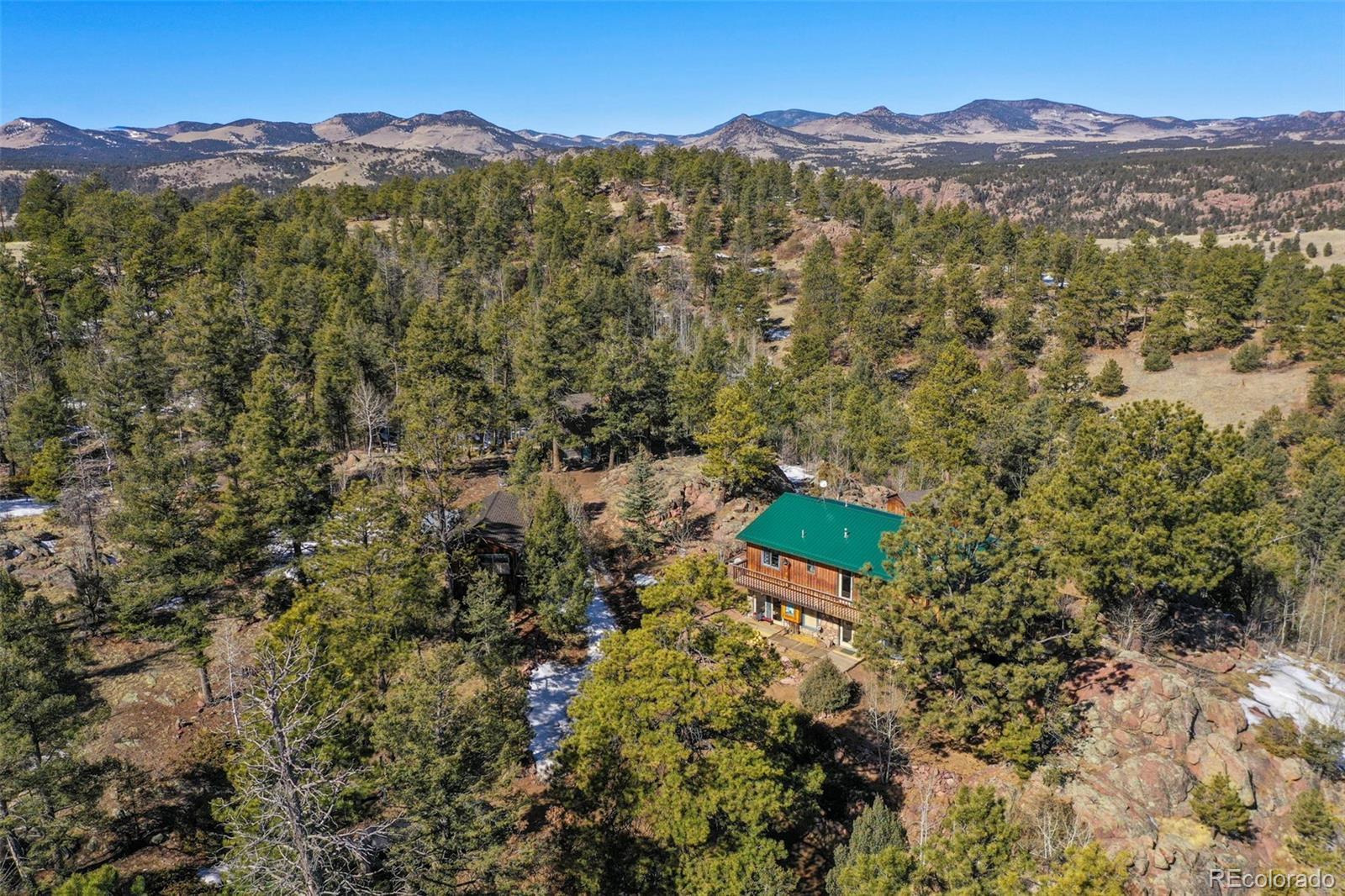 Discover this charming home perched atop the the mountains of Florissant, where breathtaking views and cozy living come together in perfect harmony. This delightful residence features 3 bedrooms and 2 bathrooms, ideal for both relaxation and entertainment. With a generous laundry and storage room, as well as living and family areas on both levels, this home is designed for comfort and convenience. Entering the lower level, you’ll find a large family room that invites warmth and relaxation, complemented by a beautiful wood stove. Additionally, there is an oversized bathroom complete with a clawfoot tub and a rejuvenating sauna. This level also includes a secondary bedroom and a well-appointed laundry room, offering ample storage for chest freezers and pantry essentials. Ascend the spiral staircase to the upper level, where the open floor plan welcomes you into the dining area, seamlessly connecting to the living room and kitchen. The walls of windows flood the space with natural light, showcasing the awe-inspiring mountain vistas that surround you. To top off the upper level are 2 additional bedrooms and a bathroom. As you step onto the expansive deck, imagine savoring morning sunrises as they rise over the eastern peaks—a perfect setting for your morning coffee or evening gatherings. Step outside to explore the charming 1-bedroom cabin, an ideal retreat for guests or a serene escape for yourself. Additionally, a versatile outbuilding, previously utilized as a workshop, offers loft space and endless possibilities for hobbies or storage. At the heart of this mountain oasis lies a flat area featuring a cozy firepit, where spectacular views create a magical backdrop for evenings under the stars.