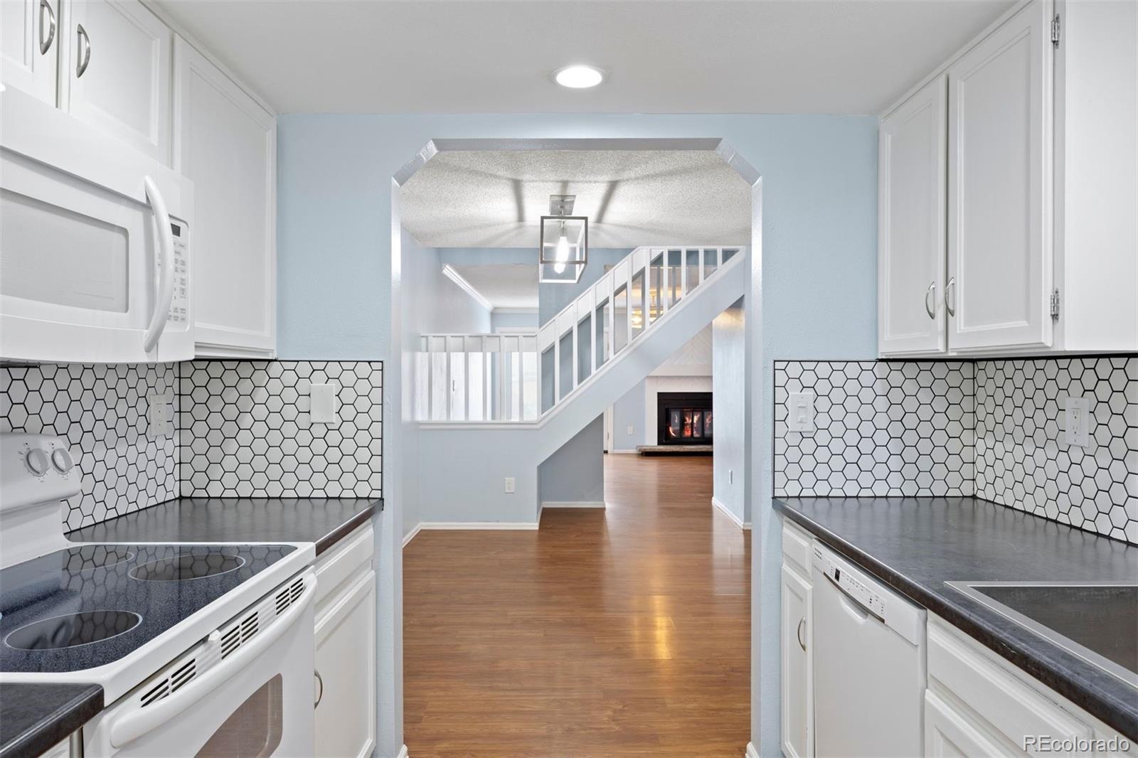 Your wait is over! This beautifully updated townhome in the coveted Cherry Creek School District is move-in ready, just in time for the holidays. Located in the Woodgate North community of only 116 homes, this home combines modern updates, comfort, and convenience. Most updates were completed in 2021, including the furnace, A/C, windows, and French doors with built-in blinds. The water heater in 2023, giving you peace of mind for years to come. Inside, enjoy laminate wood flooring on the main level, newer carpet, and updated lighting throughout. The light and bright kitchen features white cabinetry and appliances, accented by a dark marbled countertop and modern white tile backsplash. A convenient laundry room off the kitchen offers cabinetry, shelving (perfect for a pantry), and access to a generous crawl space running the length of the unit for extra storage. The open living room with ceiling fan and wood-burning fireplace creates a warm and welcoming atmosphere. A stylish powder bath showcases a stunning mystic blue vanity with marble top and gold fixtures. Upstairs, you’ll find two spacious primary suites, each with en-suite bathrooms. The front primary impresses with a double-sink vanity, marble top, black fixtures, beveled subway tile shower with decorative inlay, glass doors, and dual closets. The secondary suite offers its own separate vanity, tub/shower, and linen closet for more of that great storage! Additional highlights include two reserved parking spaces right out front, nearby visitor parking, and an HOA that covers exterior maintenance, roof (recenlty replaced), snow removal, trash, water, and sewer. Conveniently located near Smoky Hill & Chambers, with easy access to Parker Road, I-225, DTC, and DIA. Bike to Cherry Creek State Park or hop on the nearby light rail. Shopping, dining, and entertainment are just minutes away at Southlands Mall. Listing broker is providing a comprehensive HOA Summary Report for buyers viewing, inquire with broker.