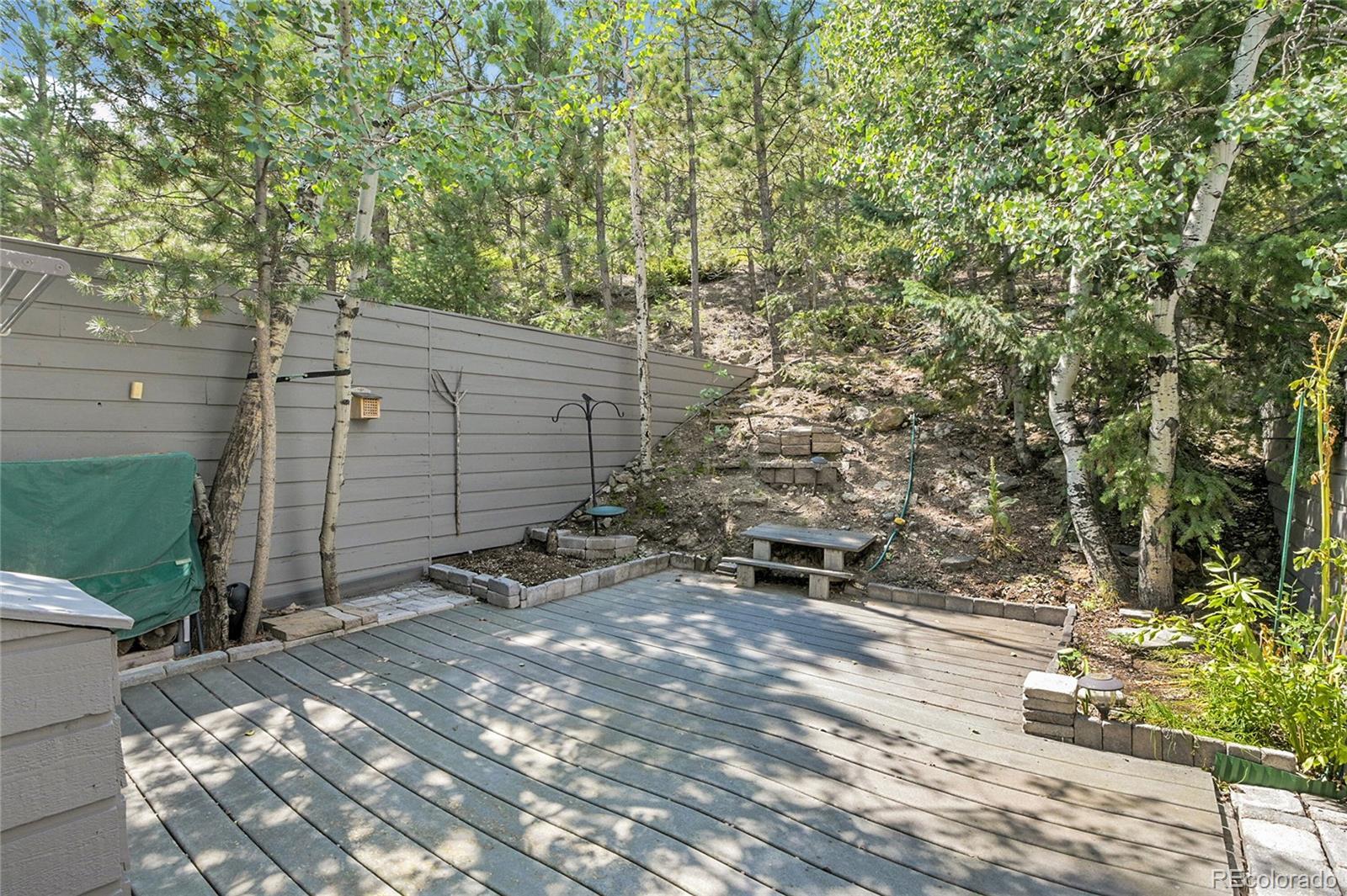 Don’t miss your opportunity to live within walking distance of Evergreen’s restaurants, Evergreen Lake, and miles of Open Space! This light-filled 2-bedroom, 2-bath townhome features vaulted ceilings, oversized skylights, and a cozy wood-burning fireplace. The open main-level layout includes a welcoming kitchen, spacious great room, a secondary bedroom, and a full bath. Two sliding glass doors lead to a private Trex deck—ideal for relaxing, entertaining, or enjoying visits from local wildlife. Upstairs, the primary suite offers a full bath and dual closets, creating a comfortable retreat. With its low-maintenance design, this home is the perfect lock-and-leave for seasonal travelers or anyone looking to enjoy all that Evergreen has to offer year-round.