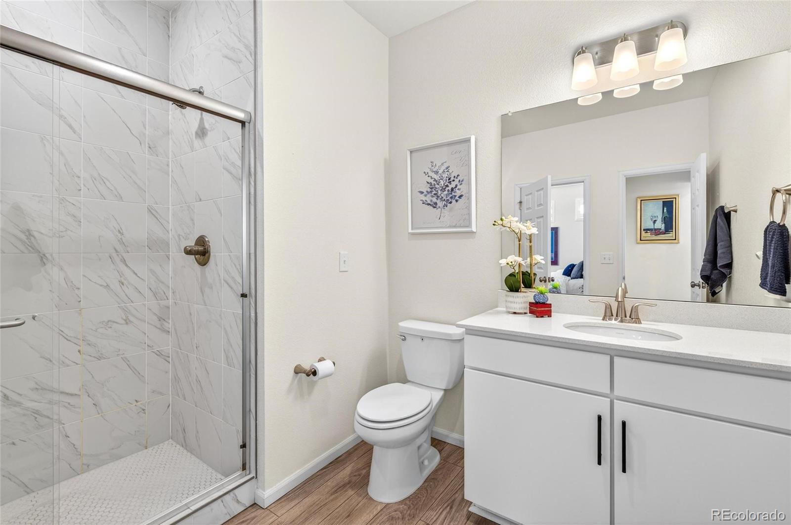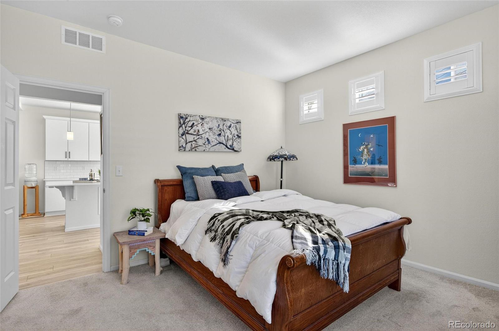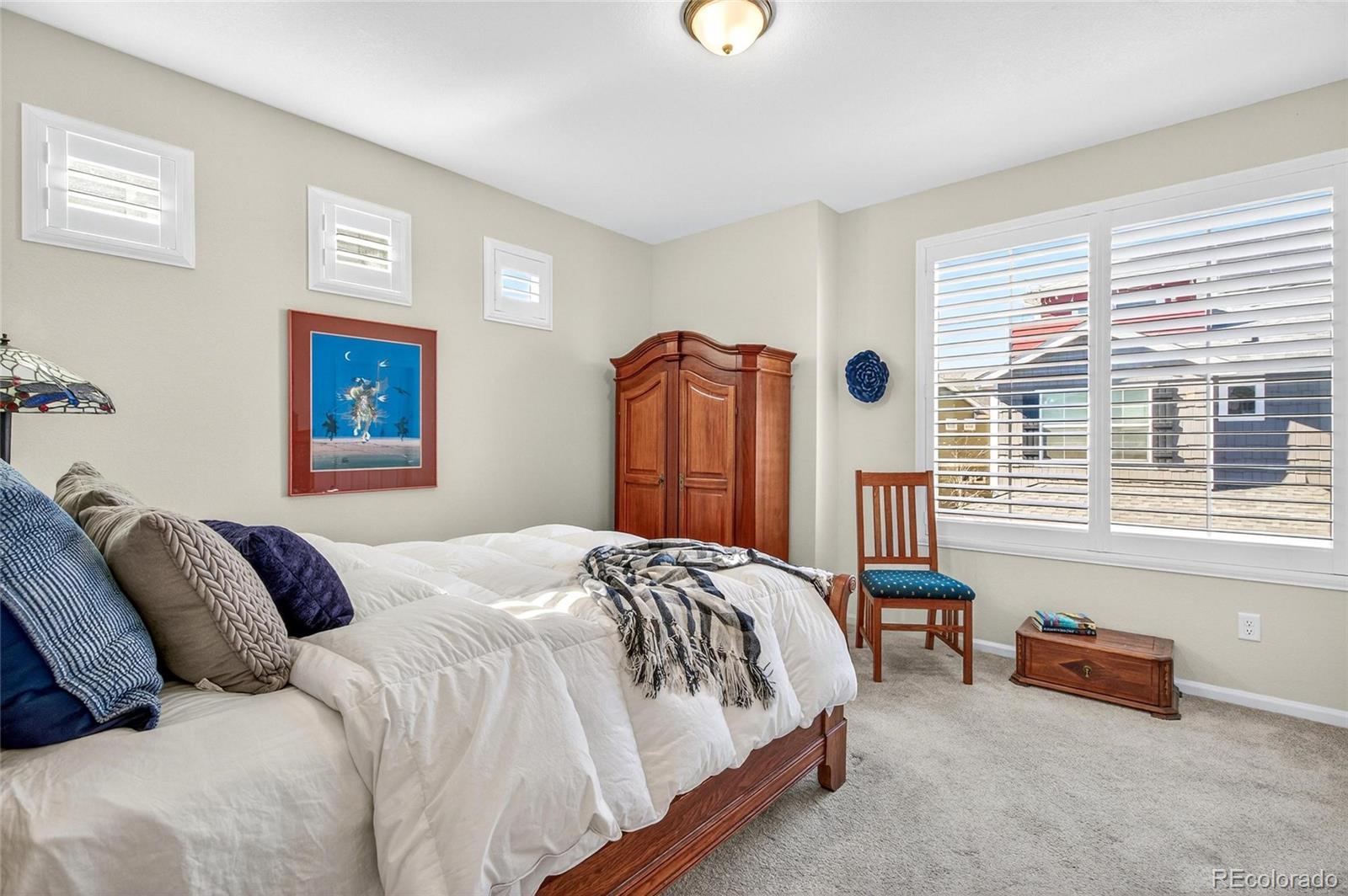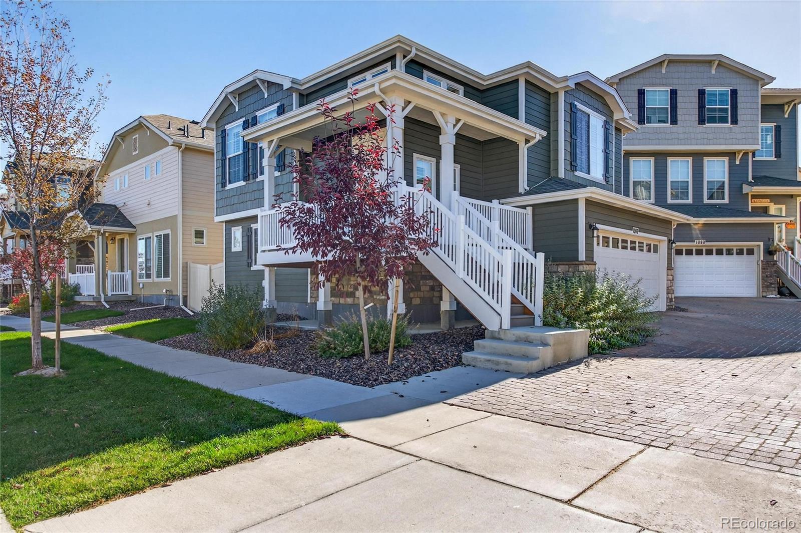 Maintenance-Free Living in a Beautiful Single-Family Home! Enjoy mountain views, privacy, and no attached neighbors in this stunning home that’s truly better than new! With great curb appeal and a wrap-around front deck, this property welcomes you the moment you arrive. Whether you’re sipping coffee in the early morning or taking in a breathtaking sunset, the front porch or spacious back deck offer the perfect spots to relax and unwind with your favorite book. Inside, you’ll find a chef’s kitchen designed for those who love to cook and entertain, featuring a gas cooktop, upgraded appliances, and a large center island ideal for meal prep or casual dining. The spacious primary bedroom includes a luxurious ensuite bath and a walk-in closet, providing a true retreat at the end of the day. The lower level offers flexibility with an additional bedroom, a full bath, and a bonus space perfect for a home office or potential third bedroom. The fully landscaped yard with a privacy fence, and shutters on all the windows, makes this home move-in ready! There is storage space below the stairs plus a crawl space that is easily accessible. Conveniently located near shopping, schools, parks, and just minutes from I-25, this home truly has it all! The HOA covers the snow removal on your upgraded paver driveway, making it a great lock and leave. Don’t miss your chance to make this exceptional home your own!