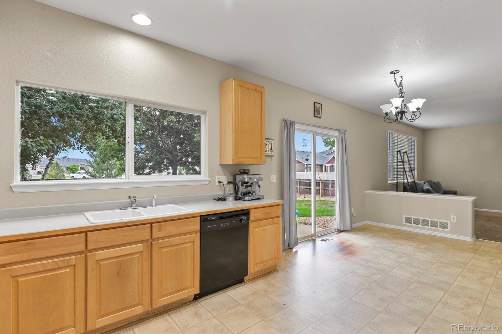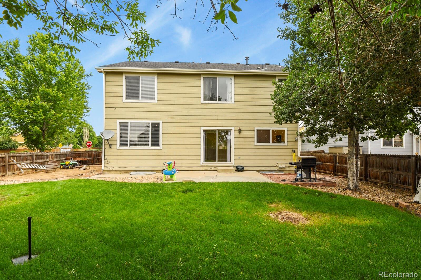 Easy to show two Story Home in Oak Meadows. Open Concept Main Floor with Seamless Integration of Kitchen, Dining & Family Rooms. Expansive Kitchen Features Dining Area, Double-Sided Gas Fireplace Between Family & Living Rooms. Light Filled Entry with Two Story Ceiling Height and Tall 9' Ceilings on Rest of Main Floor. Upstairs Features a Desired Layout with 3 Bedrooms, 2 Full Baths and Loft Area with Mountain Views that Could be Enclosed as a 4th Bedroom. Generously Sized Master Suite has Custom Built-In Closet Storage. Backyard Boasts Mountain Views, Mature Trees, Sprinkler System, Basement has potential Can Easily be Finished and Offers 3 Egress Windows, Ample Storage & Recreation/Exercise Room. Desirable community of Firestone. Close Proximity to Parks, Restaurants & Retail.