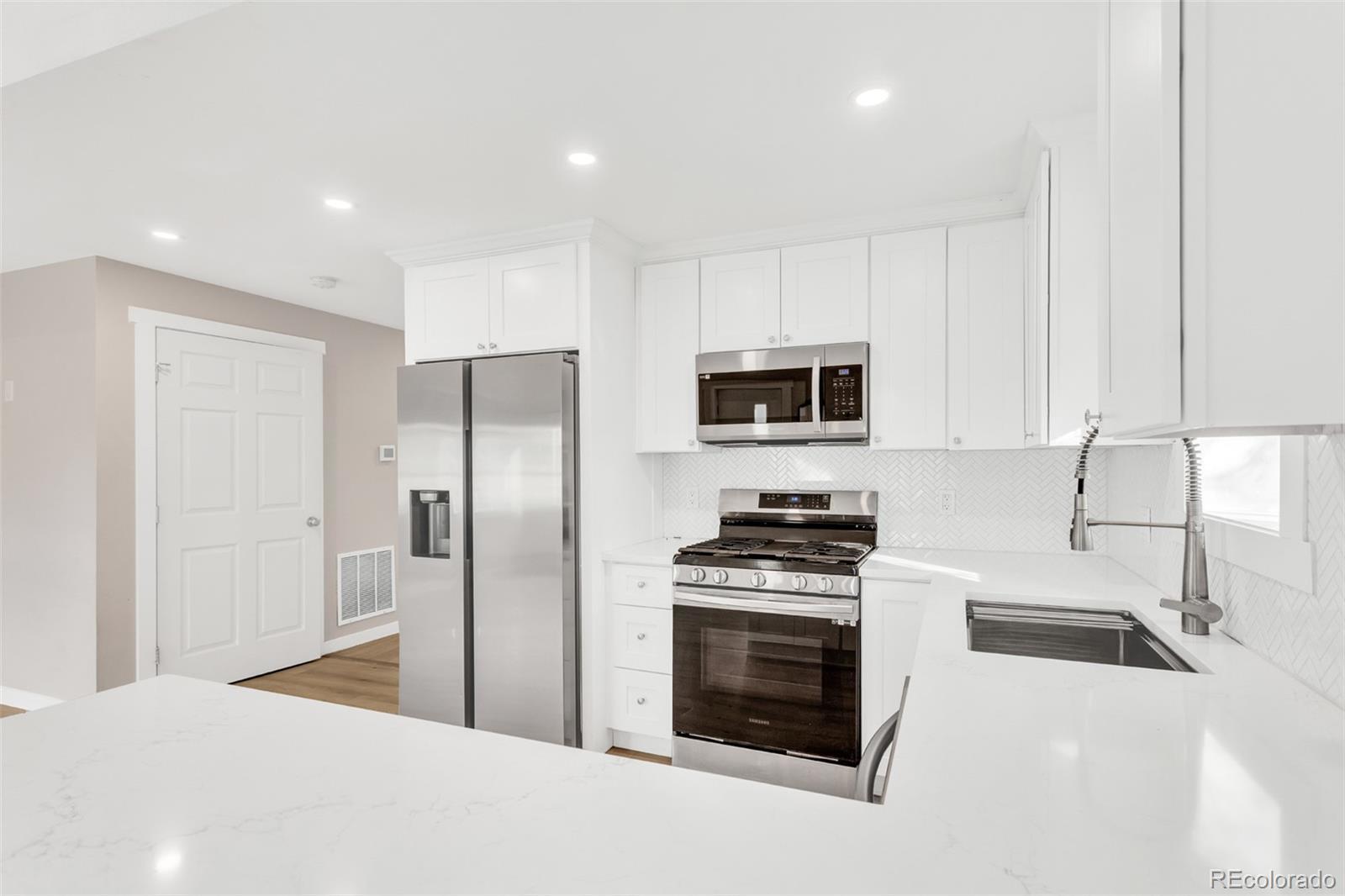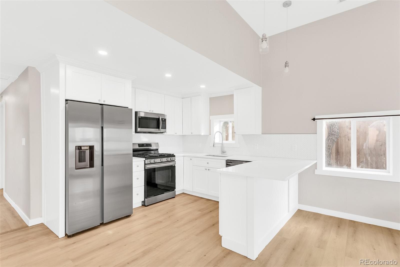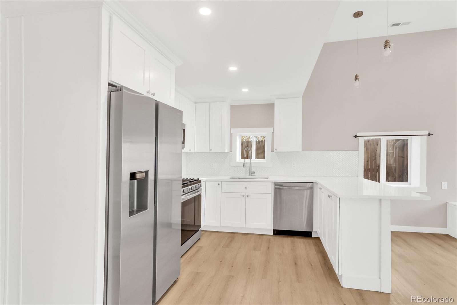 Where classic Denver charm meets modern living. Step inside this completely remodeled Barnum bungalow and you’ll instantly feel at home. Vaulted ceilings and an open layout create a bright, airy vibe that flows seamlessly through the living, dining, and kitchen spaces. The kitchen is a total showpiece — like new stainless-steel appliances (including a gas range), quartz counters, and a sleek peninsula perfect for morning coffee or casual dining. The dining nook features custom built-in benches that add warmth and character, while the updated bath shows off designer tile, a new vanity, and a fresh tub. The primary bedroom offers a cozy seating area — your own little retreat to unwind at the end of the day. This home checks all the practical boxes too: new furnace and A/C, tankless water heater, updated electrical panel, and fresh paint inside and out. Location-wise, it doesn’t get more convenient. You’re minutes from Downtown Denver, Belmar, Sloan’s Lake, and countless parks, trails, and local favorites. Quick highway access and nearby light rail make commuting a breeze. This one’s move-in ready and packed with value — the perfect blend of style, comfort, and location. Don’t wait — homes like this in Barnum don’t last long.