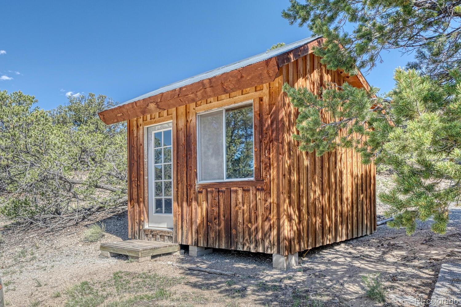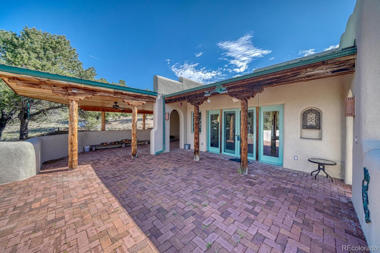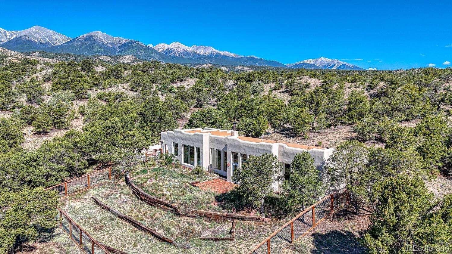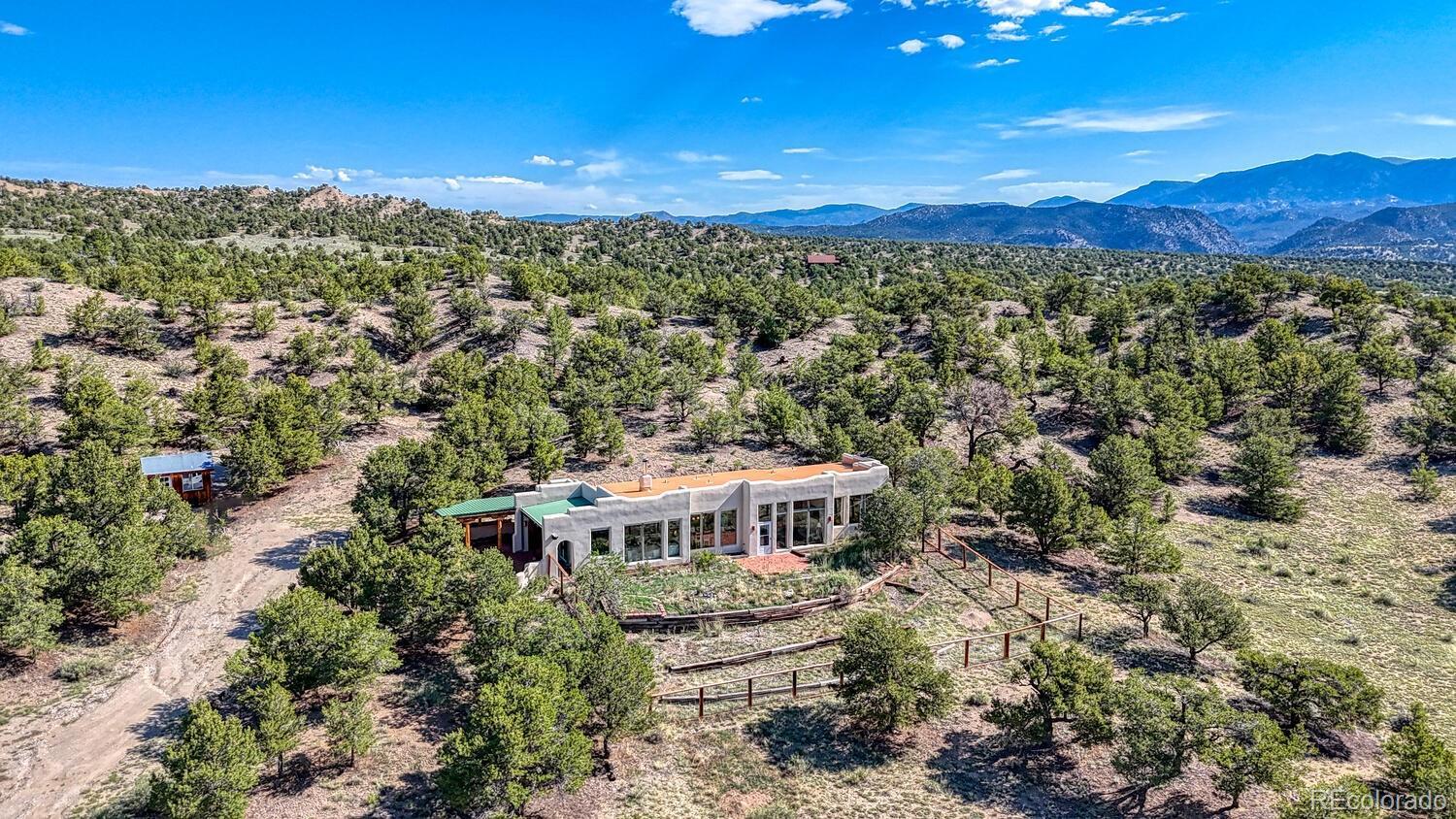 Feel like you are miles away from the real world every time you go home! Charming Spanish-style property on 36 acres. Beautiful views! Open floor plan with lots of windows for passive solar and more views. Large patio extends the living space for outside gatherings or private relaxation. Beautiful, rolling landscape with plenty of trees and natural features. Property is set up for horses. This is a rare opportunity to purchase acreage so close to Salida. Very private! Separate workshop/garage with electricity allows for ample parking, storage, or a studio. Bunkhouse with electricity good for extra sleeping space. Property can be sold fully furnished (furnishings are very much in keeping with architectural style). New stucco in 2019. Close to skiing, hiking, biking, rafting, and minutes from historic Salida. Make this your Colorado retreat!
