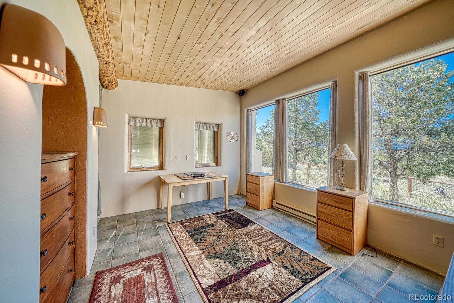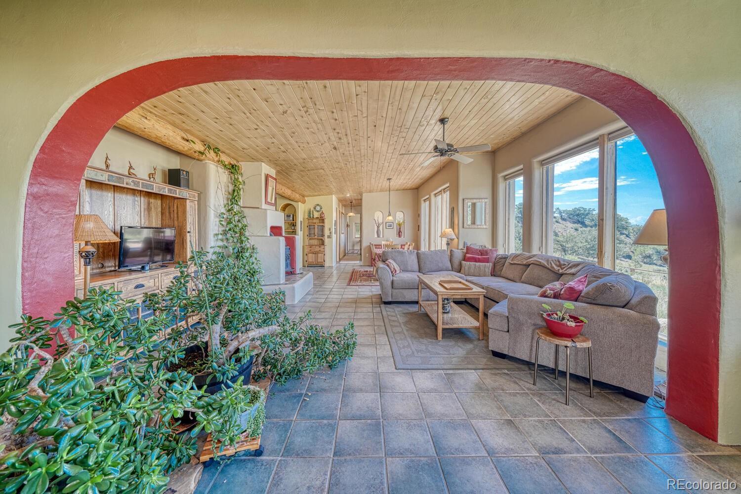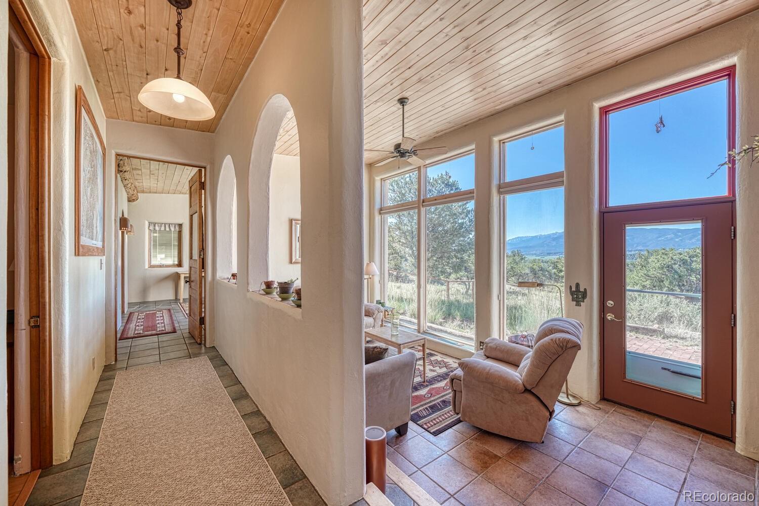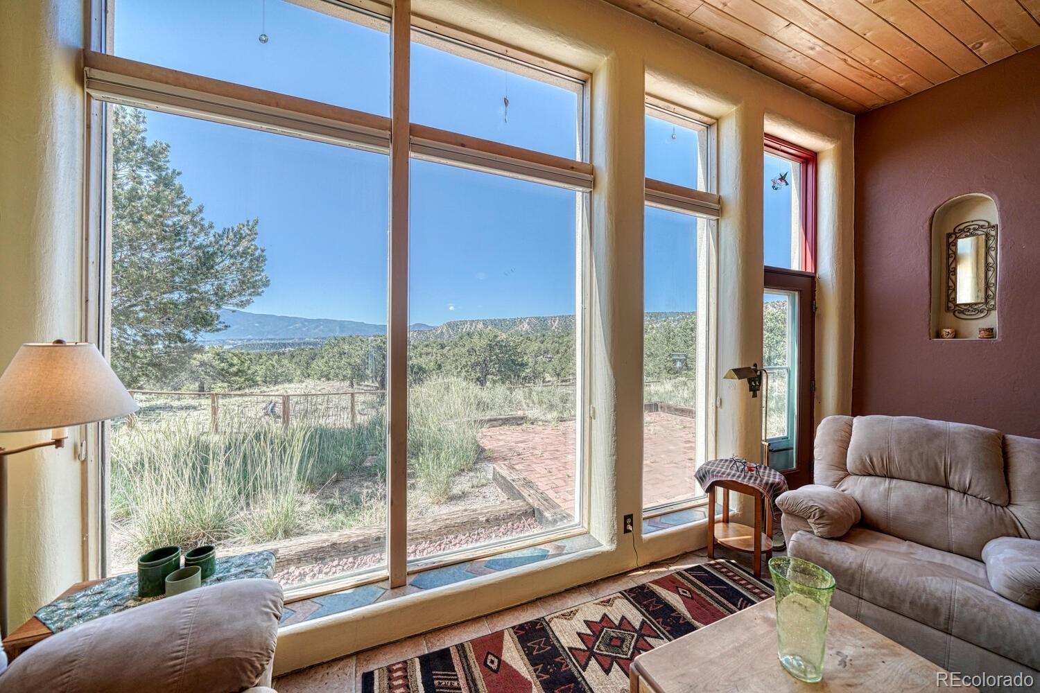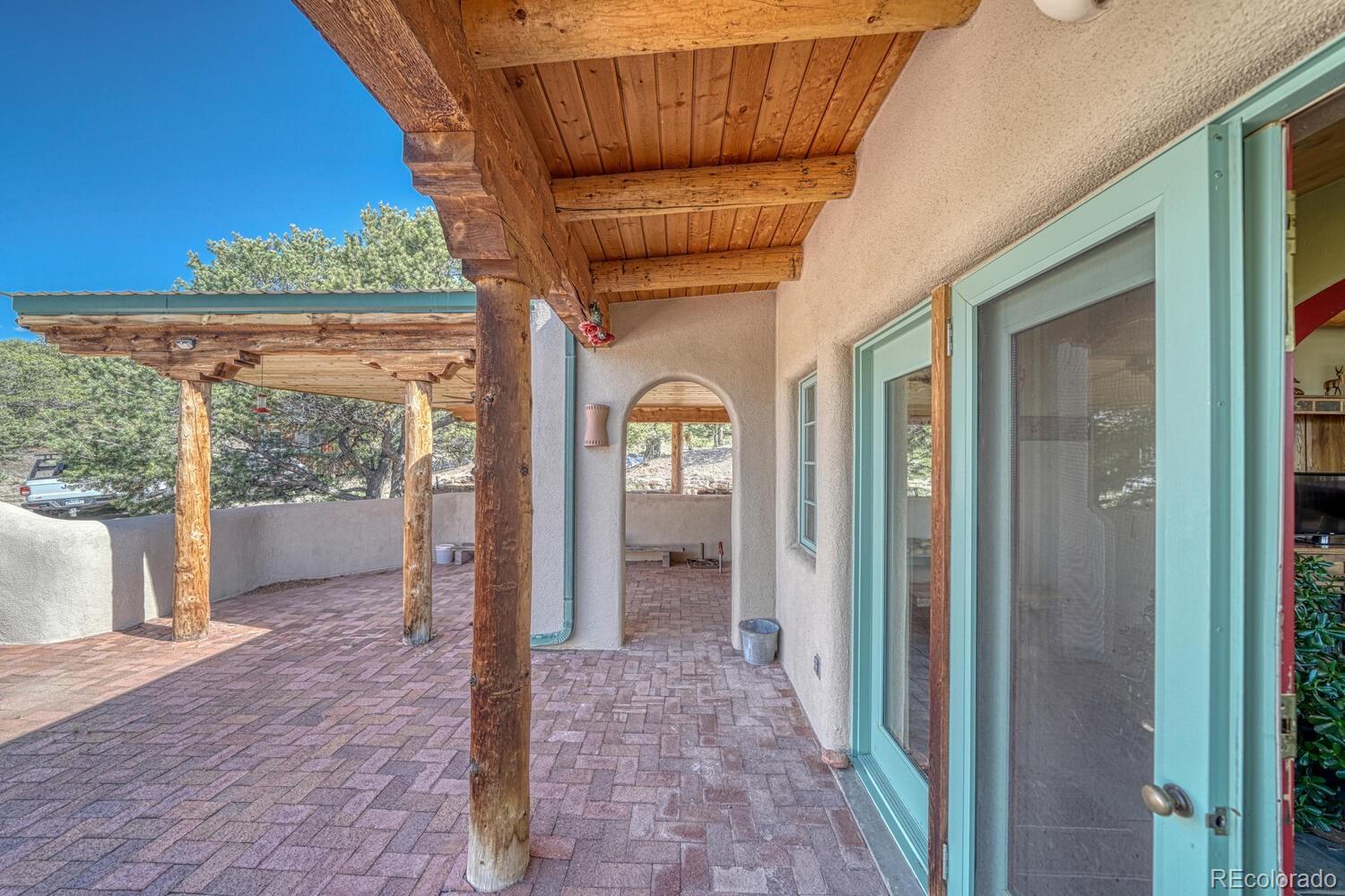Feel like you are miles away from the real world every time you go home! Charming Spanish-style property on 36 acres. Beautiful views! Open floor plan with lots of windows for passive solar and more views. Large patio extends the living space for outside gatherings or private relaxation. Beautiful, rolling landscape with plenty of trees and natural features. Property is set up for horses. This is a rare opportunity to purchase acreage so close to Salida. Very private! Separate workshop/garage with electricity allows for ample parking, storage, or a studio. Bunkhouse with electricity good for extra sleeping space. Property can be sold fully furnished (furnishings are very much in keeping with architectural style). New stucco in 2019. Close to skiing, hiking, biking, rafting, and minutes from historic Salida. Make this your Colorado retreat!