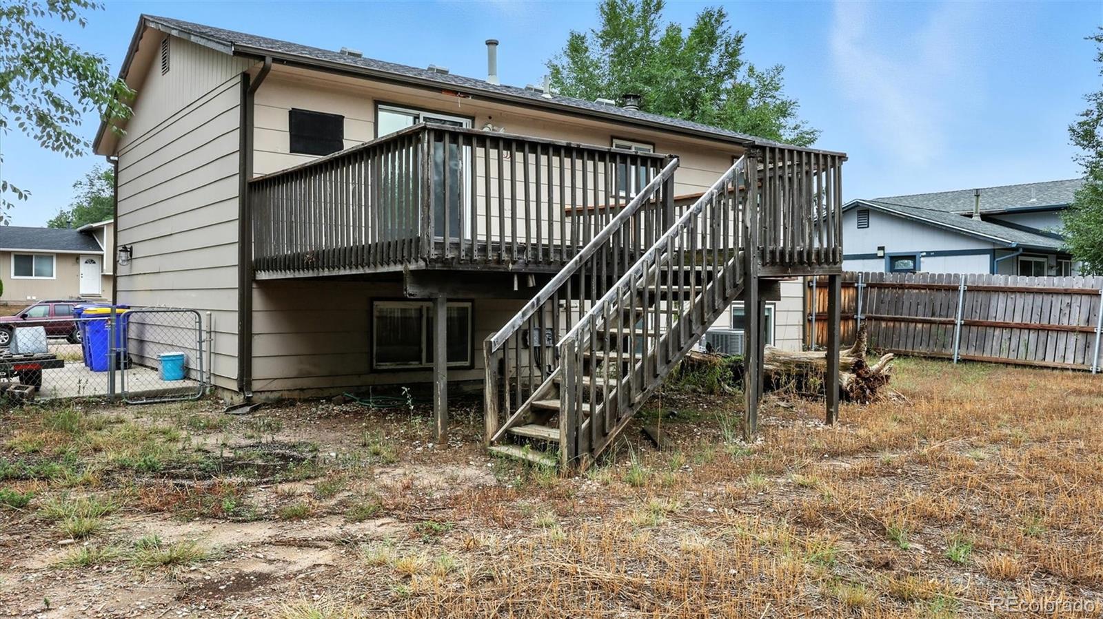 Opportunity knocks with this 4-bedroom, 2-bath bi-level home located in the established Pikes Peak Park neighborhood of Colorado Springs. This fixer-upper offers 1728 square feet of living space and great potential with no HOA. There is an expanded driveway perfect for off-street parking, RV, or small boat storage. Step into a 2-story entryway leading to the upper level featuring wood plank flooring in the Living Room and Eat-in Kitchen. The Living Room includes a lighted ceiling fan and large window with front yard views. The Kitchen offers ample cabinetry, generous counter space, subway tile backsplash, and appliances including a smooth-top range oven, vent hood, counter microwave, dishwasher, and French door refrigerator. A sliding glass door opens to a wood deck, ideal for outdoor dining and relaxation. Two spacious Bedrooms with neutral carpet and generous closets share a Full Bathroom with vanity and tiled tub/shower. The lower level is light and bright with large windows and includes a spacious Family Room with neutral carpet, chair rail, and a gas fireplace to cozy up on chilly Colorado nights. Two additional Bedrooms and a second Full Bathroom complete the lower level. The Laundry Room includes a washer and dryer. The fenced backyard is surrounded by mature trees that provide shade and privacy, a storage shed for tools and toys, and plenty of space to customize your outdoor retreat. Conveniently located near schools, parks, shopping, and offering an easy commute to Fort Carson and downtown Colorado Springs. This home is ideal for buyers who enjoy "do it yourself" projects and are ready to roll up their sleeves. With solid bones and a functional layout, it offers the perfect canvas to add your personal touch and create the Colorado home of your dreams. Whether you're looking to customize for comfort, style, or investment, this property is full of potential and waiting for your vision to bring it to life.