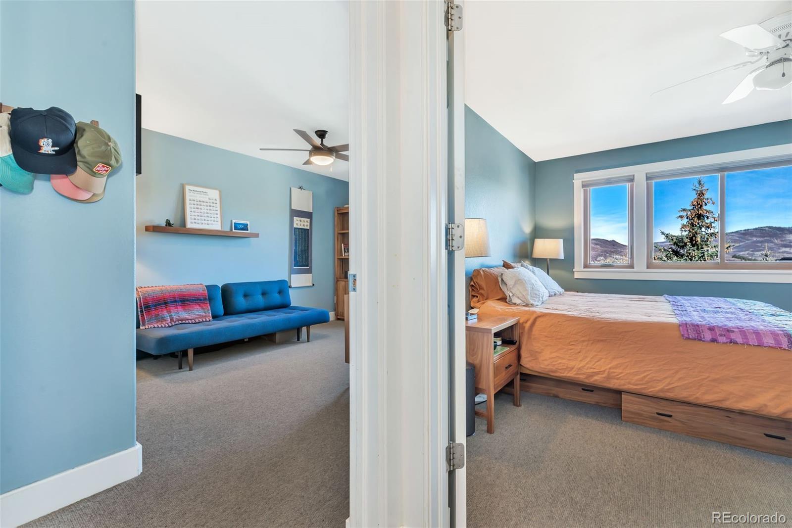 Enjoy remarkable sunsets and views of Sleeping Giant, downtown Steamboat, the Yampa river and the rodeo from the recently updated large deck. Inside is a recently upgraded 3 bedroom, 2.5 bath with all new flooring, a beautiful mountain modern kitchen with high-end appliances, quartzite, and tons of sunlight. Living room gas fireplace insert with walnut mantle and quartzite hearth, as well as a built-in bar with beverage fridge. Continue to enjoy the views from the master bedroom which has an in-suite bath and closet. An oversized 2 car heated garage for all your toys, plus a new large shed for storage. Radiant heated floor on lower level entry and laundry room. Back patio was expanded in 2021. Other recent upgrades include all new windows and patio doors (‘21), blackout shades in bedrooms and window treatments. Little Moon Trail is centrally located in Steamboat Springs. Located near downtown and 5-10 min drive to the ski resort.