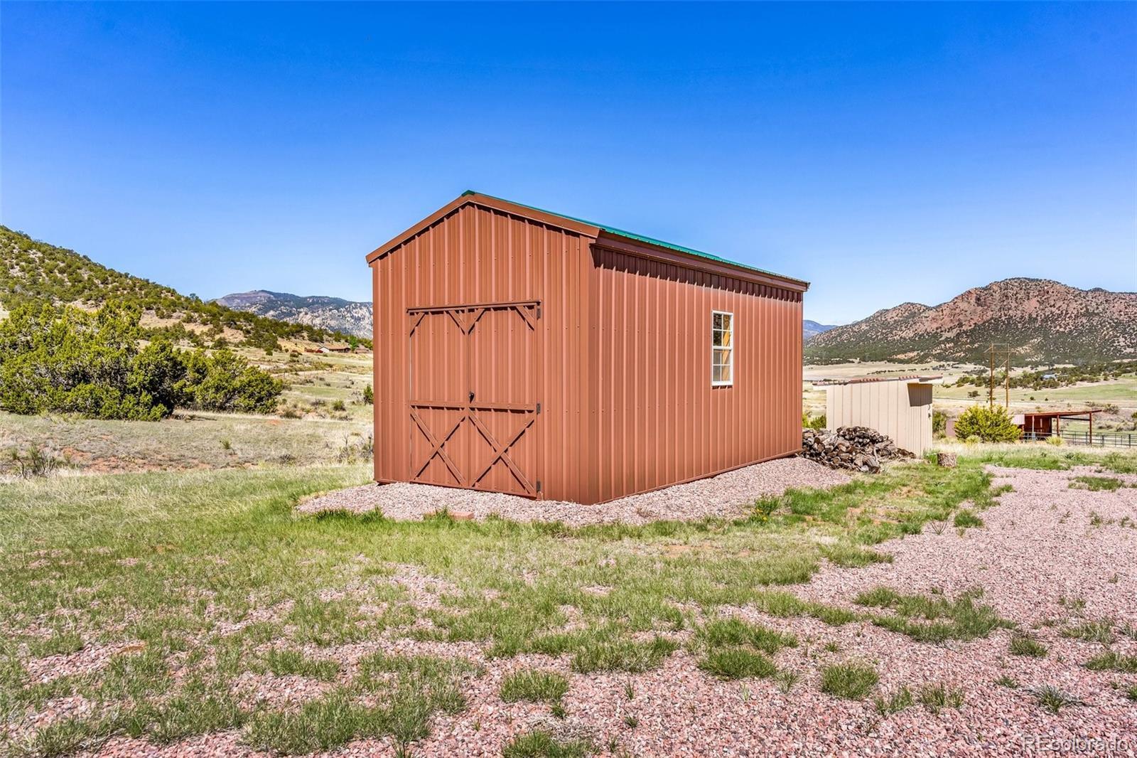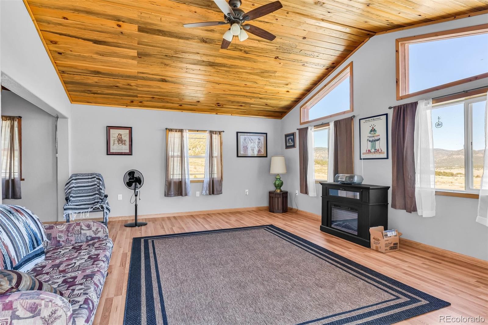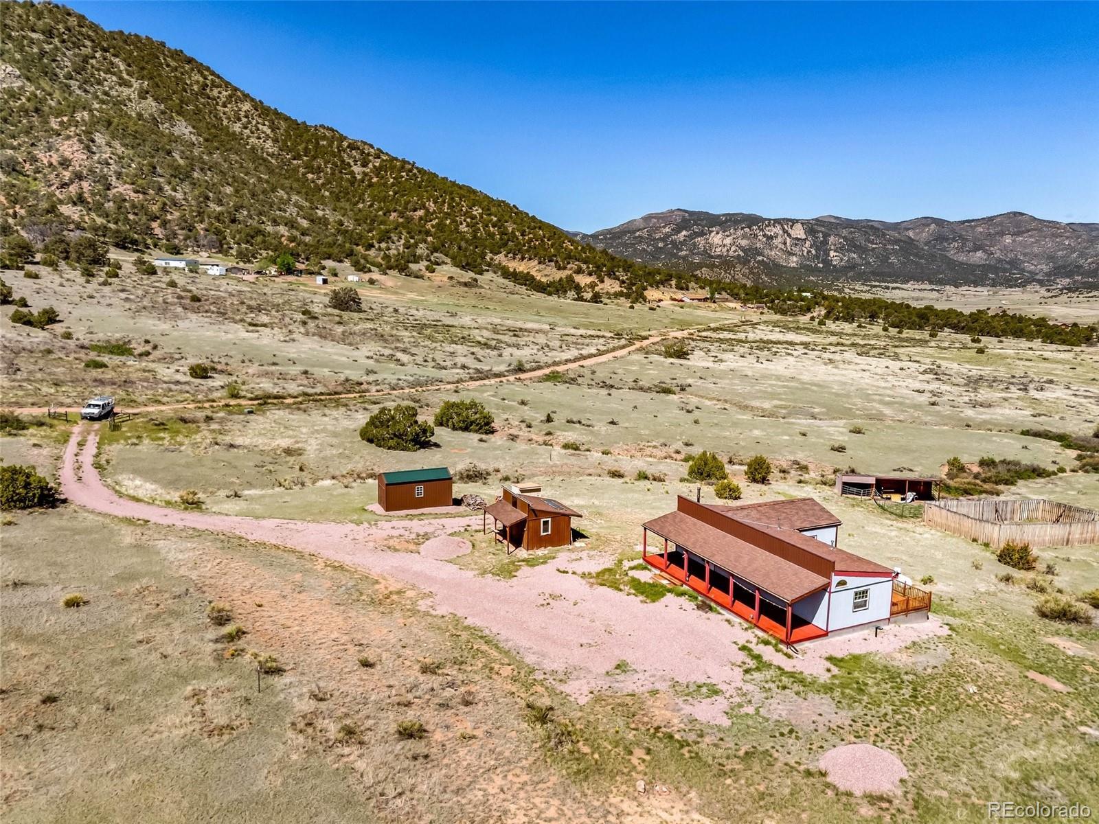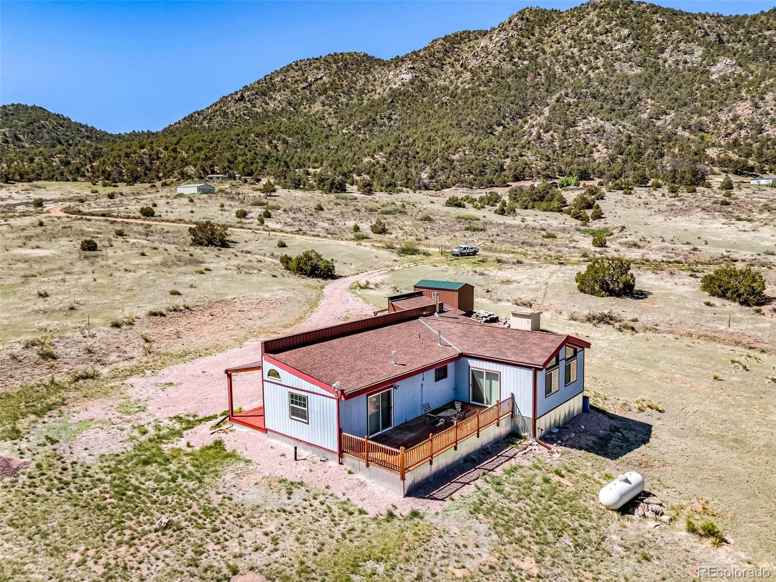 Experience your own private Colorado sanctuary just 12 miles from Canon City. Set on more than 36 pristine acres, this 1,120 SF frame 2017 built home offers sweeping panoramic views, unforgettable sunsets, and abundant wildlife best enjoyed from the inviting front porch or expansive deck. The heart of the home is the beautifully updated kitchen featuring elegant Hampton Bay cabinetry, stainless steel appliances, a garbage disposal, an on demand hot water heater, and updated flooring. An impressive living room addition showcases vaulted ceilings finished in tongue and groove Blue Beetle Kill Pine, filling the space with warmth and character. Large windows and a sliding glass door flood the room with natural light and provide access to the 300 plus SF deck, perfect for entertaining or quiet evenings outdoors. The spacious 22x16 bedroom offers direct deck access and a generous 4x12 walk in closet. Down the hallway, charming stained glass windows lead to a beautifully renovated bathroom designed as a spa like retreat with custom mosaic tilework, a fossil embedded floor, and new cabinetry. A convenient stackable washer and dryer complete the space. Cozy up on cooler evenings with a propane fireplace or wood stove. Outside, the property features a 12x16 insulated building ideal for a workshop, guest space, or storage, plus a newer 15x20 metal shed with built in workbenches and shelving, and a 3 stall barn lean to for animals or equipment. The land is partially fenced on three sides with two gated entrances. Records show a strong 10 GPM domestic well Permit No. 198713 supplies the home and land. Enjoy peace of mind with the Tallahassee Fire Station nearby and easy access to Gold Medal fishing, kayaking, hiking, skiing, rafting, and rock climbing. This is more than a home, it’s a lifestyle. Don’t miss your opportunity to own this remarkable slice of Colorado paradise.