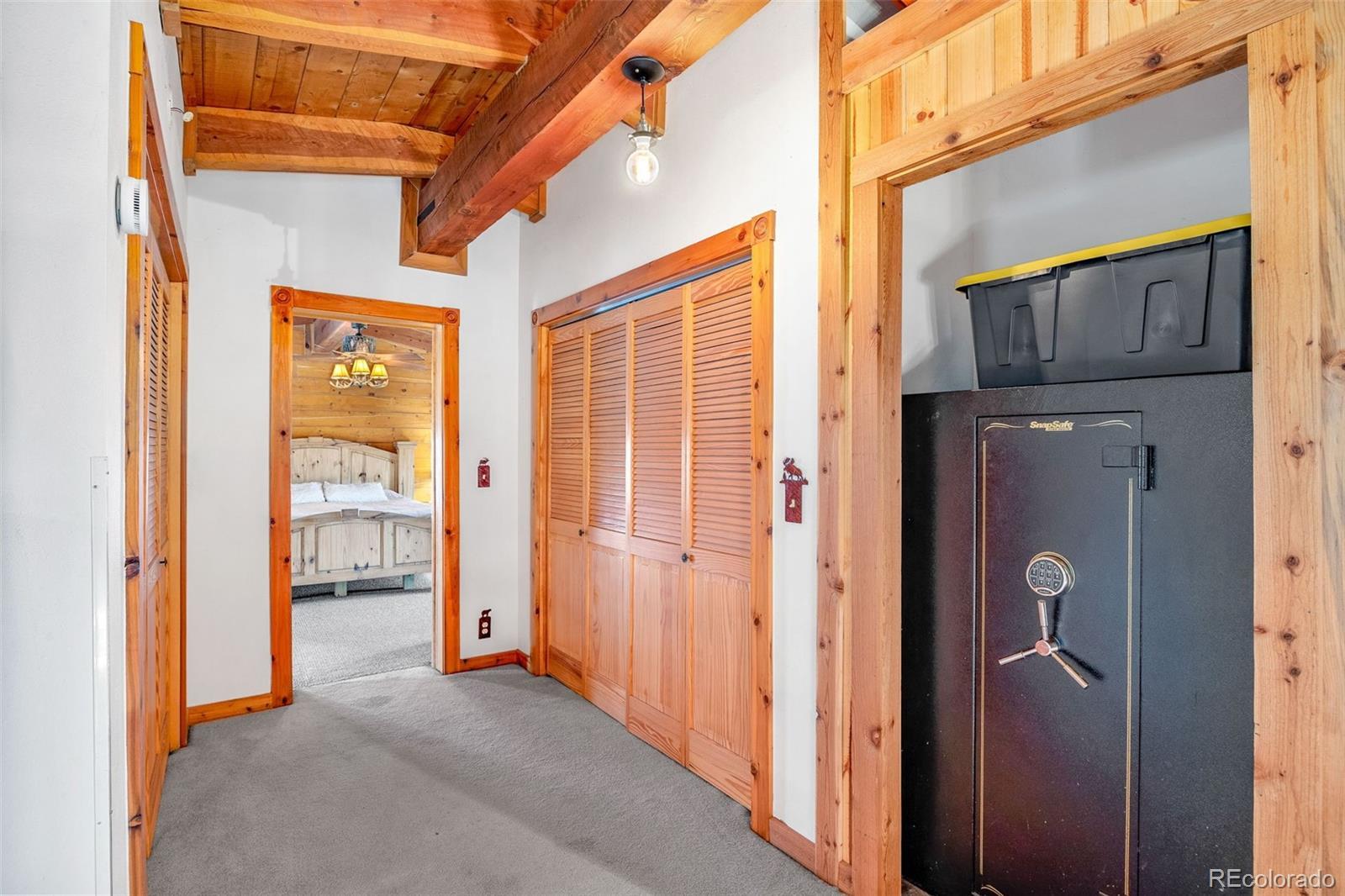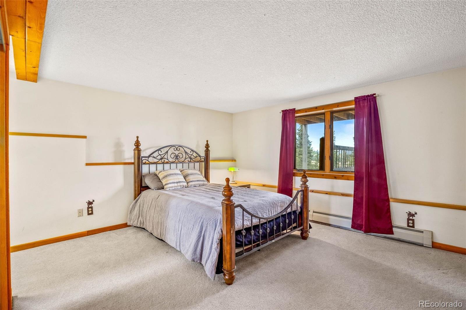 This spacious log home on 2.5 acres in the sought-after, gated community of Warm Springs offers a rare blend of comfort, craftsmanship, and amenities for everyone. The main level features a massive great room with a dining area and a well-appointed kitchen offering abundant counter space and storage. Log walls, tongue-and-groove ceilings, exposed beams, and a pellet stove create a warm cabin ambiance, while large windows and doors open to a 1,400 sq ft wraparound deck with sweeping mountain views. A generous bedroom and spacious 3/4 bathroom on the main floor could easily be converted into a primary suite. Upstairs, a roomy loft living area leads to the true primary suite, a spacious retreat with his-and-hers closets and a luxury 5-piece bath with custom fixtures. The fully finished basement functions perfectly as a private guest suite, multigenerational living space, or short-term rental lock-off, complete with two large bedrooms, a full bath, a great room, space for a kitchen, and a separate entrance to a backyard patio. The oversized detached garage is a versatile workspace, offering a finished office upstairs, a workshop with 500-amp service powerful enough for welding, and a hydroponic gardening setup. It can easily be converted back for RV storage. Outside, the circular paved driveway, dog kennel with heated dog house, and kids’ playground with a rock climbing wall make the property as functional as it is fun. Notable updates include a new septic system, fresh exterior paint, and new shop skylights. Warm Springs residents enjoy a central water system, privately maintained roads, a community dumpster, stocked fishing ponds, pickleball courts, and multiple access points to National Forest land. Located just minutes from the historic town of Fairplay, with Breckenridge’s world-class skiing only 35 minutes away and Buena Vista’s hot springs, rafting, and 14er hiking just 40 minutes in the other direction, this home is perfectly positioned for year-round adventure.