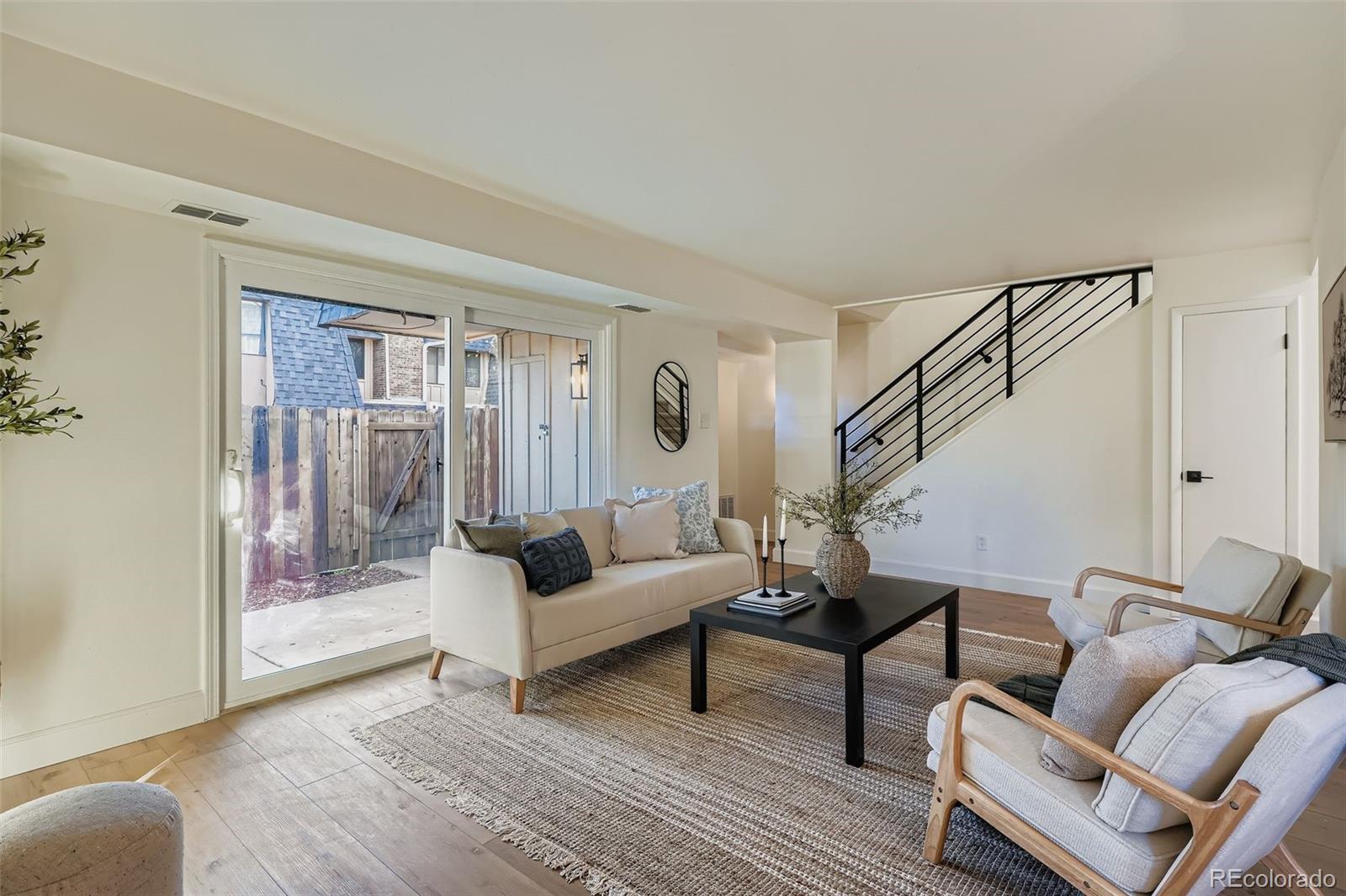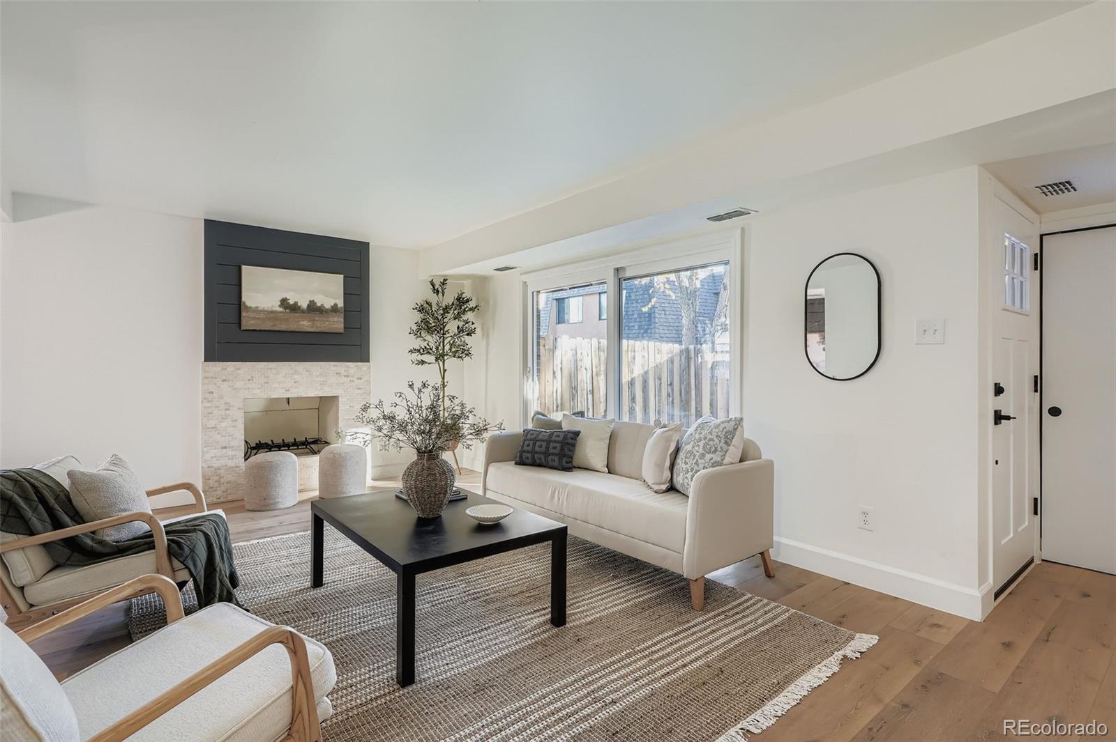 Professionally updated end-unit townhome in the desirable Hiland Hills community. Warm and inviting, this 2-bed, 2-bath residence features brand-new flooring, fresh paint, and an open main level highlighted by a cozy wood-burning fireplace. The remodeled kitchen impresses with quartz countertops, stainless steel appliances, and a custom tile backsplash—perfect for cooking and entertaining. An updated half bath on the main floor adds everyday convenience. Upstairs, two generous bedrooms offer comfort and flexibility, along with a remodeled full bath featuring modern finishes. Double-pane windows, forced-air heating, and central air ensure year-round comfort. Enjoy a private patio ideal for relaxing or hosting friends, plus a reserved covered parking space. As part of the Hiland Hills HOA, residents enjoy low-maintenance living with amenities including a clubhouse, fitness center, pool, and beautifully maintained grounds. Located just steps from the Highline Canal and Cherry Creek trails, and close to shopping, dining, and transit, this move-in-ready townhome combines updates, charm, and convenience in one exceptional value. Buyers won’t be disappointed!