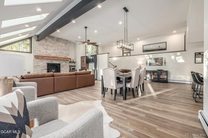 A rare and remarkable offering in Winter Park, this fully reimagined mountain estate blends refined design with the serenity of a private one-acre sanctuary. Perfectly positioned in Winter Park Ranch, the home feels worlds away—an oasis tucked among towering pines—yet remains just minutes from the energy of Fraser, premier trails, shuttle access, boutique shops, restaurants, and local breweries. Extensively remodeled from top to bottom, every detail of this residence reflects craftsmanship, intention, and elevated mountain living. Distinguished Features Include: • Expansive three-car garage with ample room for vehicles and adventure equipment Private hot tub retreat enveloped in forest views. Three sophisticated ensuite bedrooms, each offering spa-inspired baths. Custom Dream Gear Room featuring handcrafted Alder built-ins, individual storage lockers, and organized cubbies - a beautifully designed space for skis, bikes, and mountain essentials. Designer Kitchens & Baths newly renovated with elevated finishes, sophisticated style, and modern functionality. Low-Maintenance Stone & Stucco Exterior offering timeless mountain architecture with lasting durability. Expansive Flat, Treed Lot with abundant parking - ideal for guests, gatherings, and recreational vehicles. Exceptional Storage Throughout ensuring effortless organization without sacrificing elegance. Thoughtfully Designed Bunk Room creating a memorable and stylish retreat for younger guests or visiting friends. Generous Living & Entertaining Spaces designed for hosting with comfort and refinement. Oversized Windows & Walls of Glass flooding the home with natural light while framing serene woodland views. Walls of windows invite the outdoors in, creating a seamless connection to the surrounding forest. The result is a residence that feels both grand in scale and intimately welcoming, luxurious yet warm, refined yet relaxed.