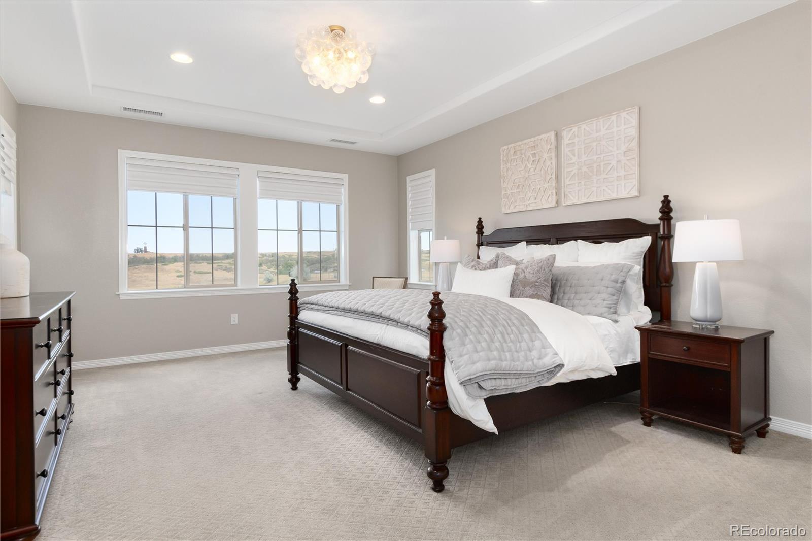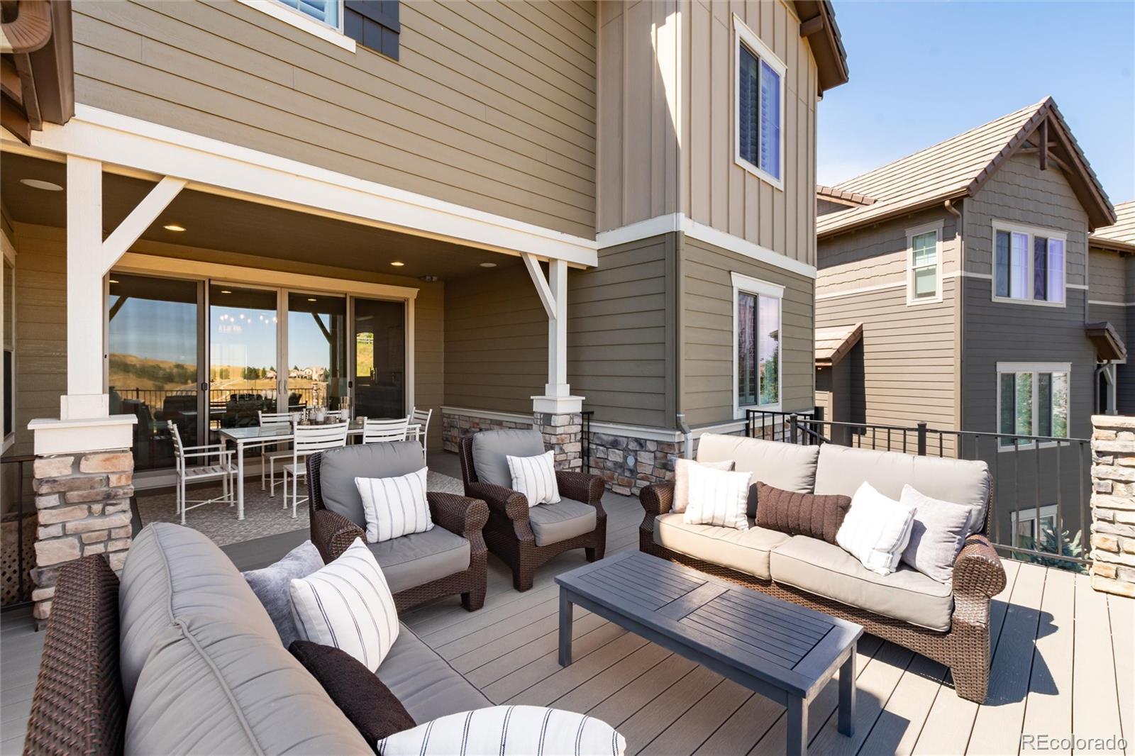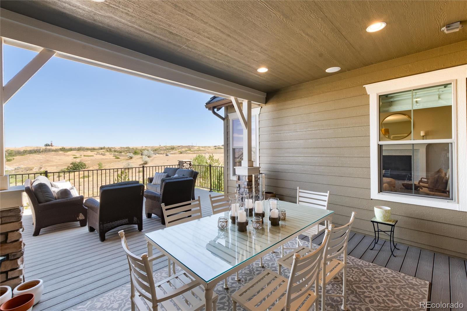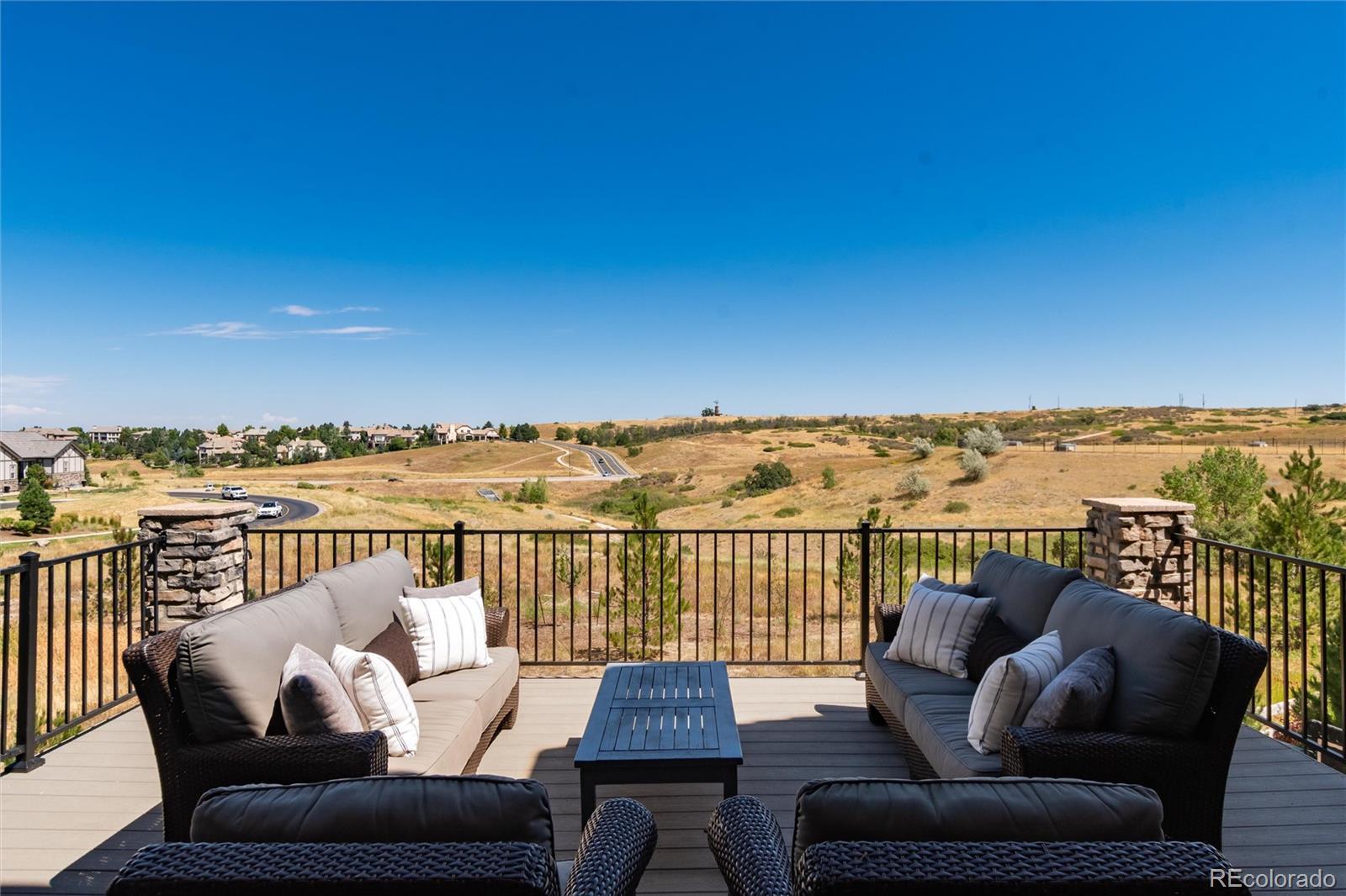 Welcome home to this stunning Somerset model in the highly desirable Backcountry neighborhood. This 6-bedroom, 6-bathroom home is perfectly situated on a premium lot fronting and backing to open space with unobstructed views of the iconic Highlands Ranch windmill. From the moment you arrive, you’ll appreciate the serene surroundings and inviting curb appeal.Inside, the main level impresses with interior designer finishes, upgraded lighting, and custom window coverings throughout, creating a refined yet welcoming and cozy atmosphere. The gourmet kitchen flows seamlessly into the dining and living areas, enhanced by natural light and stylish details that elevate everyday living and entertaining.From the dining area, double sliding glass doors open to an upgraded extended patio overlooking open space and the Highlands Ranch windmill. Start your mornings with coffee as the sun rises over the landscape, and spend your summer evenings enjoying your tranquil surroundings. Upstairs, you’ll find generously sized bedrooms, each with its own access to a bathroom, while the luxurious primary suite offers beautiful finishes and a stunning en-suite bathroom with a soaking tub, custom upgraded cabinetry, spacious shower and an oversized walk-in closet. The finished basement provides additional living space with a large recreation room, bedroom, and full bath—perfect for guests, hobbies, or movie nights. With designer-inspired details, indoor-outdoor living, and unmatched views, this home offers the perfect blend of elegance, comfort, and Colorado lifestyle.